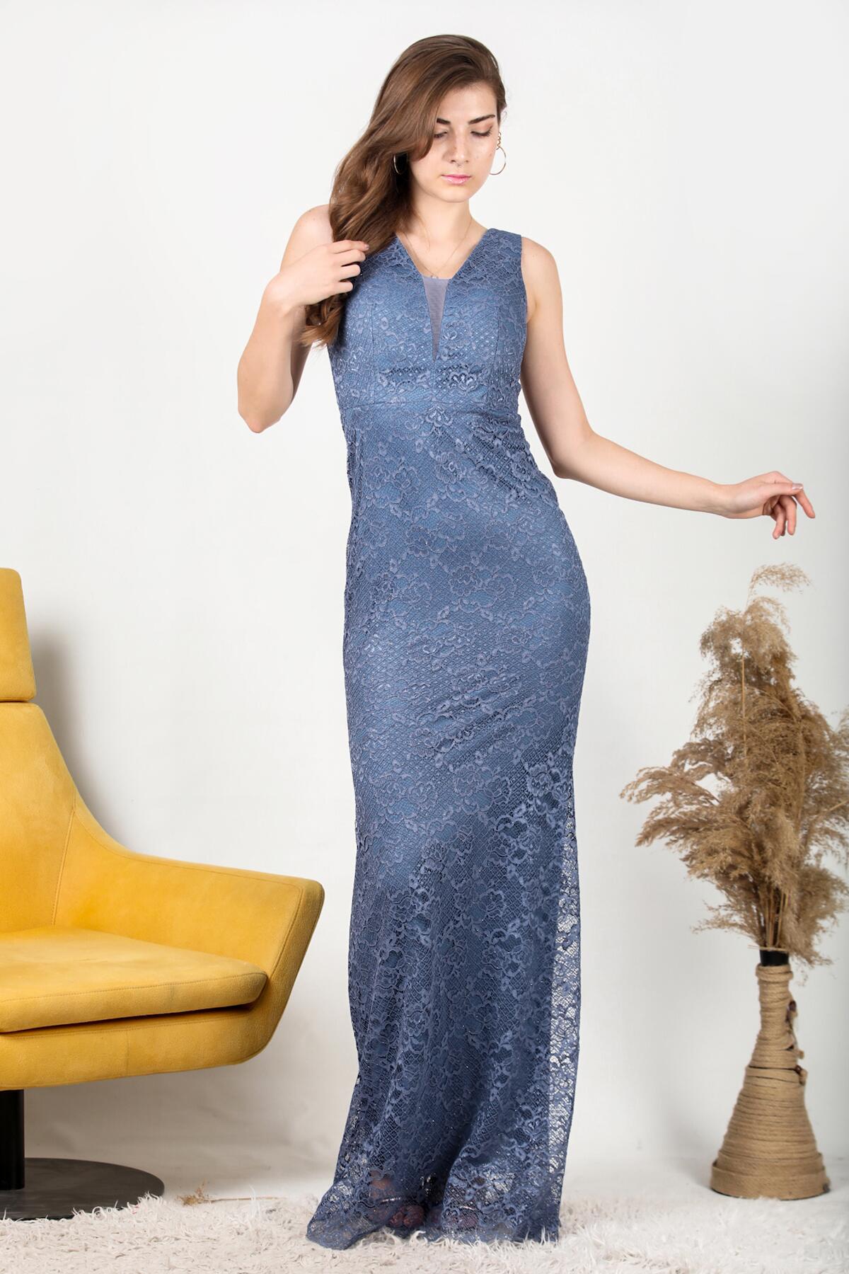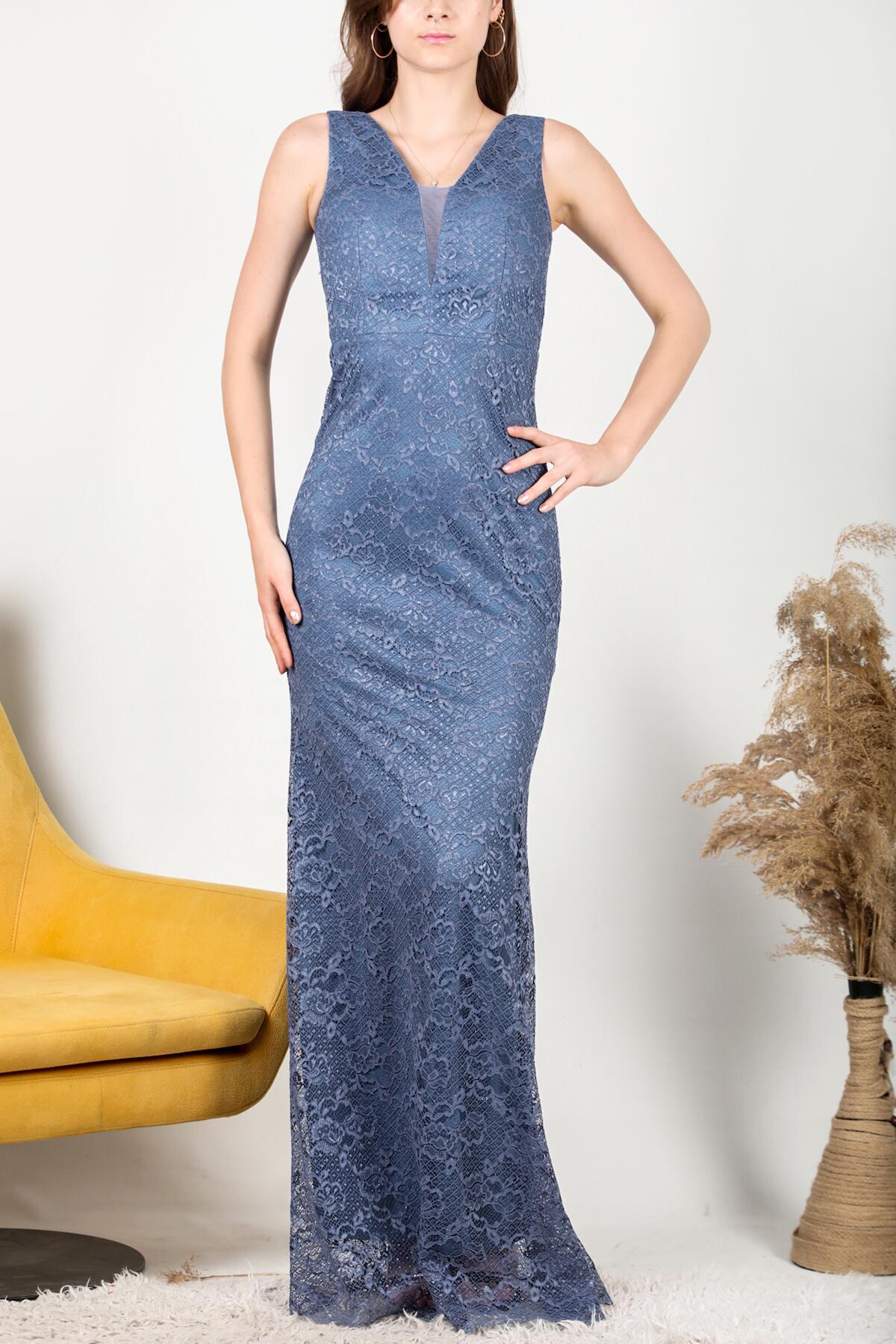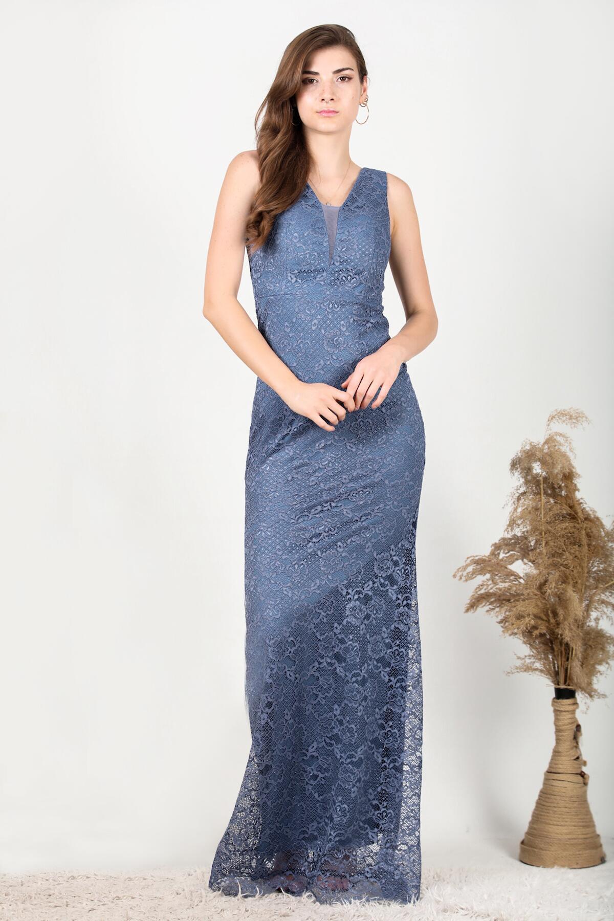 Kadın Dantel Detaylı Balık Abiye İndigo