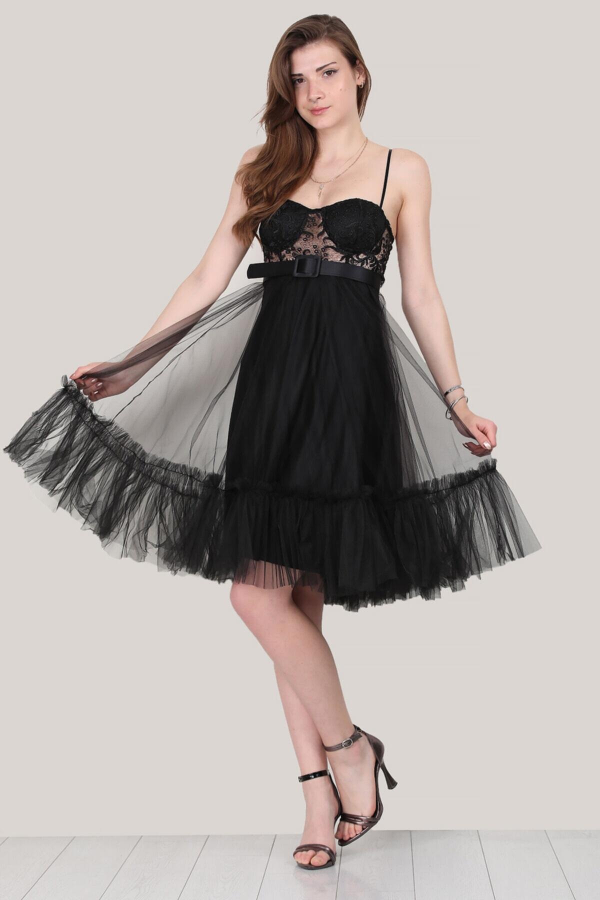 Kadın Kısa Kemerli Abiye Elbise Siyah