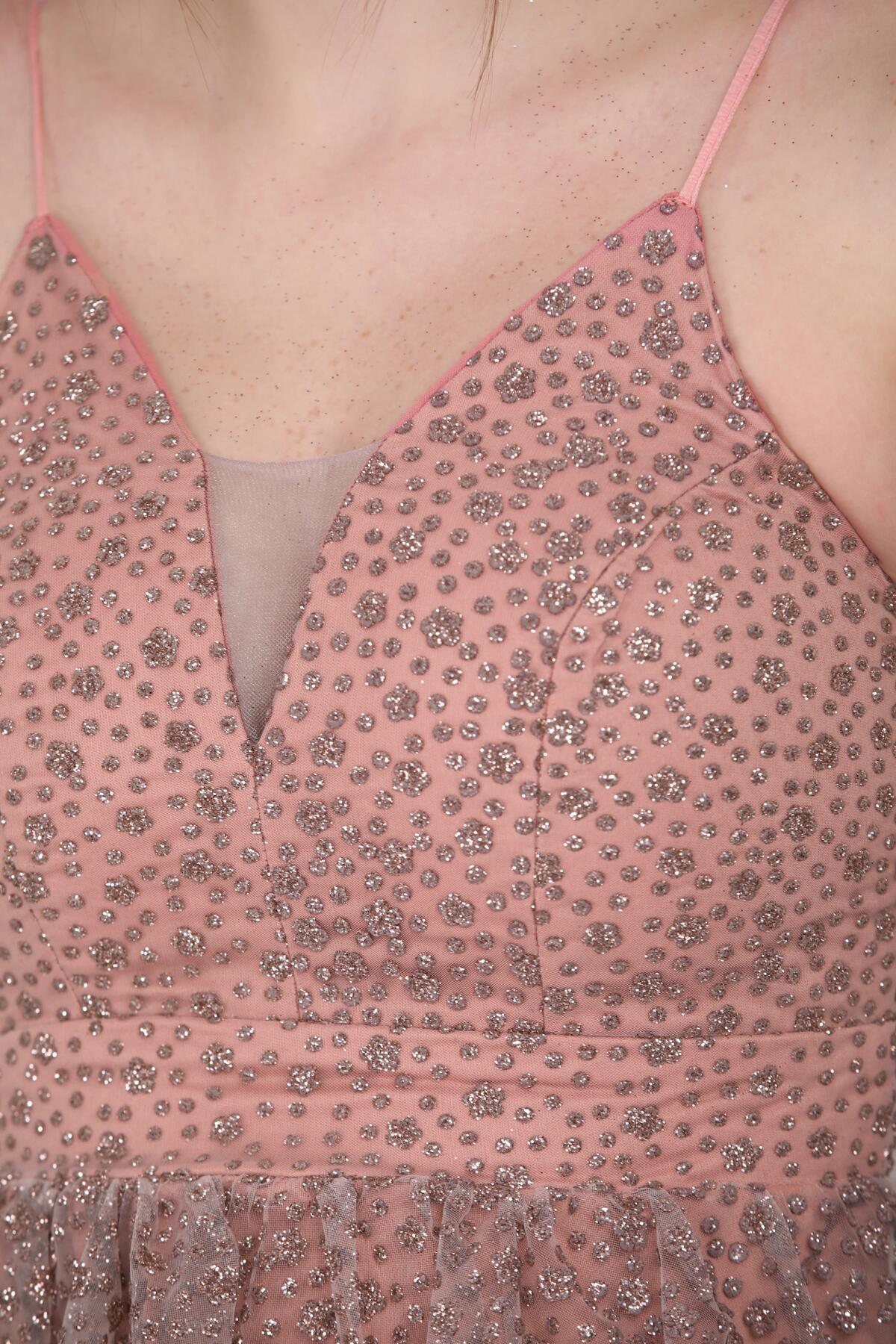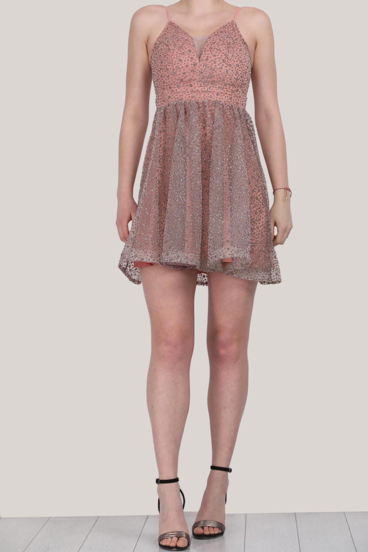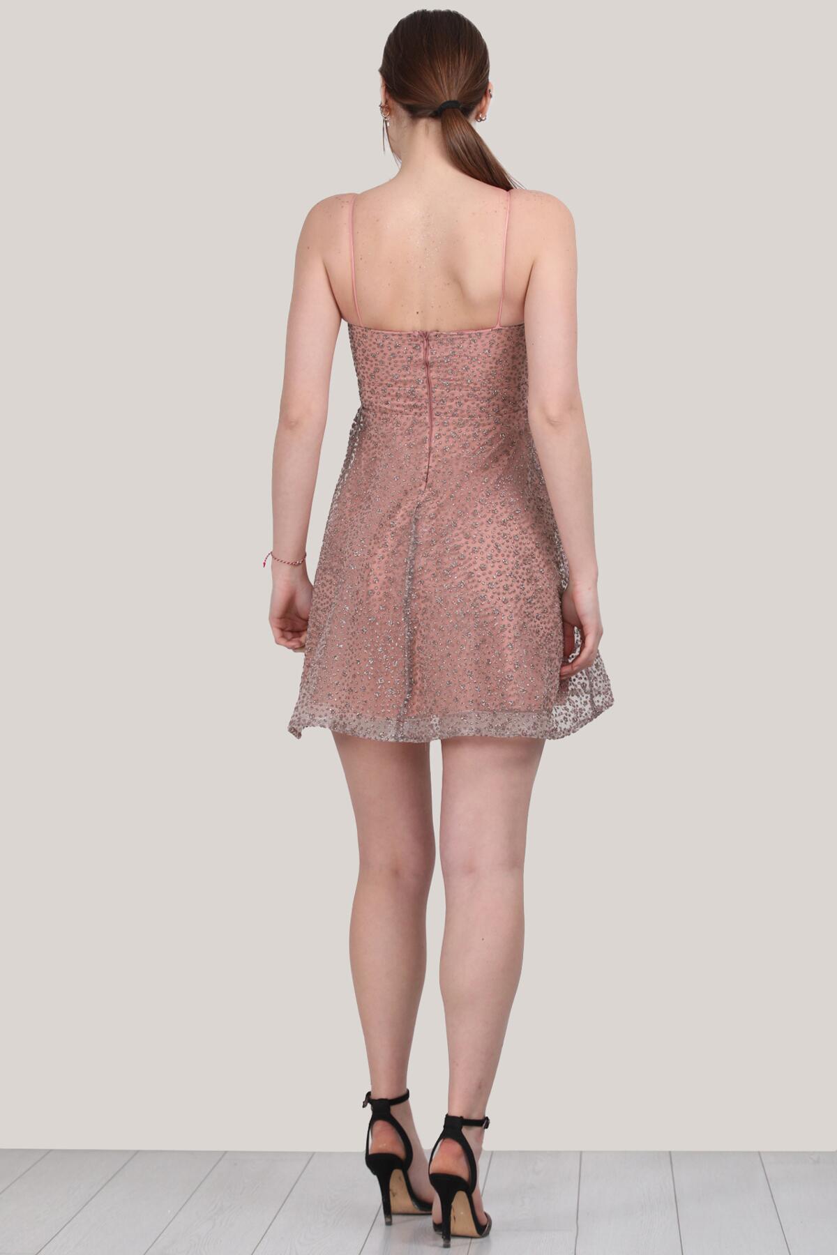 Kadın Kısa Simli Abiye Elbise Gül Kurusu