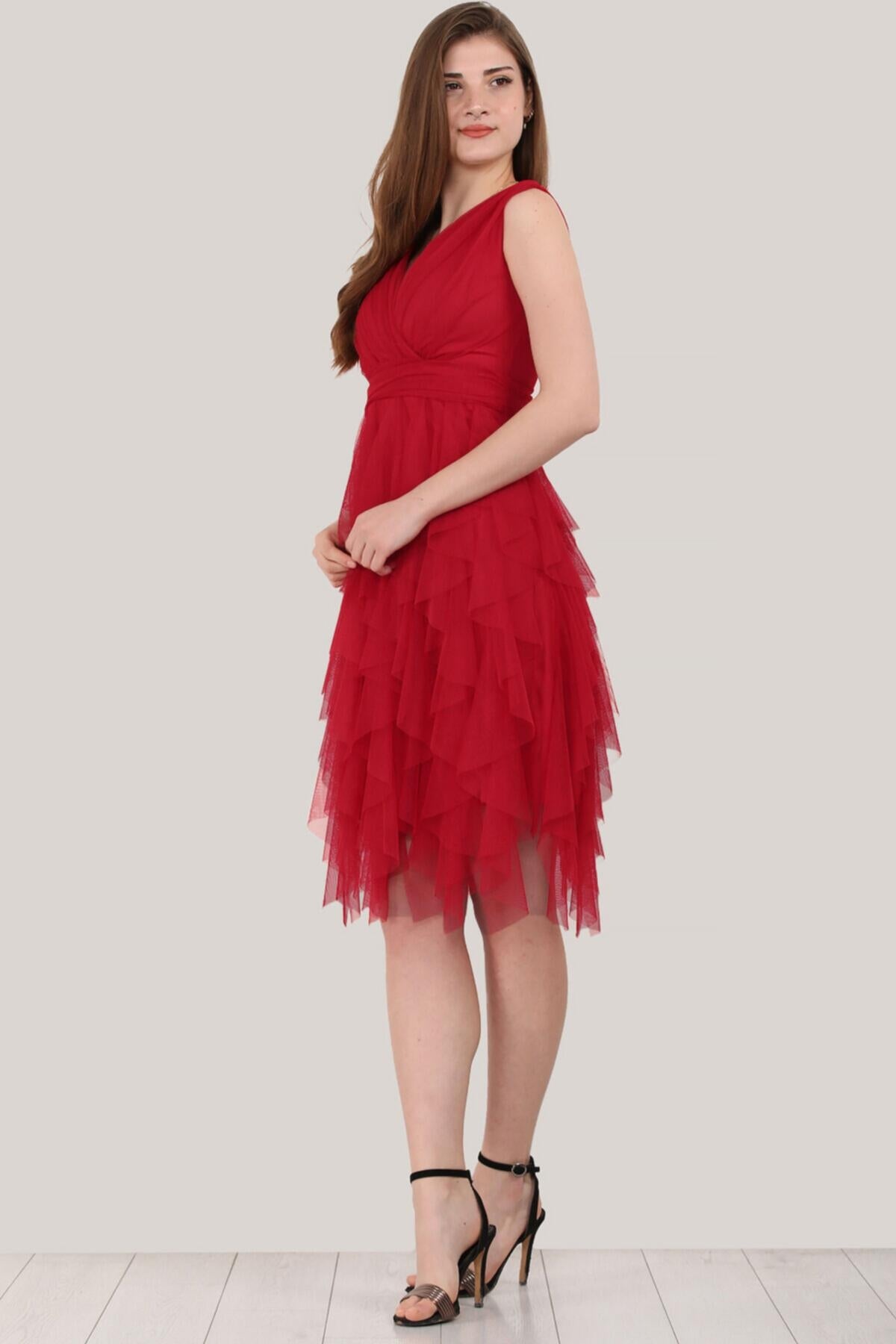 Kadın Kısa Tül Abiye Elbise Kırmızı