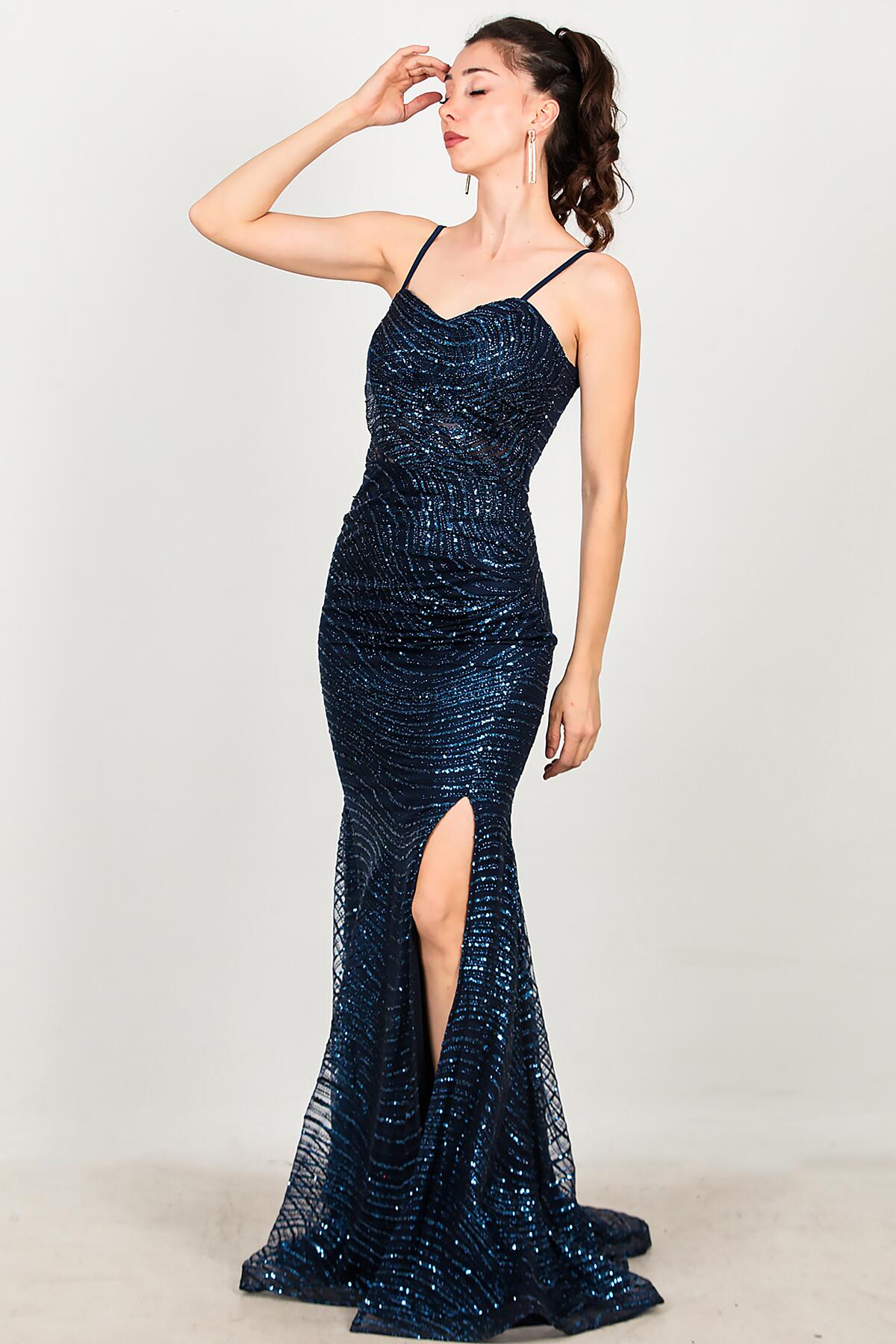 Kadın Bel Dantel Detay Uzun Saten Abiye