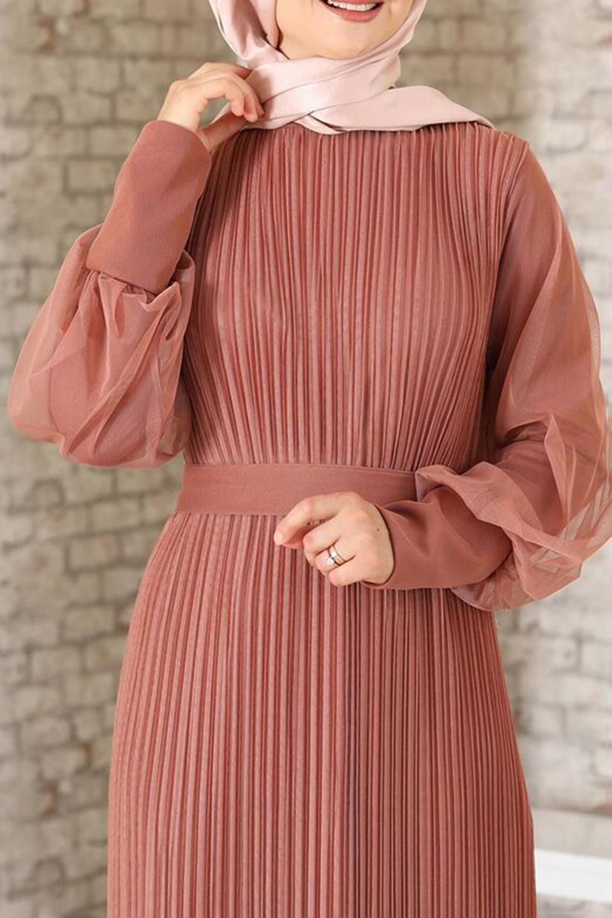 Kadın Pilise Detaylı Tül Abiye Kiremit