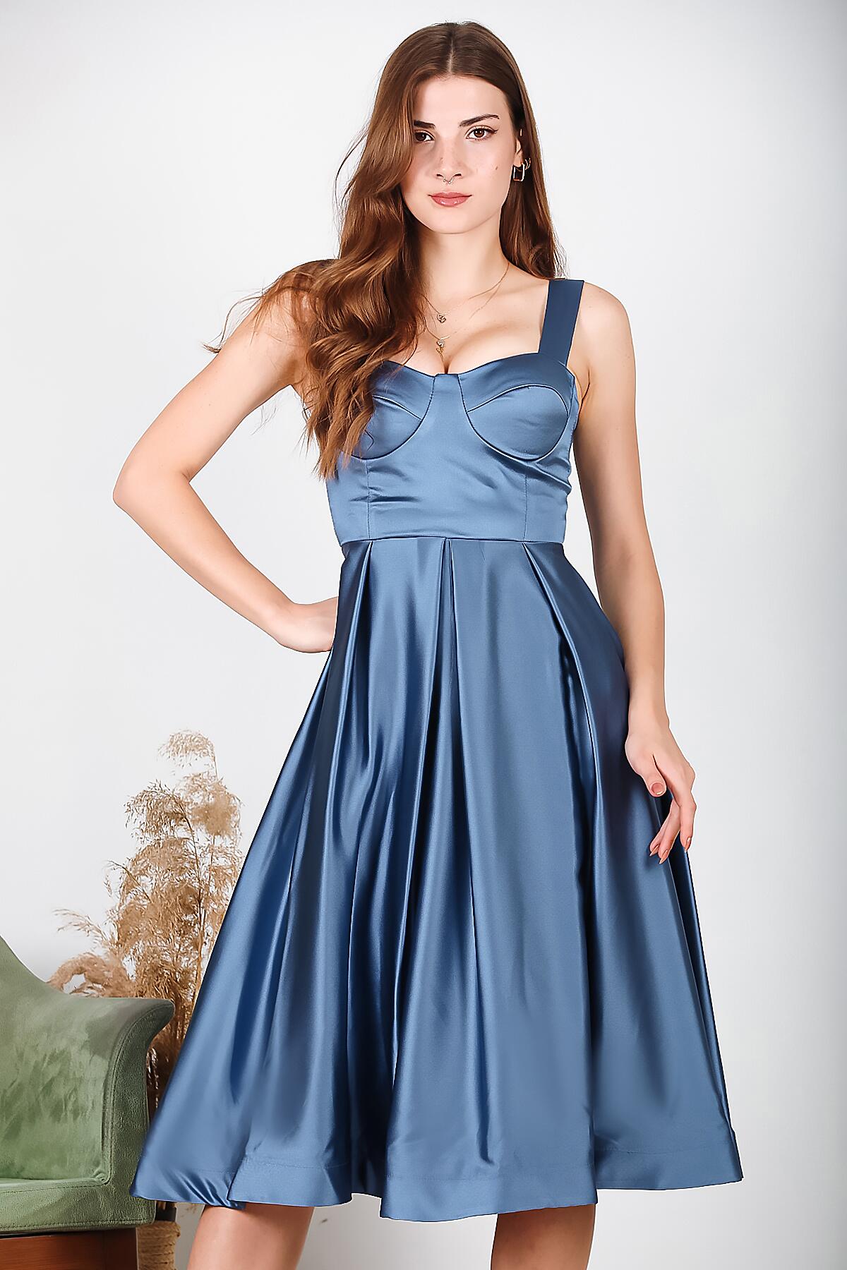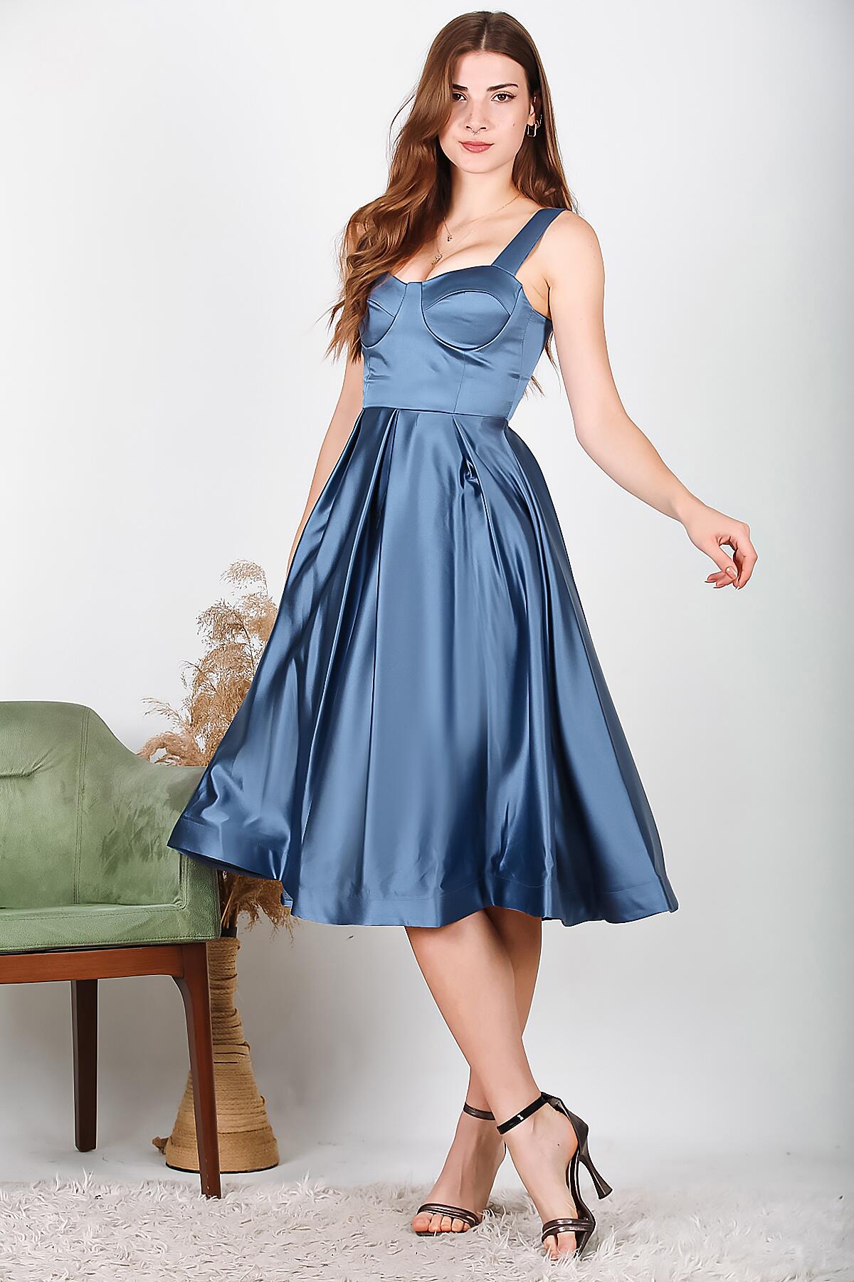 Abiye & Elbise Özellikleri:Kadın, Midi Abiye, Saten Abiye,