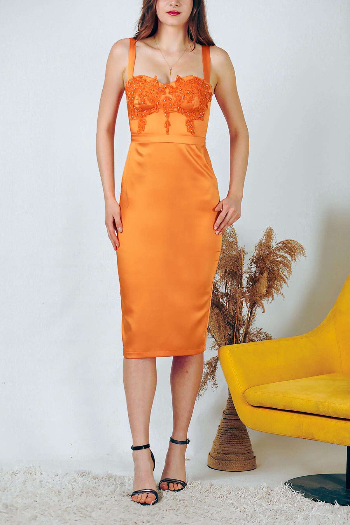 Abiye & Elbise Özellikleri:Kadın, Midi Abiye, Saten Abiye,