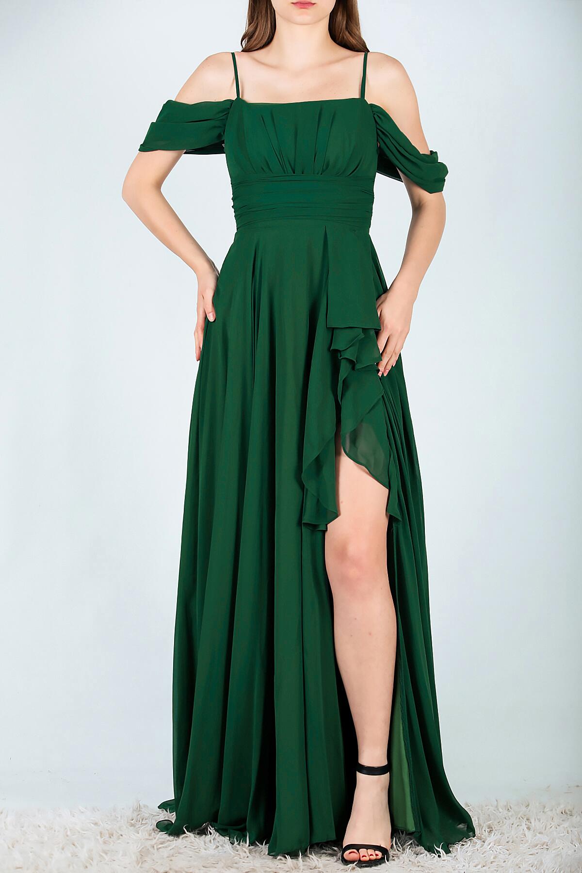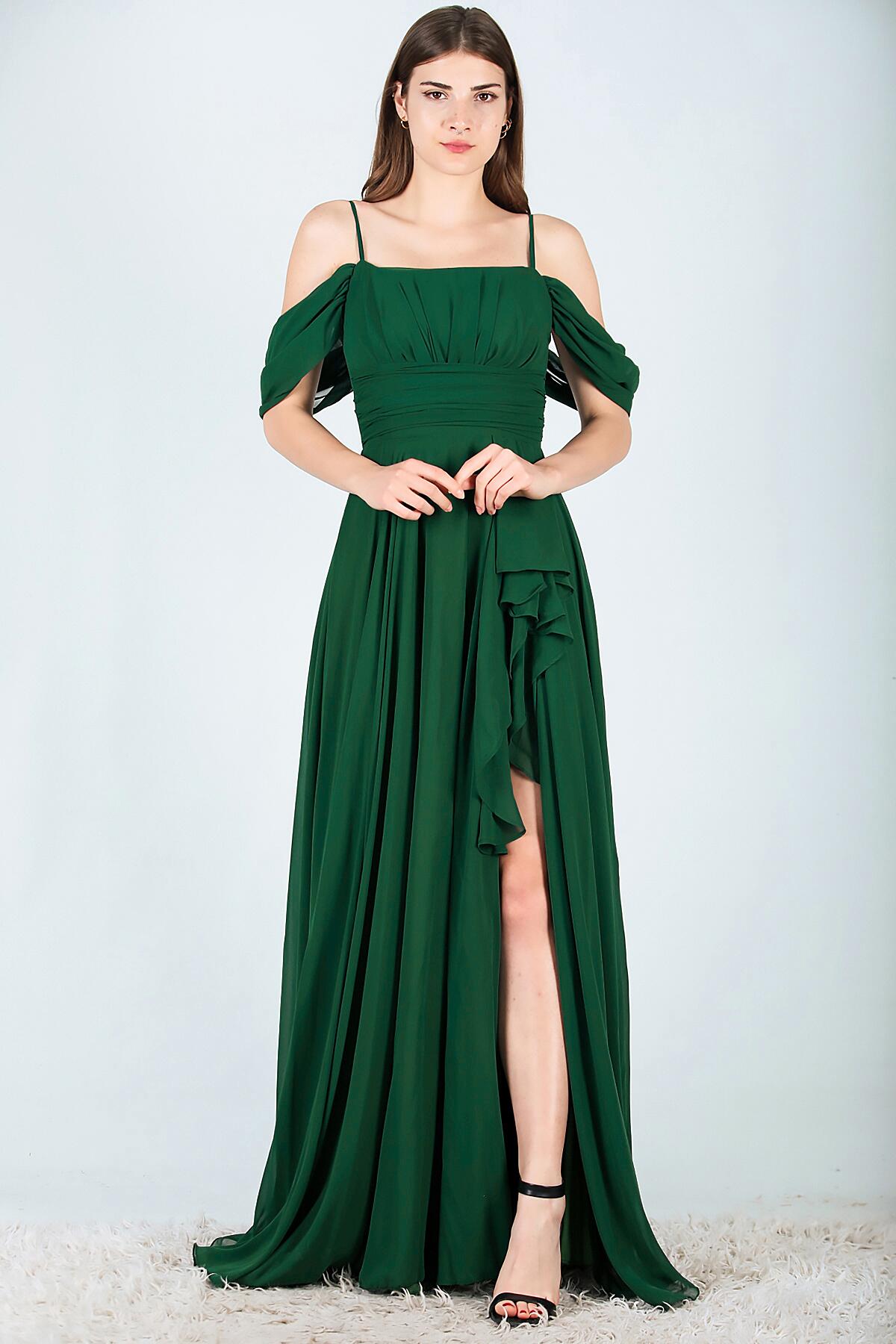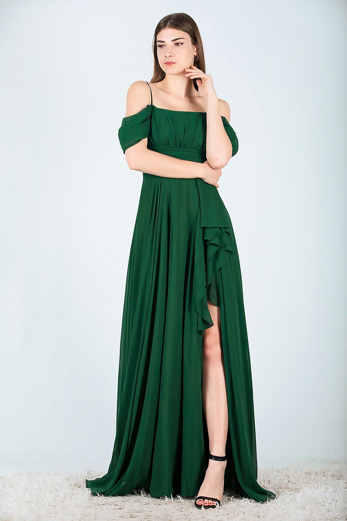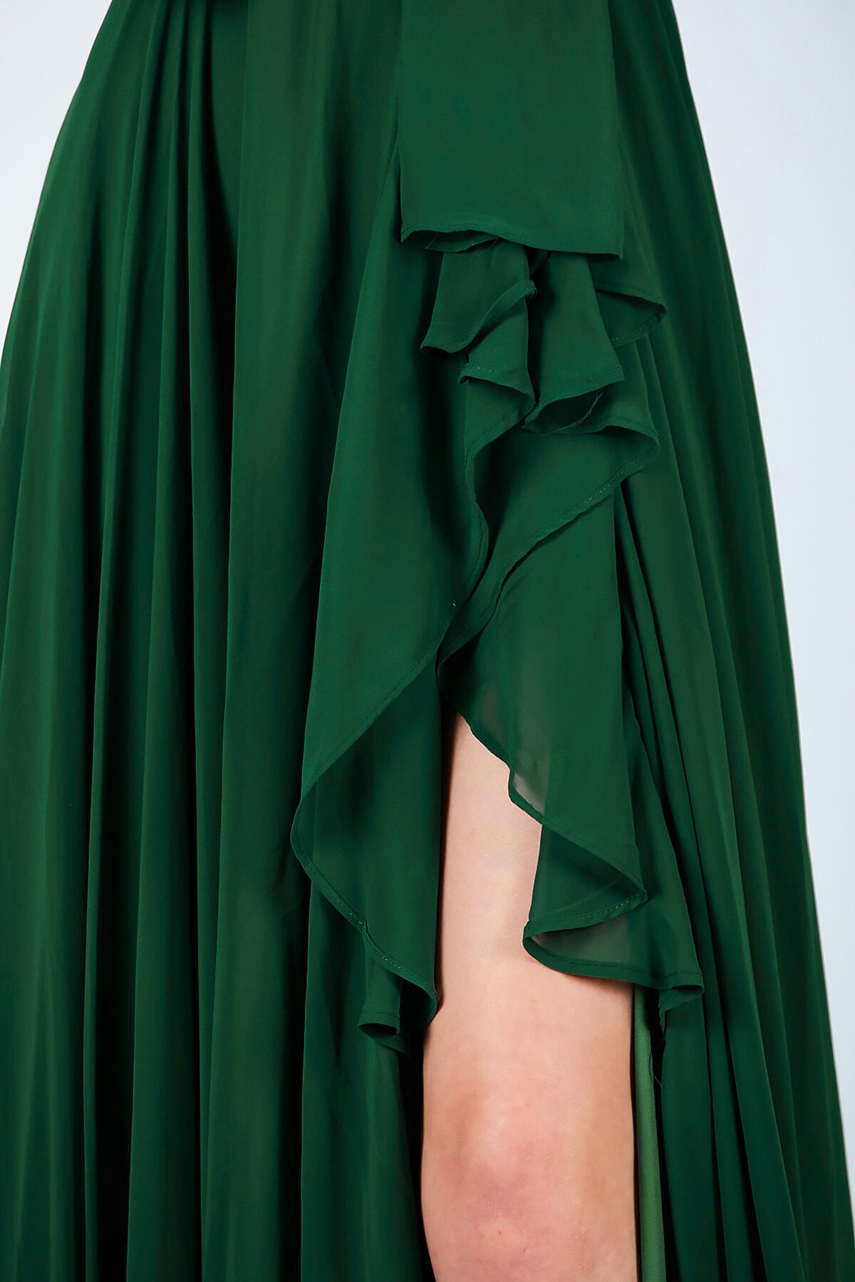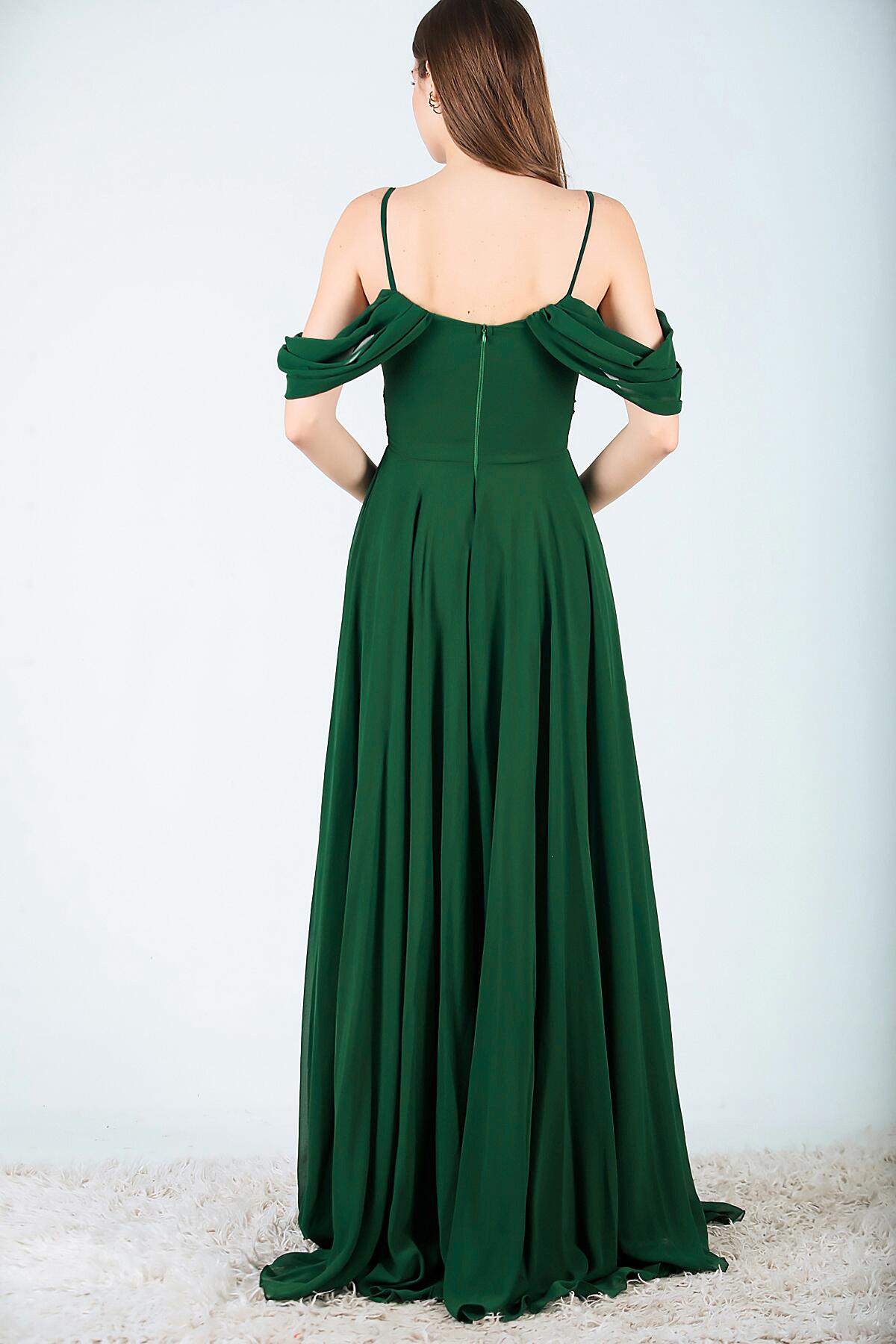 Kadın Şifon Uzun Abiye Elbise Zümrüt