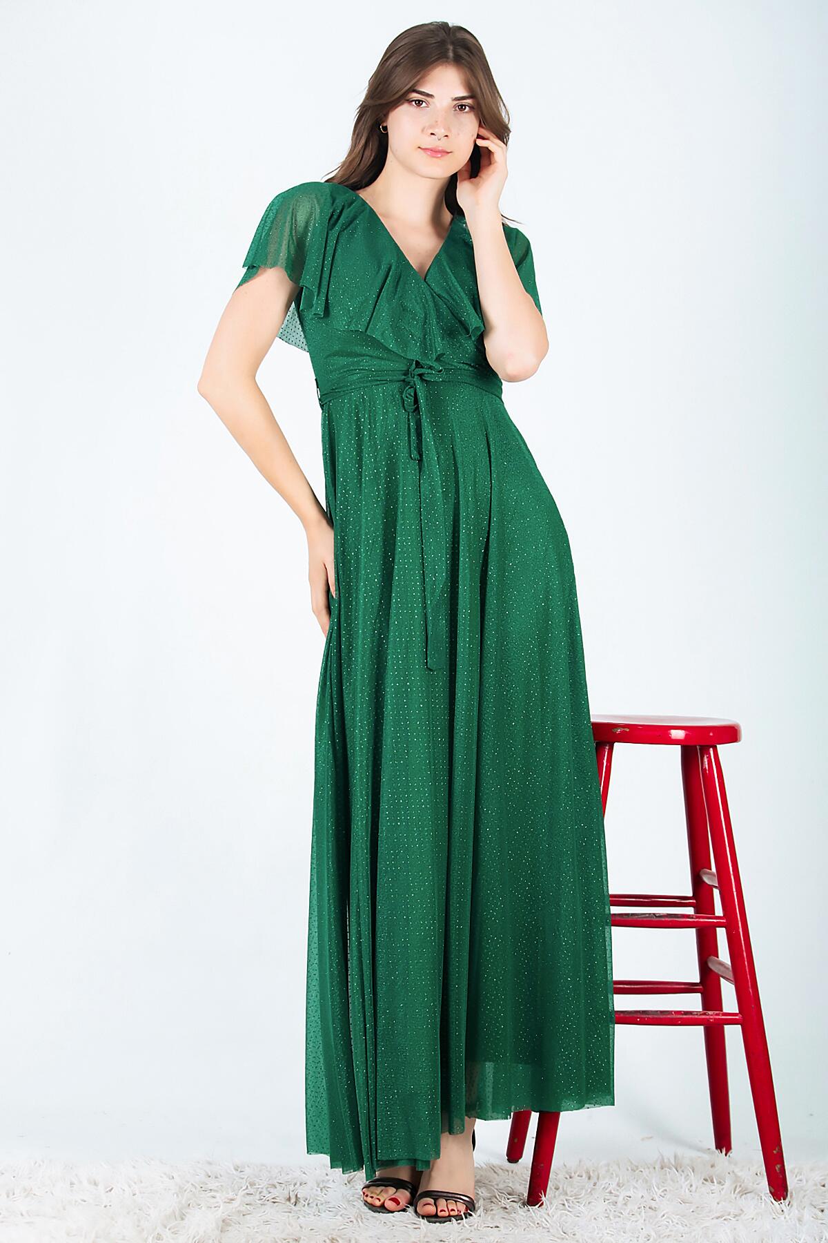 Kadın Simli Uzun Abiye Zümrüt