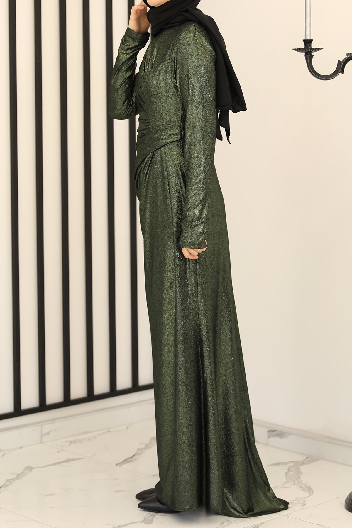 Kadın Simli Uzun Abiye Zümrüt
