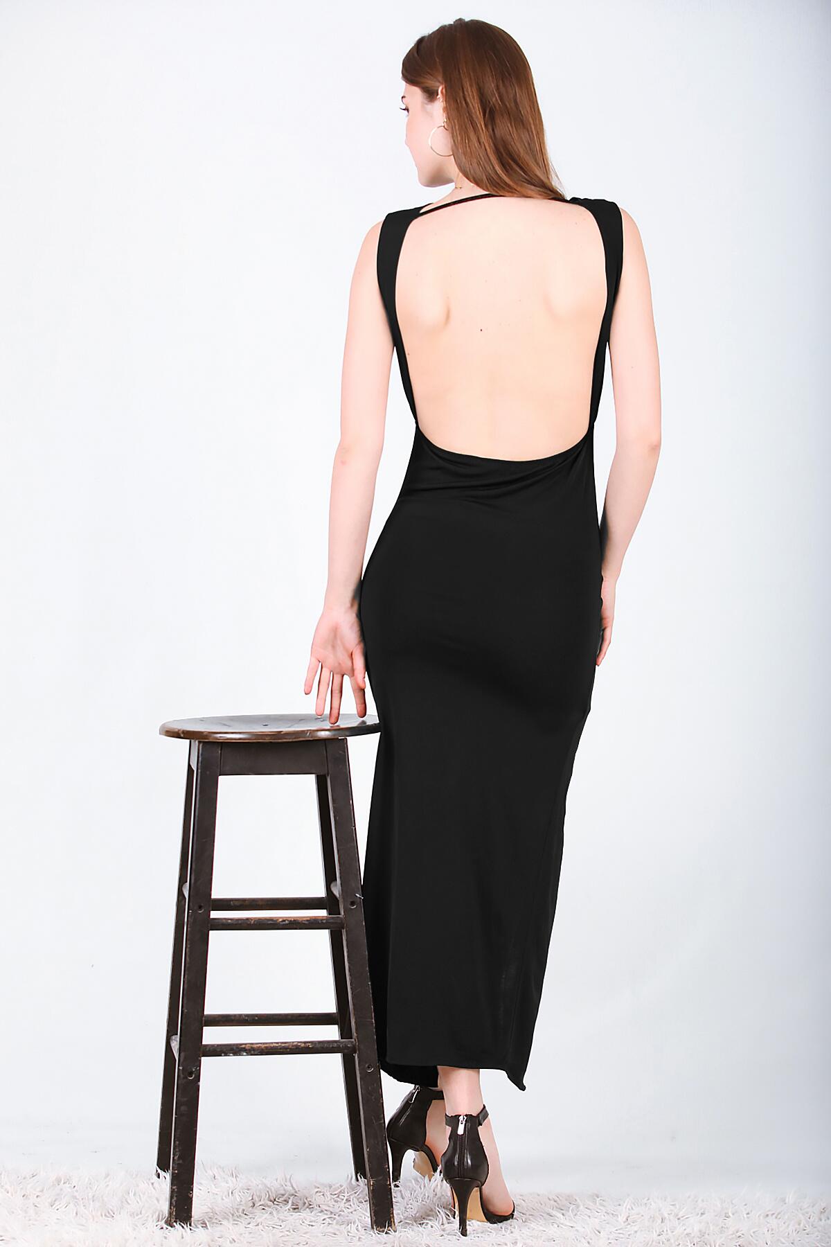 Kadın Sırt Dekolteli Midi Boy Elbise Siyah