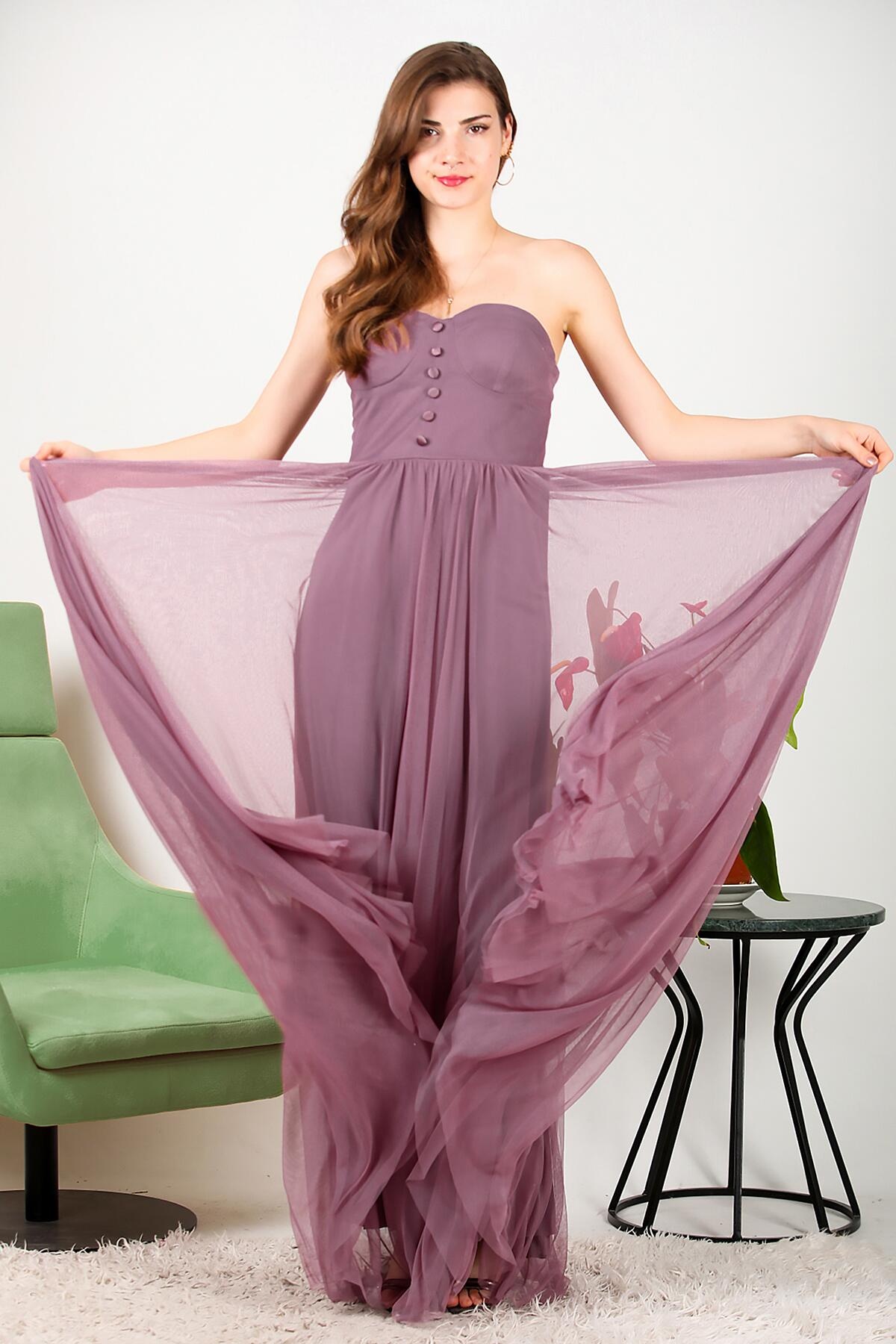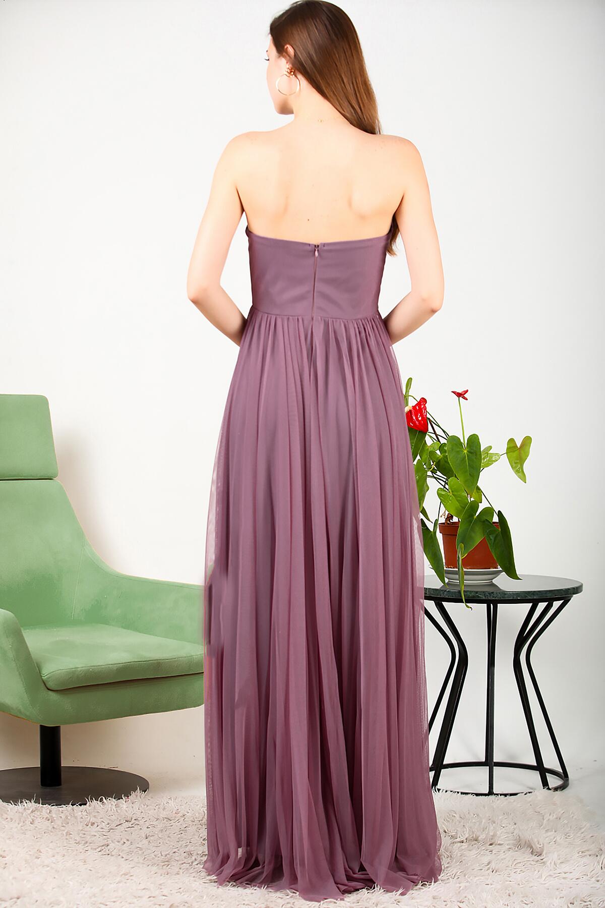 Numune Bedeni: 38 Numune Boyu: 150cm Kumaş Tipi: %97 Polyester %3 Elastan Kol: Straplez