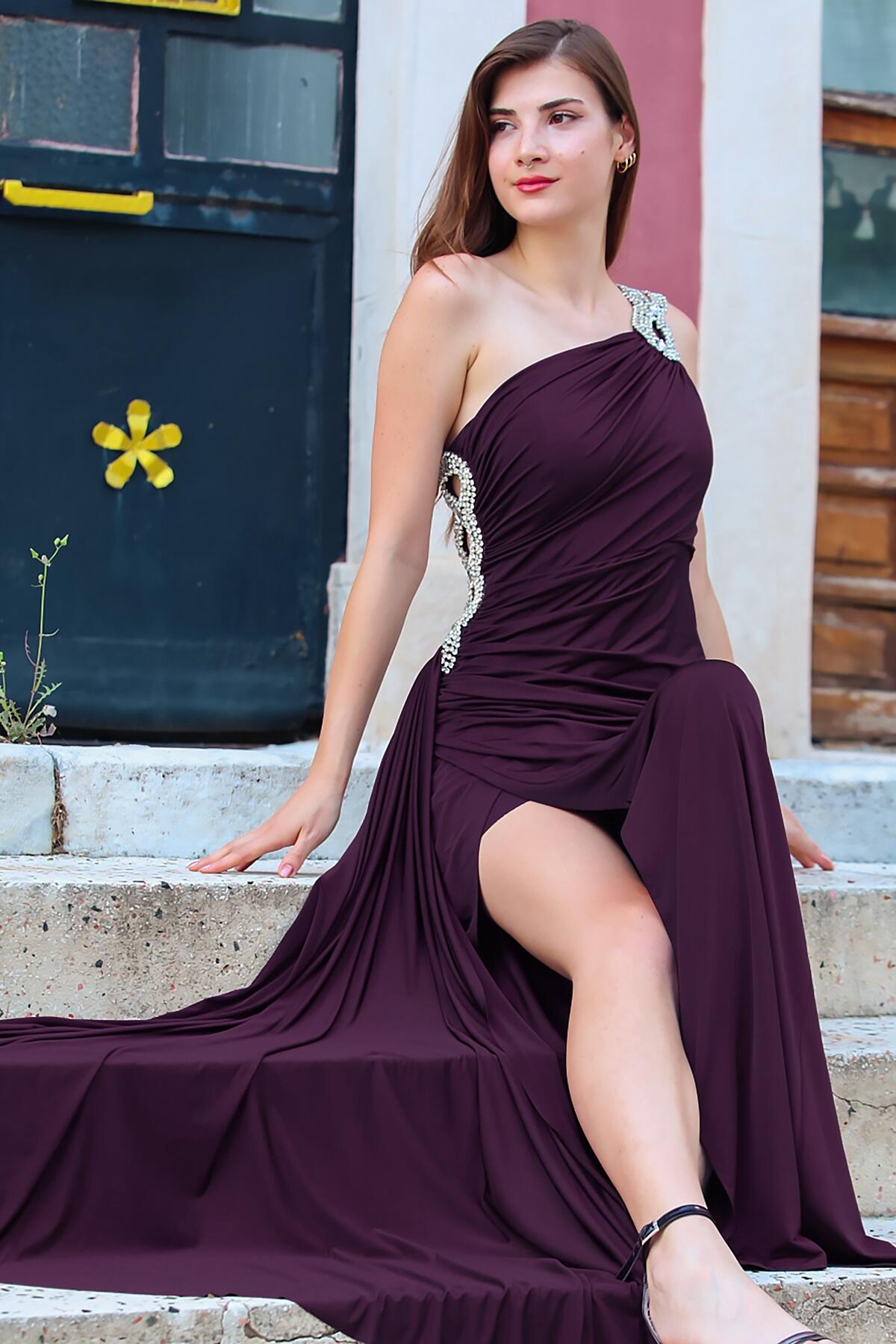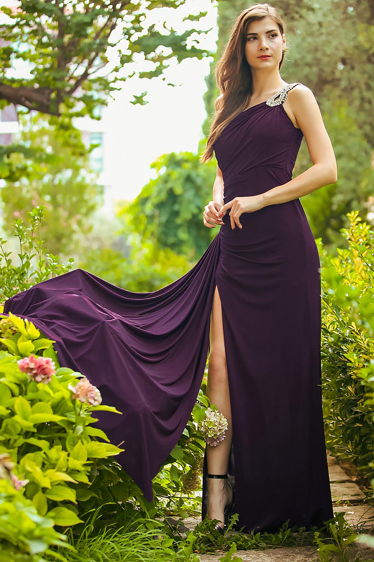 Numune Bedeni: 38 Numune Boyu: 165 cm Kumaş Tipi: %100 Polyester Kol: Tek Omuz