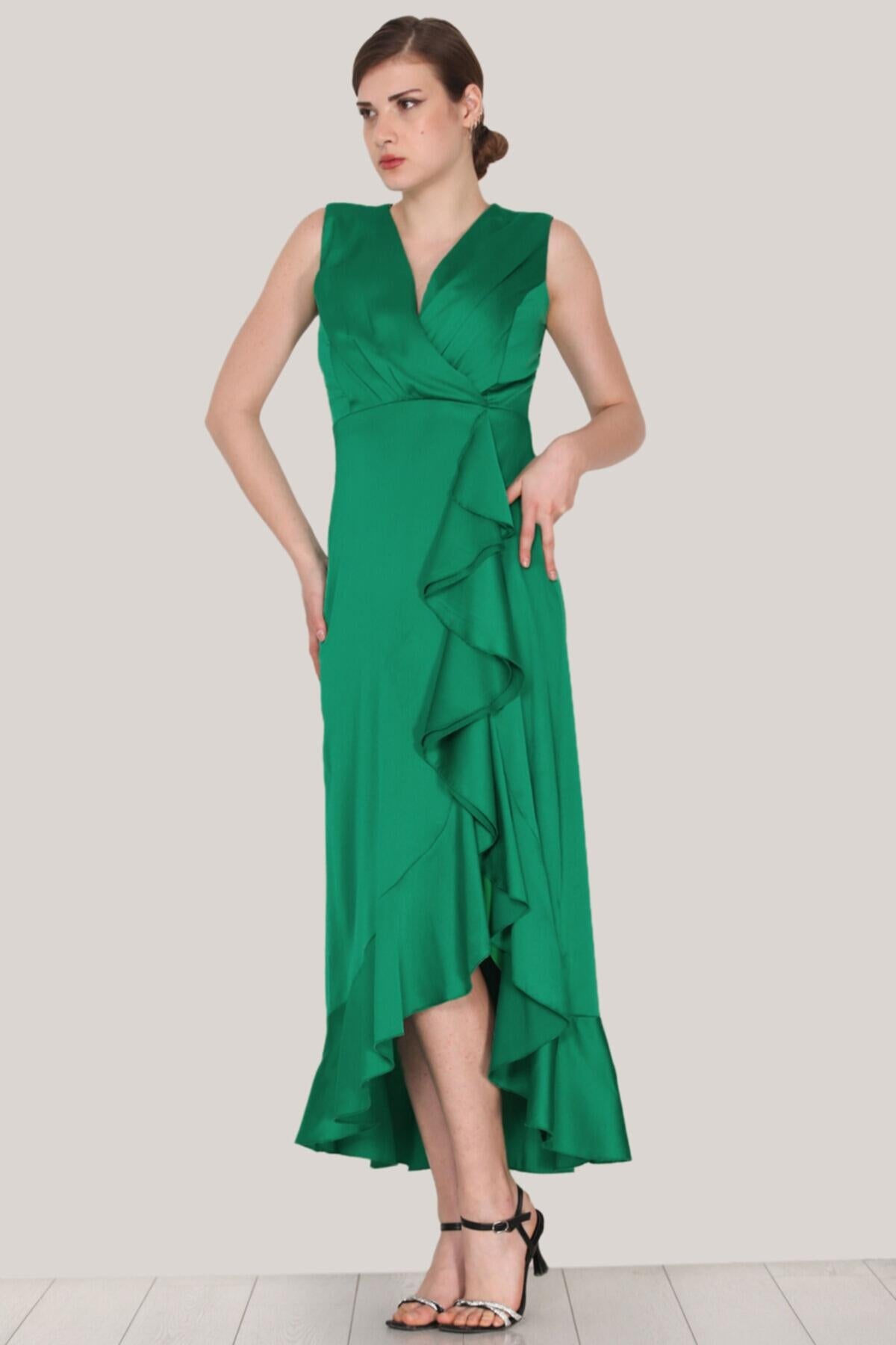 ÜRÜN BİLGİLERİ Numune Bedeni: 38Numune Boyu: 100 cm(ön) 142 cm(arka)Kumaş Türü: POLYESTERKumaş İçeriği: % 100 Polyester