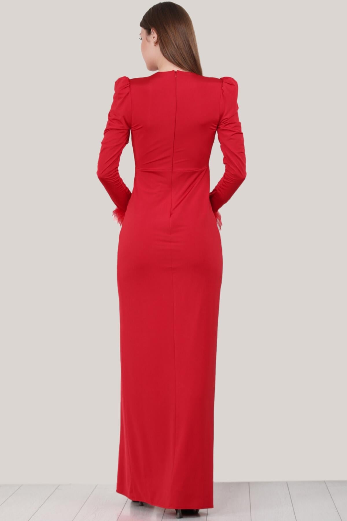Kadın Yırtmaçlı Uzun Abiye Kırmızı