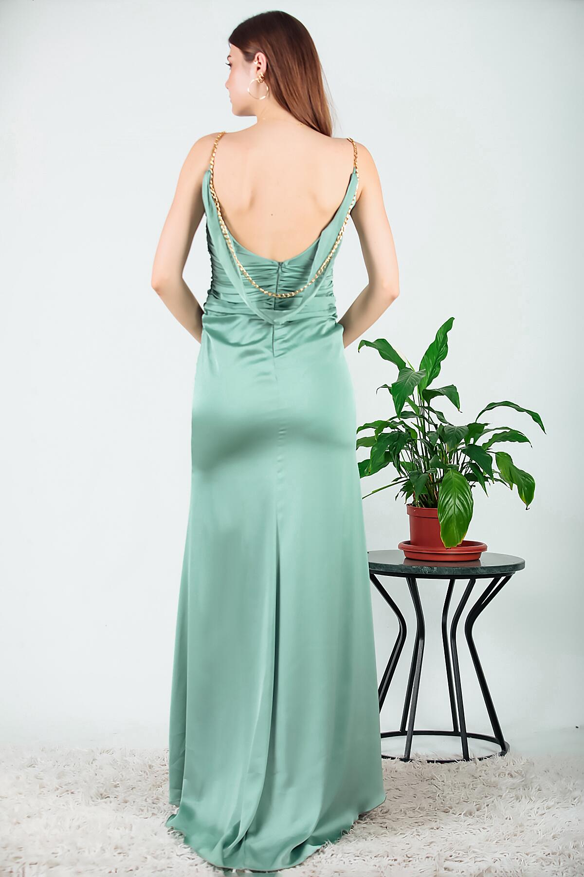 Kadın Zincir Detaylı Abiye Çağla Yeşili