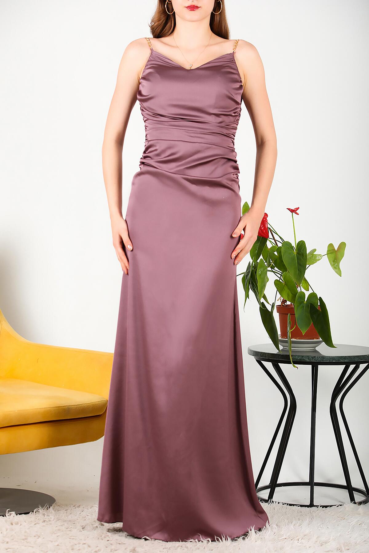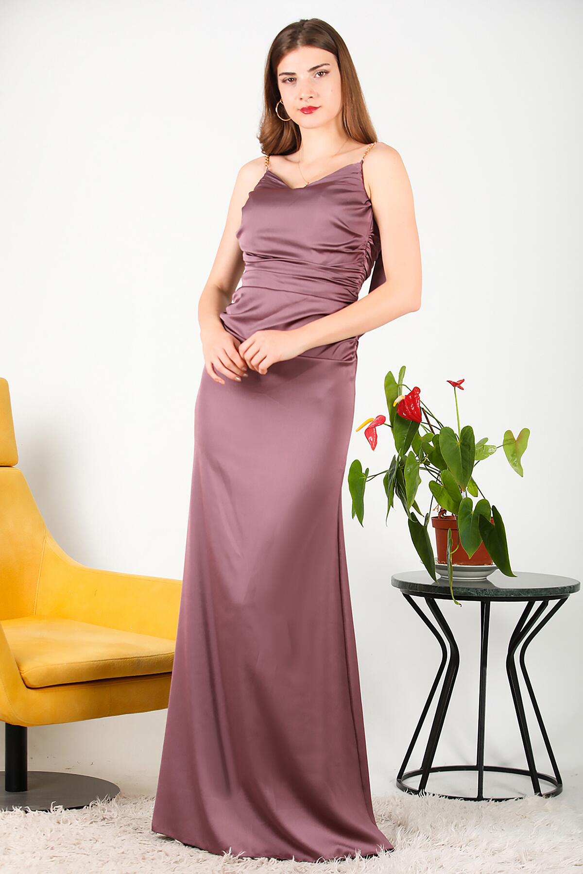 Kadın Zincir Detaylı Abiye Gül Kurusu