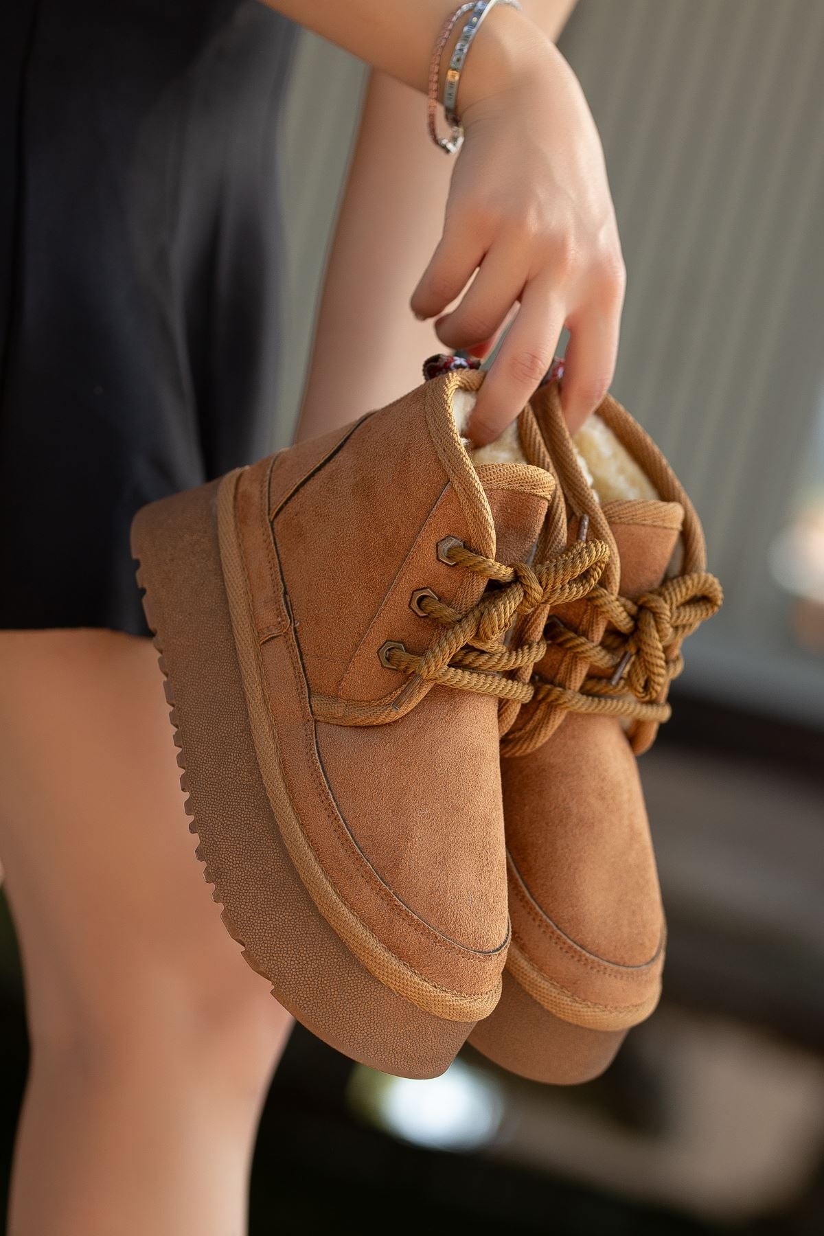 Els Taba Süet Kalın Tabanlı Bağcıklı Yarım Bot Taba