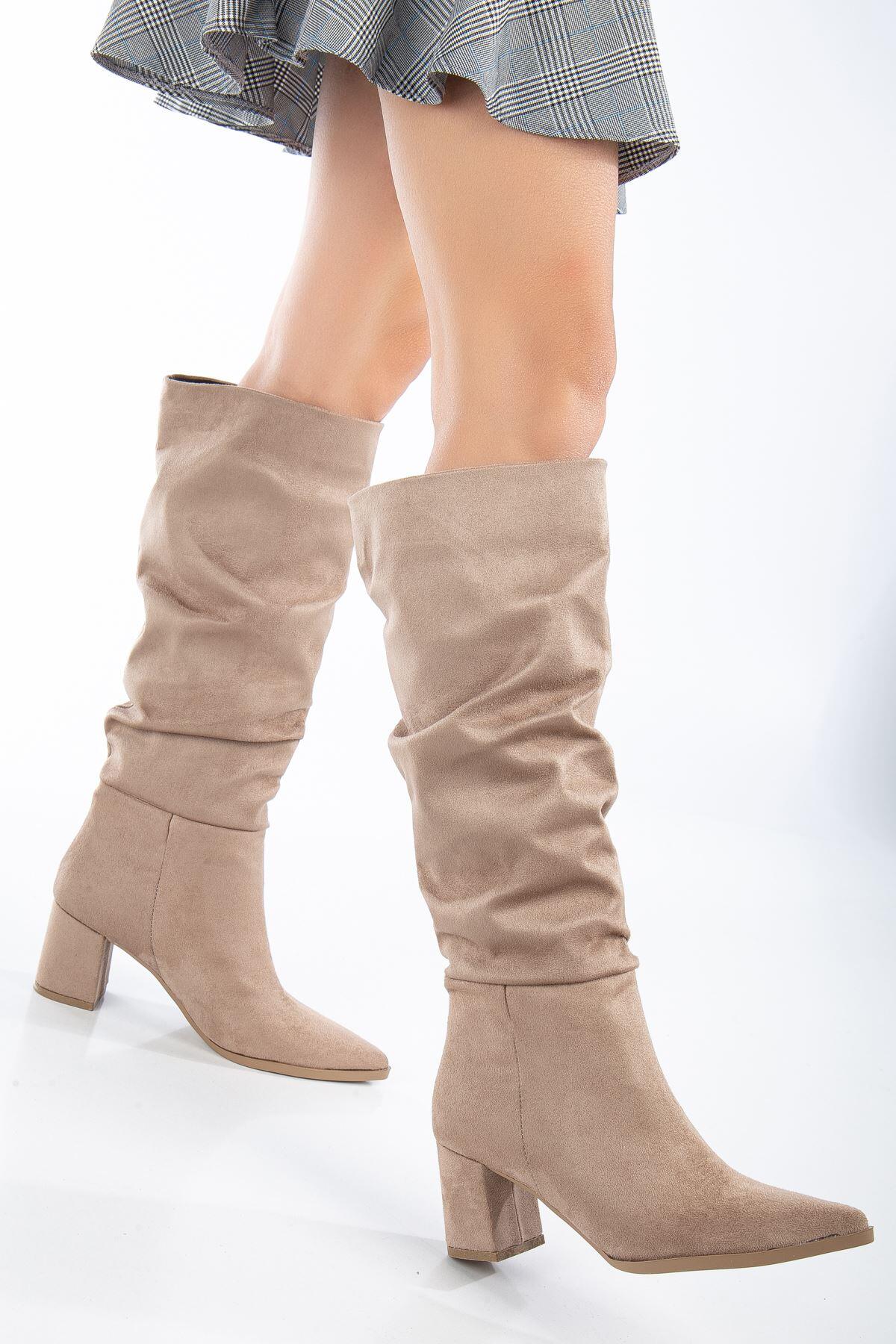 Lise-britt Nude Süet Körüklü Topuklu Kadın Çizme Bej