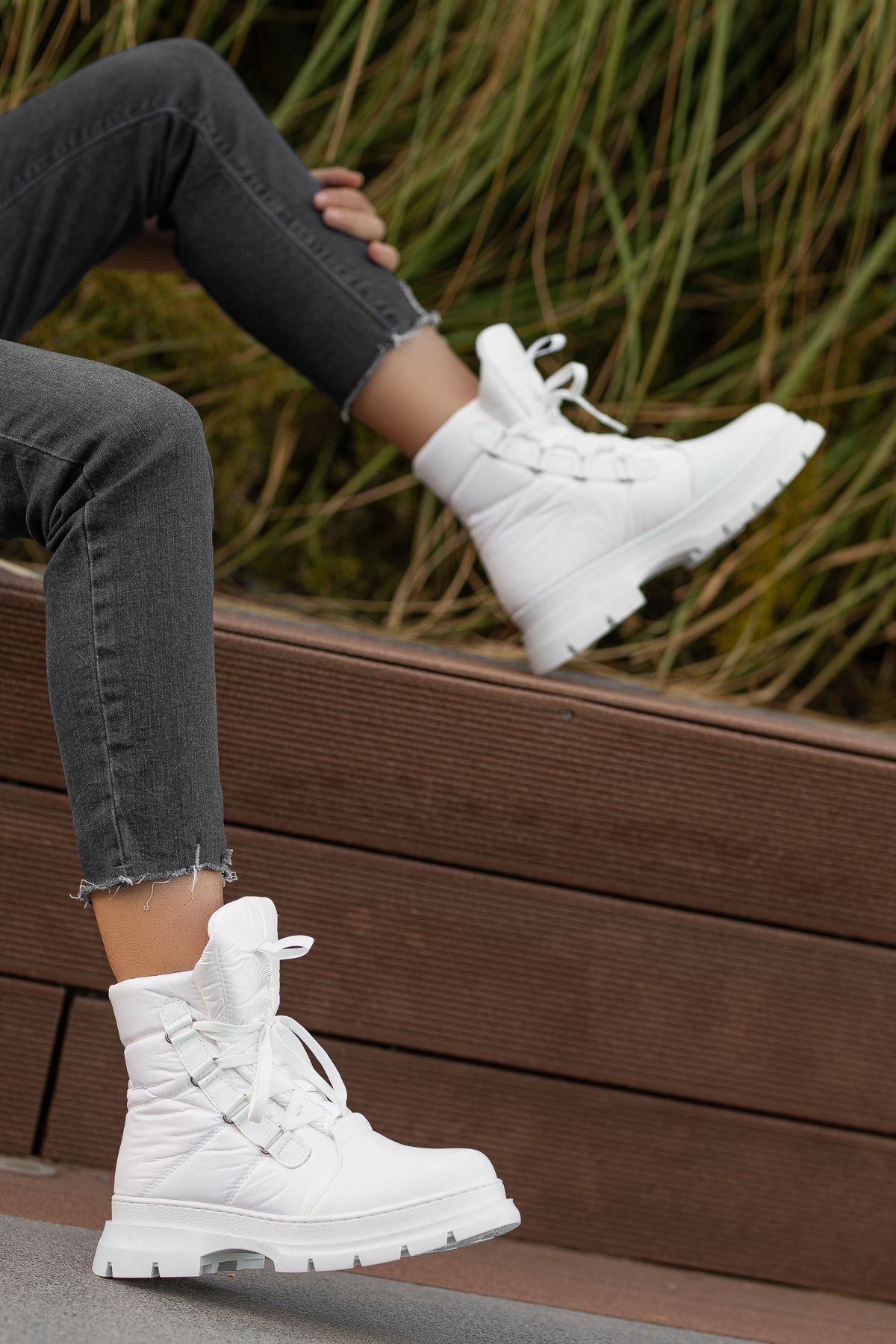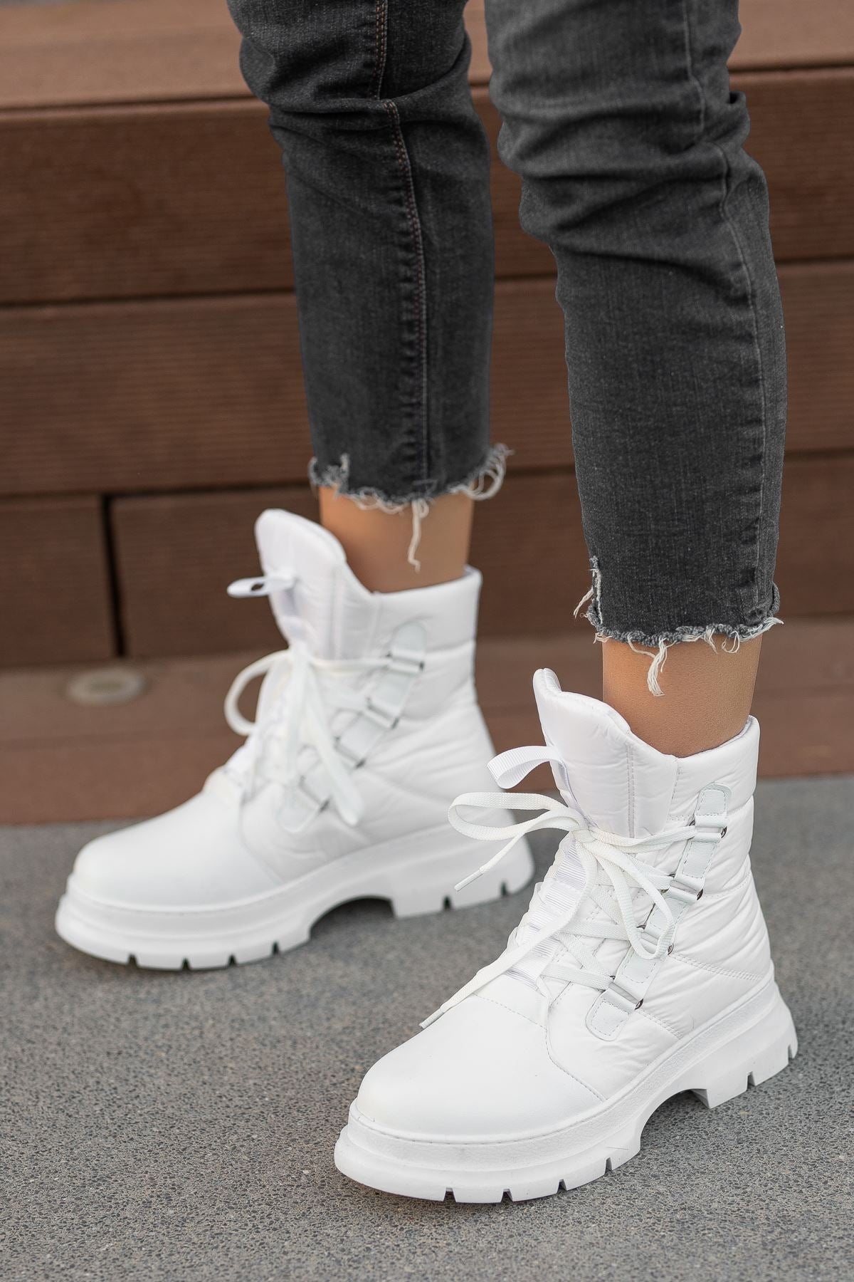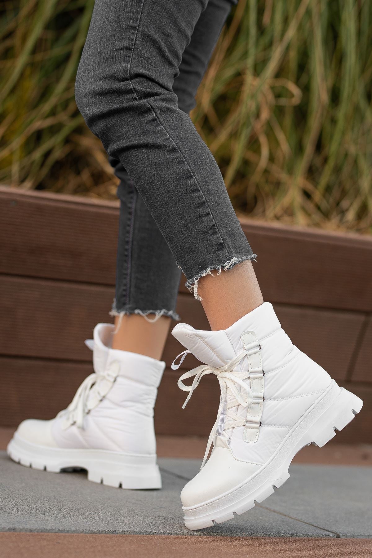 Town Beyaz Bağcık Detaylı Paraşüt Kadın Bot Beyaz