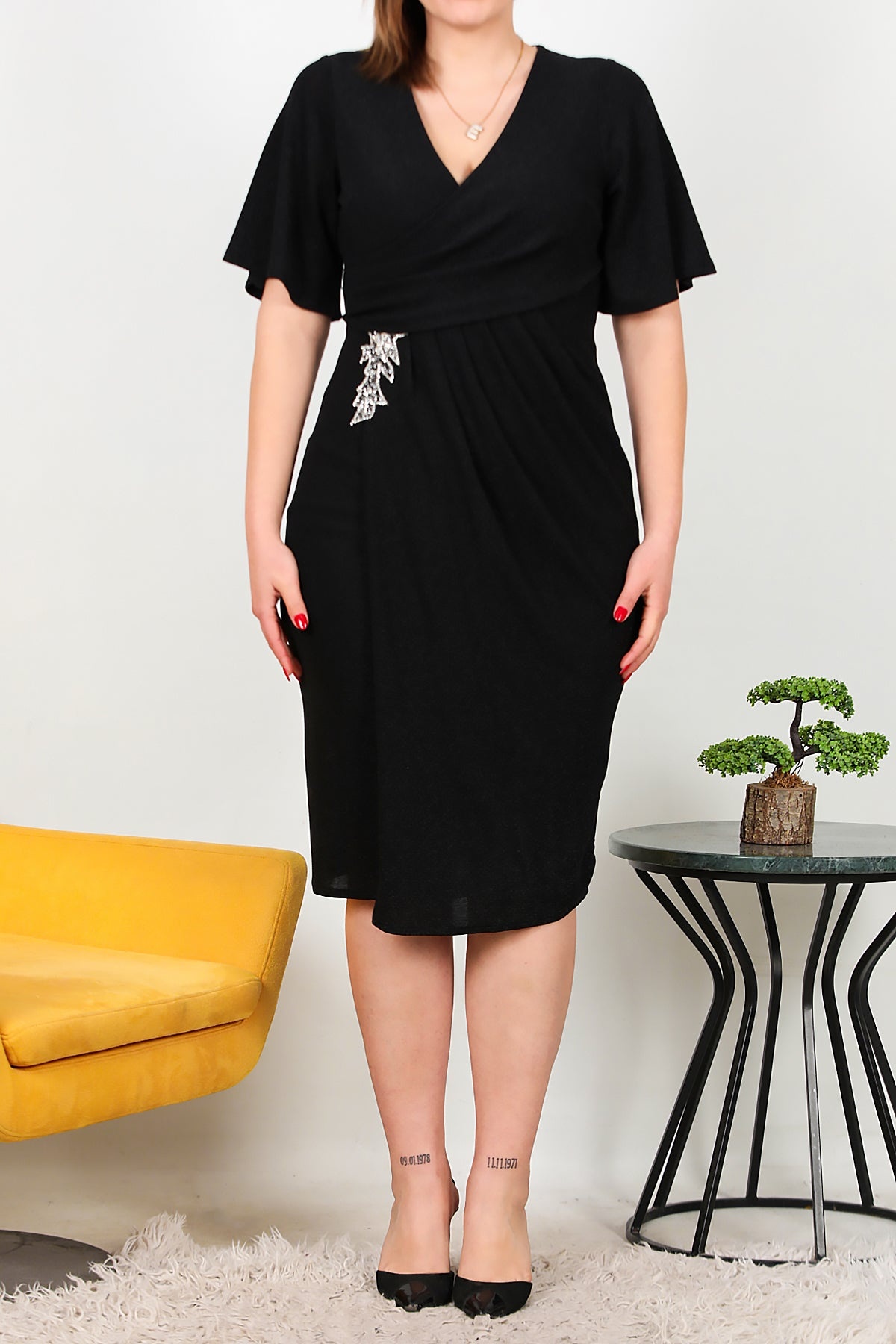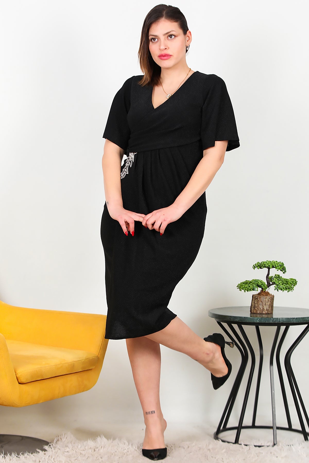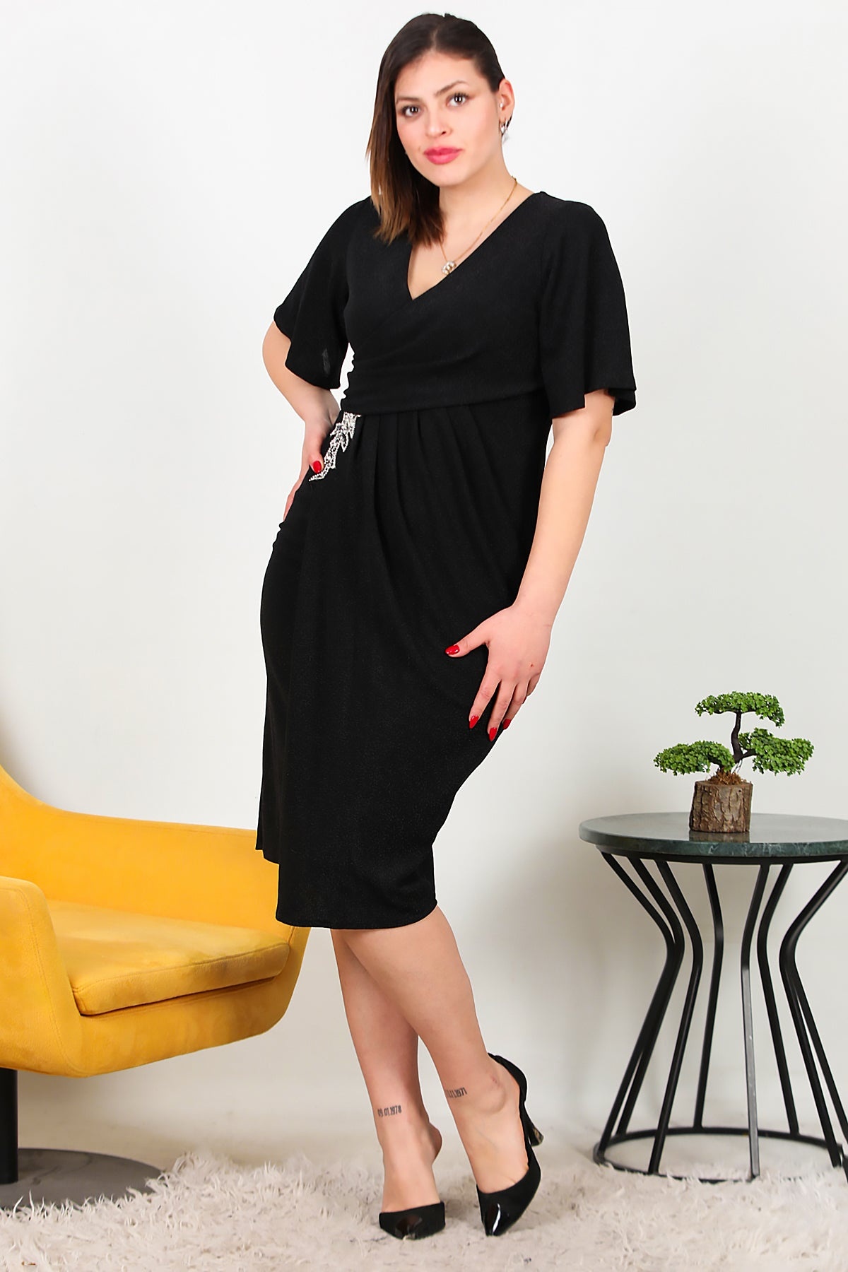 MODEL BİLGİLERİ Boy: 175 cm Göğüs:94 cm Bel: 75 cm Kalça: 112 cm