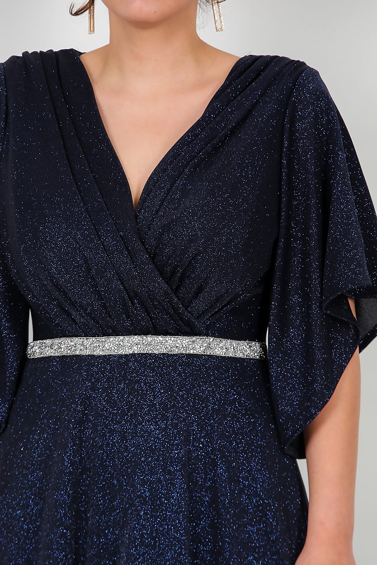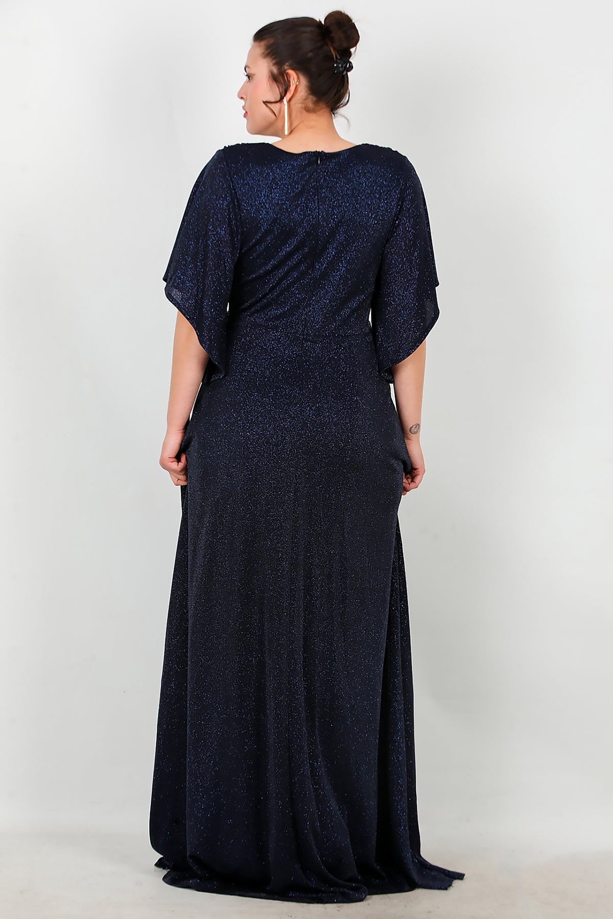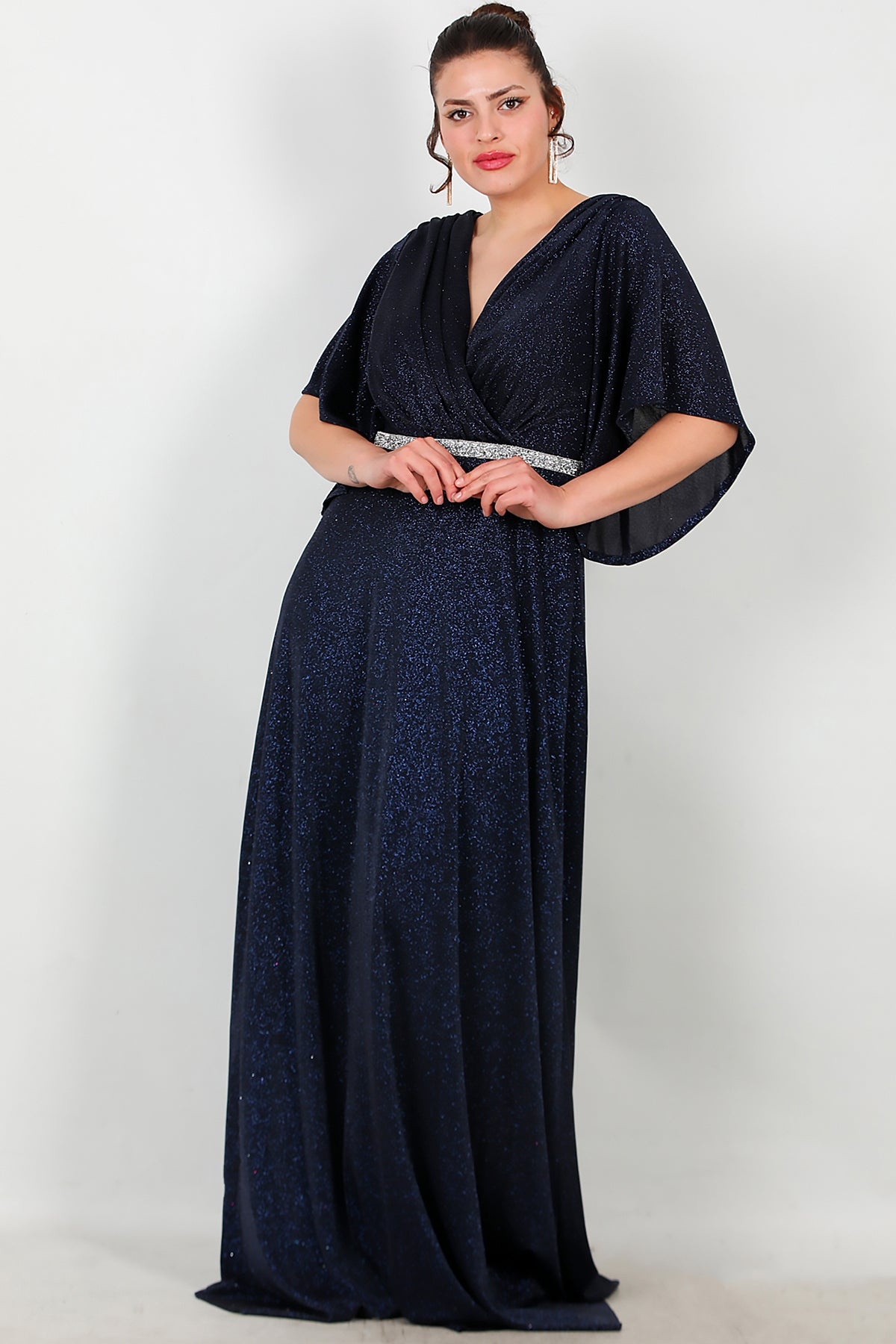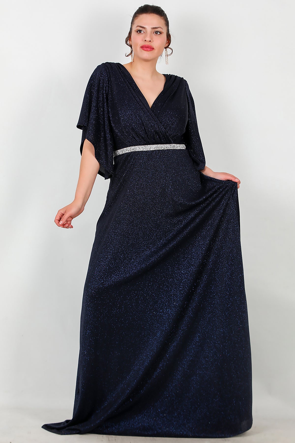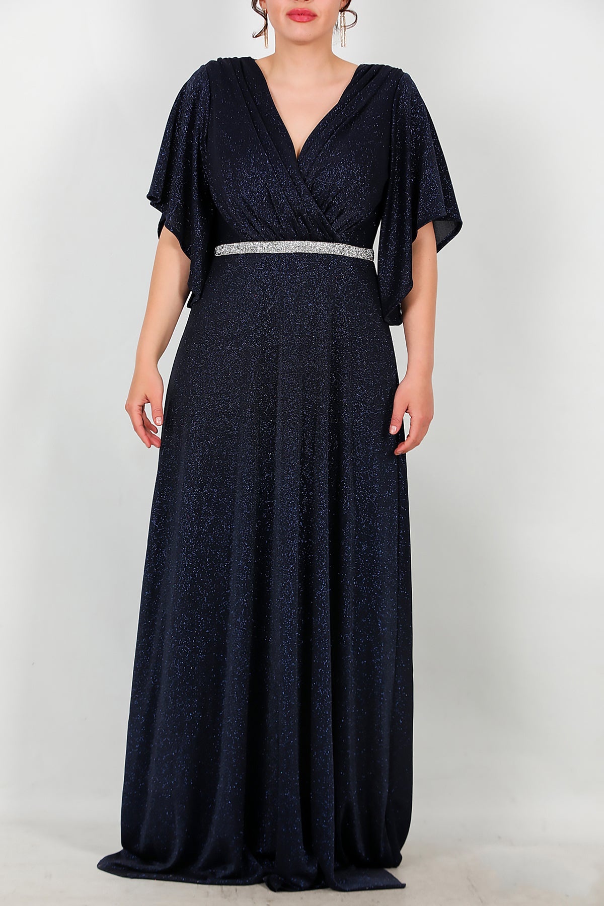 Büyük Beden Beli Taş Şeritli Uzun Abiye Lacivert