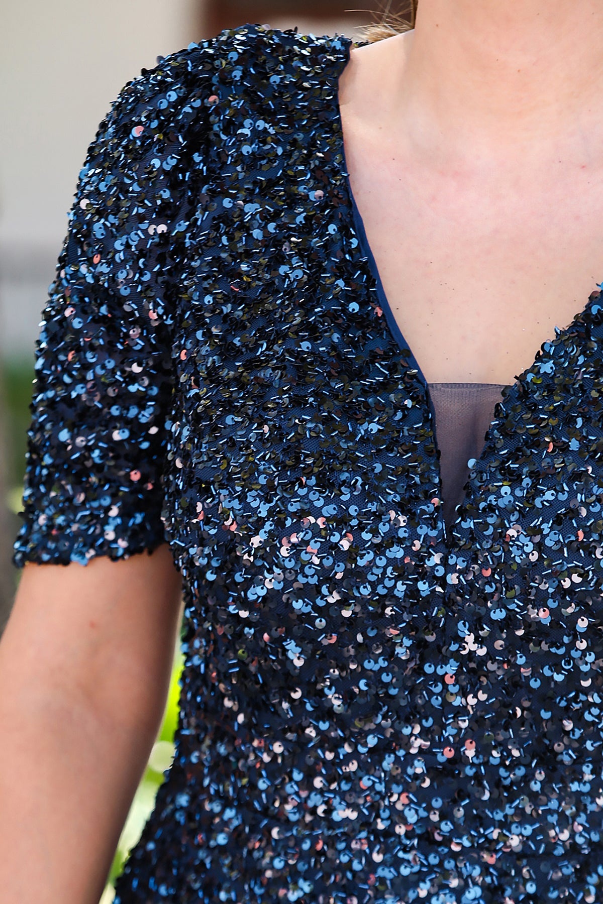 Büyük Beden Kısa Kol Pullu Kısa Abiye Lacivert