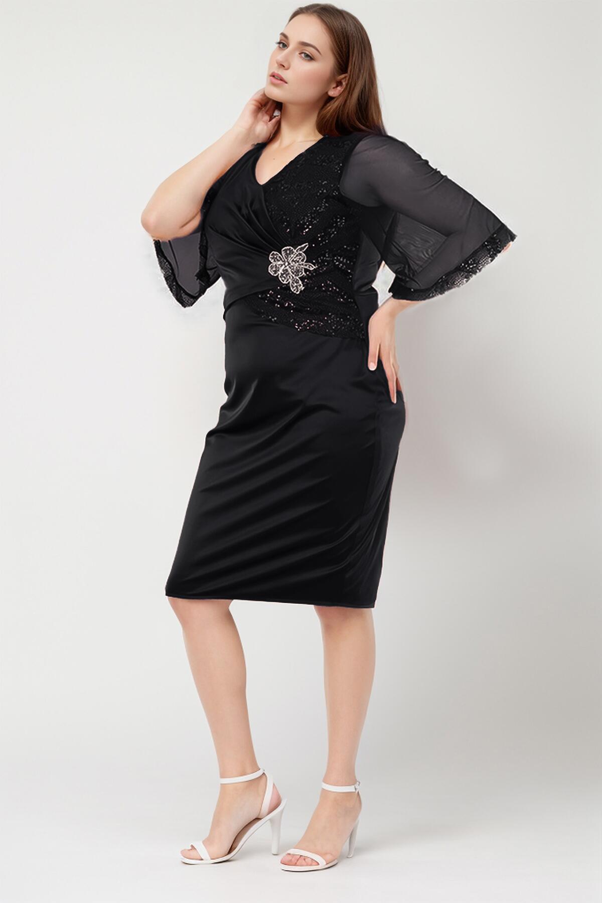 Büyük Beden Palet Ve Taş İşlemeli Kısa Abiye Siyah