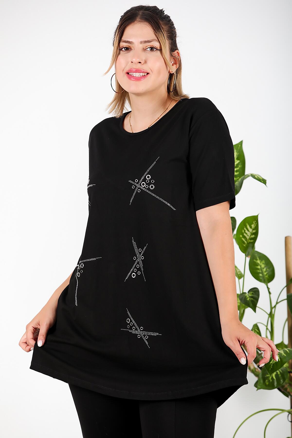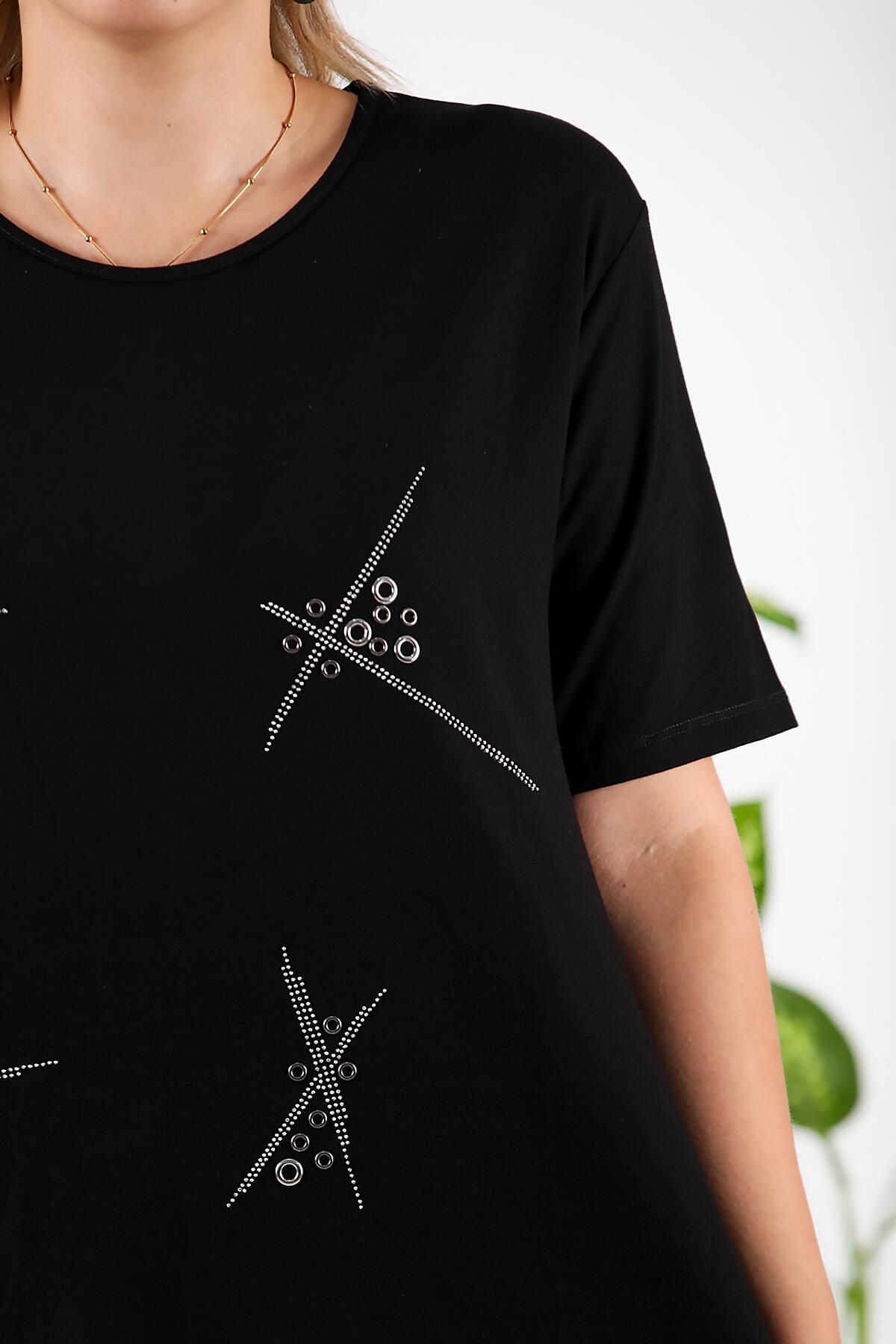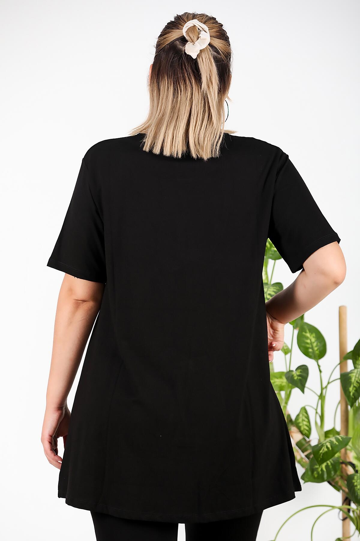 Büyük Beden Bisiklet Yaka Bluz Siyah