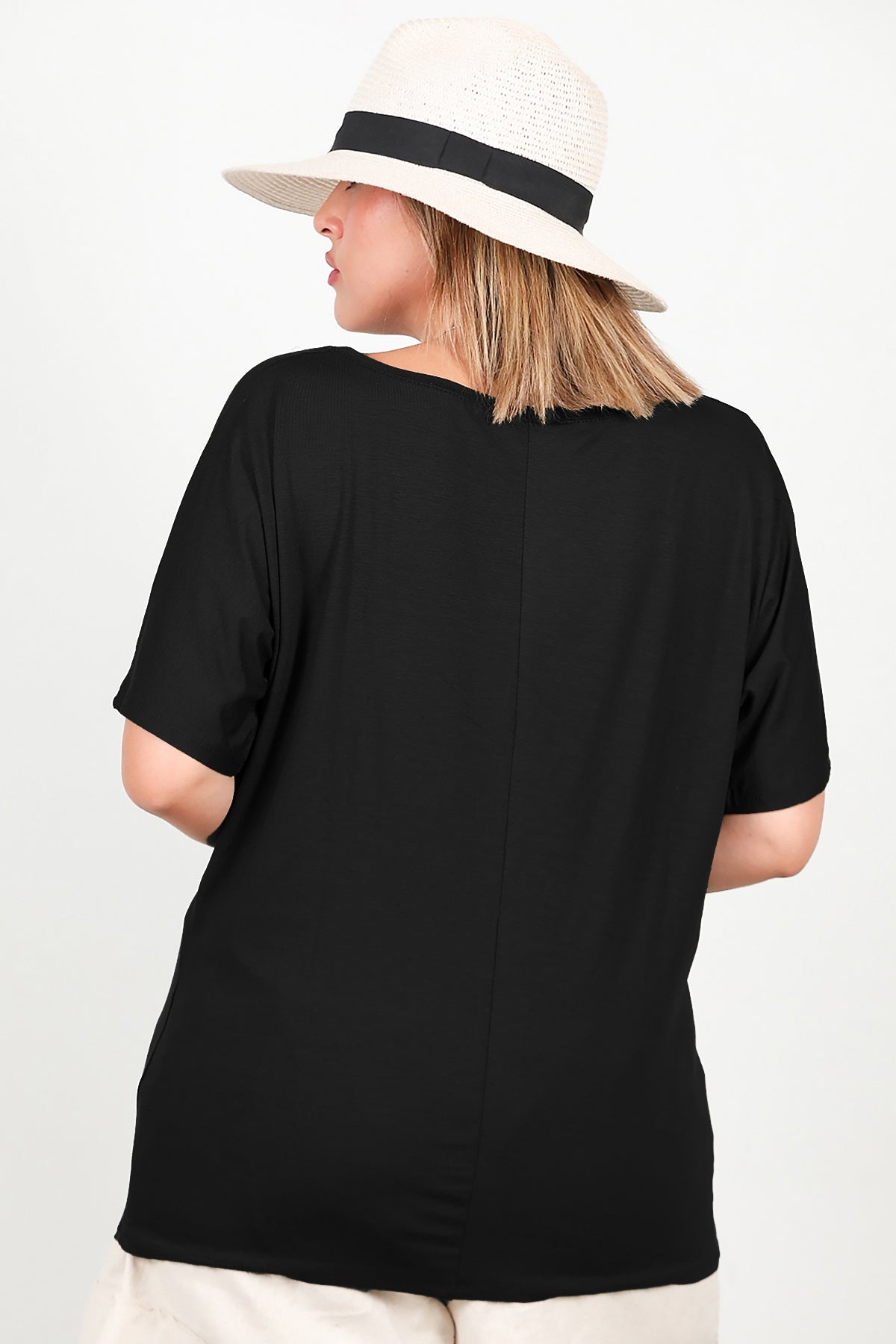 Büyük Beden Bisiklet Yaka Bluz Siyah