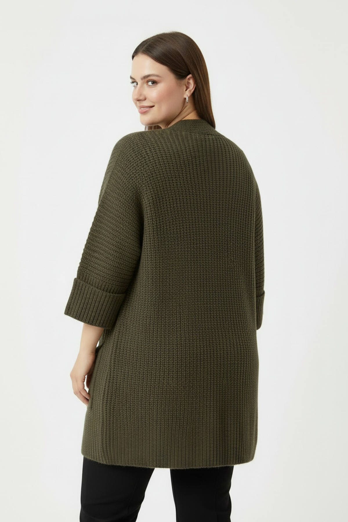 Büyük Beden Cepli Hırka Haki