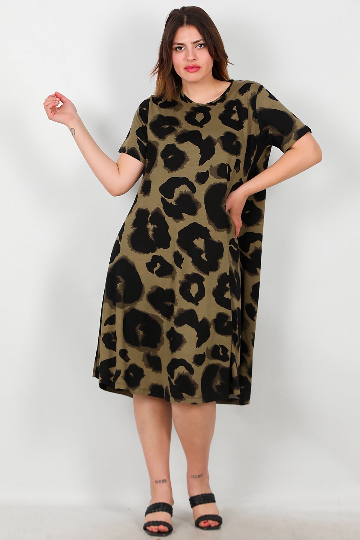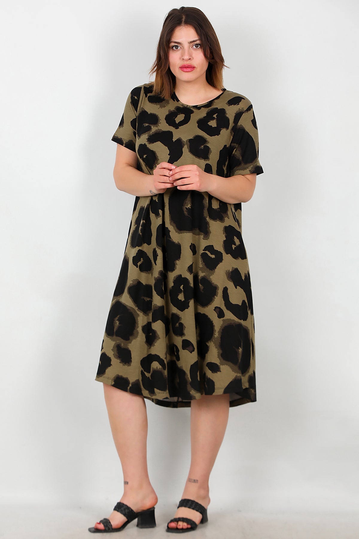 Büyük Beden Desenli Elbise Çok Renkli