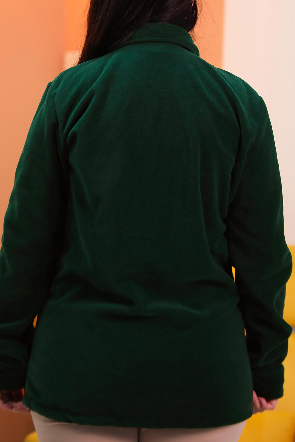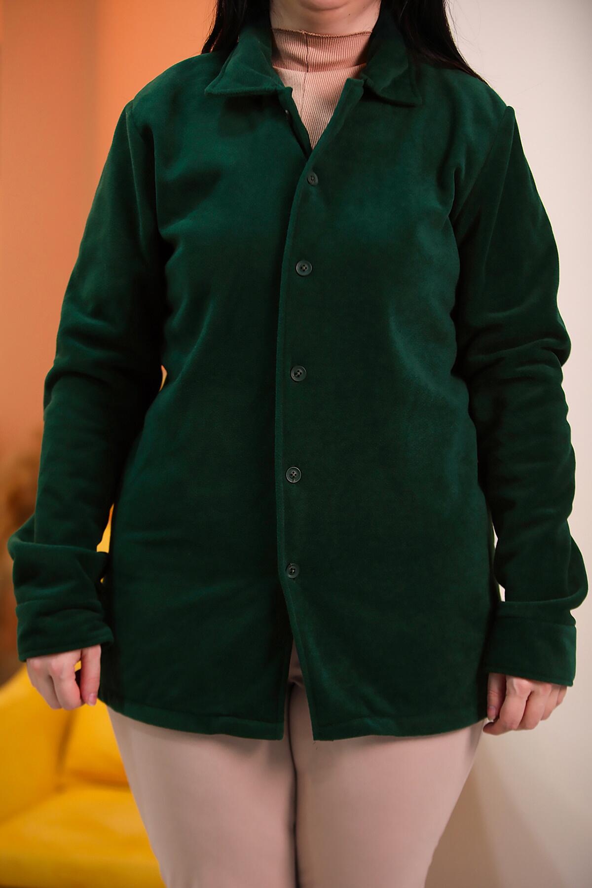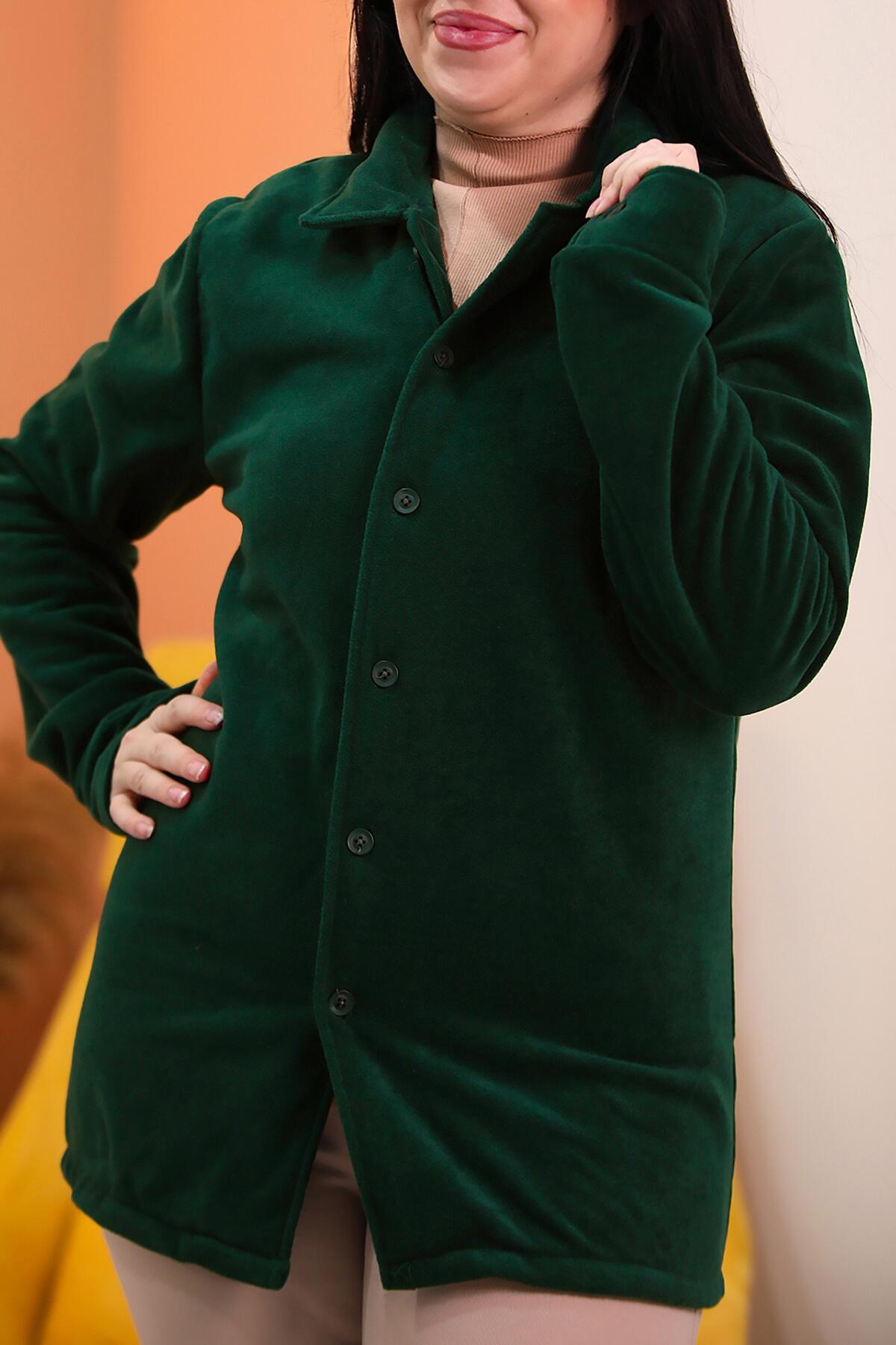 Büyük Beden Düğmeli Polar Gömlek Zümrüt