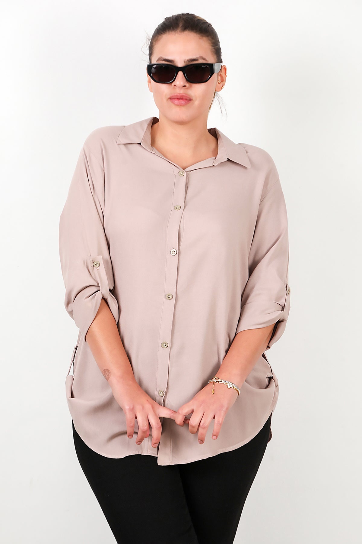 Büyük Beden Gömlek Bej Bej
