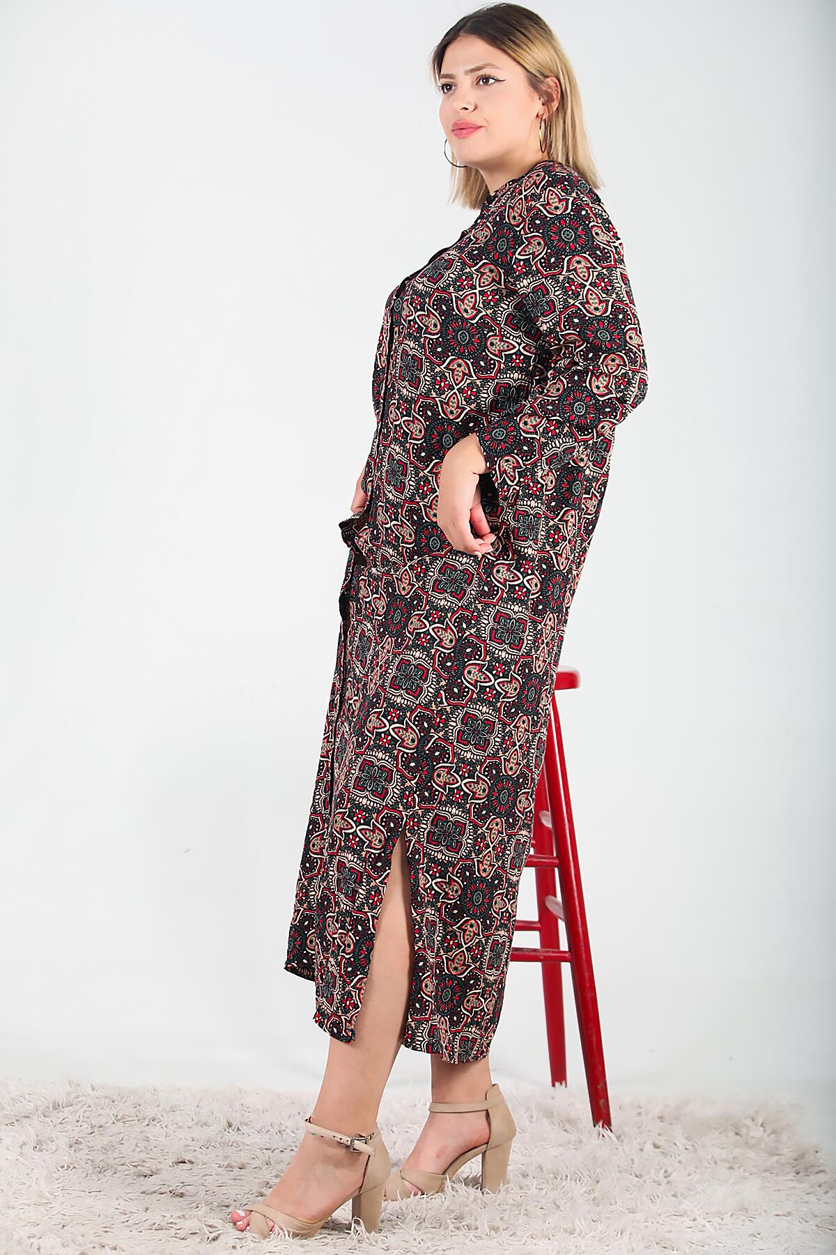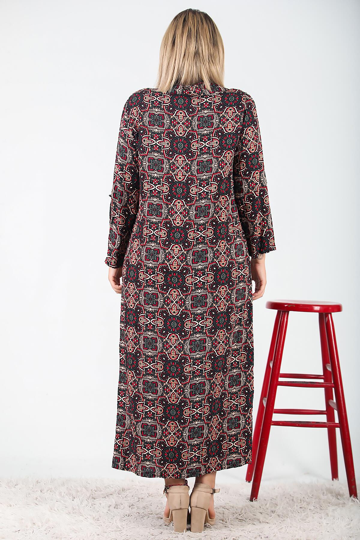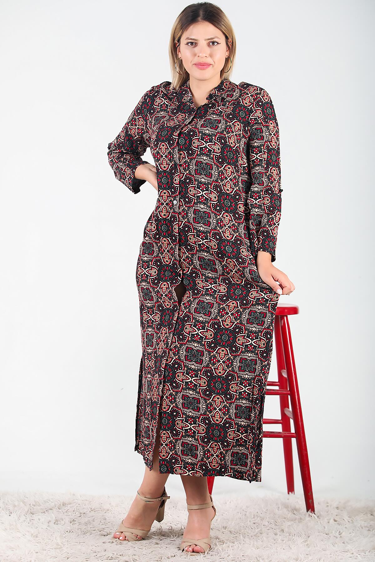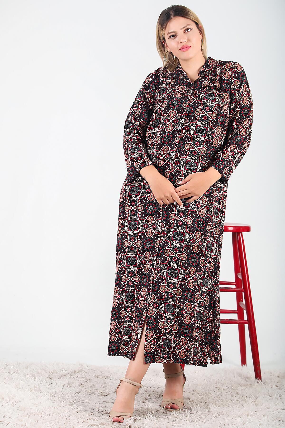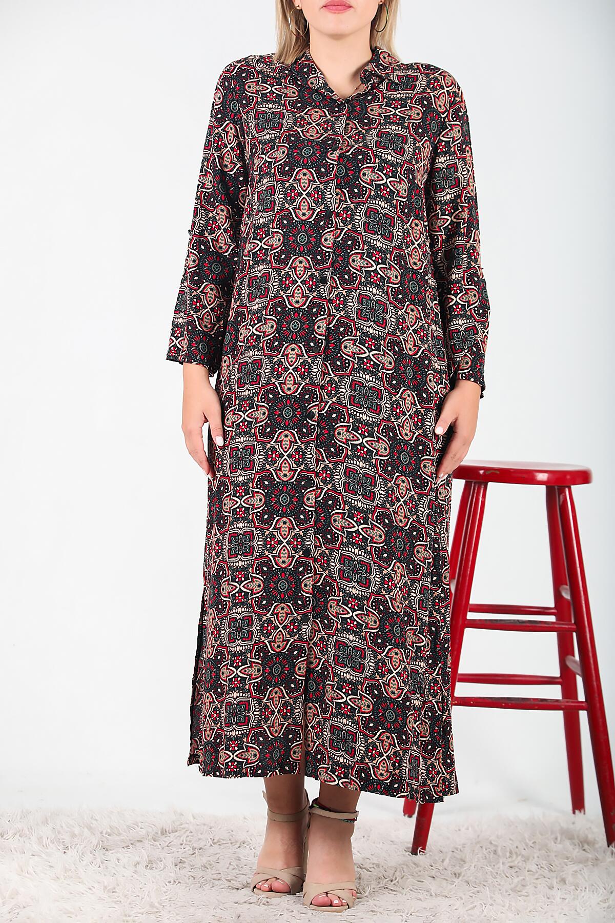 Büyük Beden Gömlek Yaka Uzun Elbise Siyah