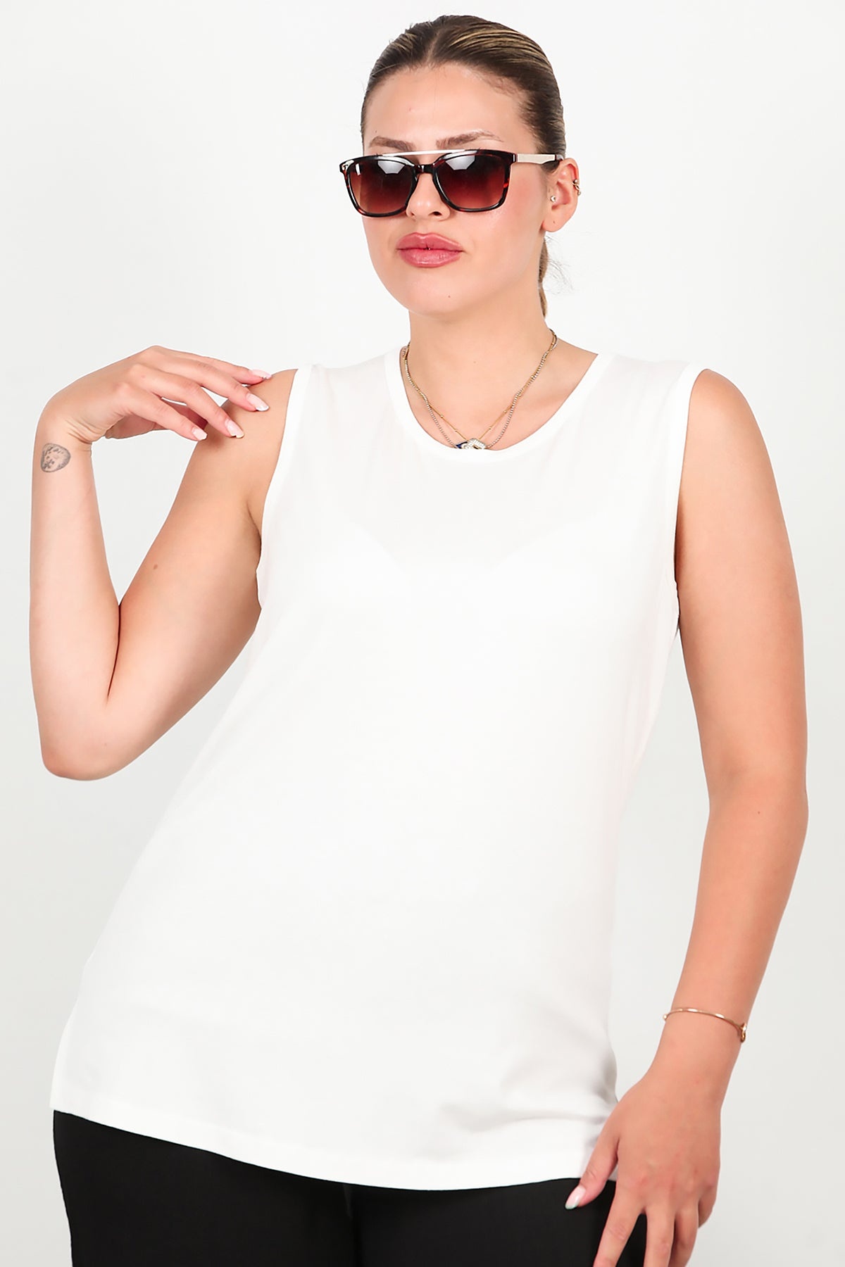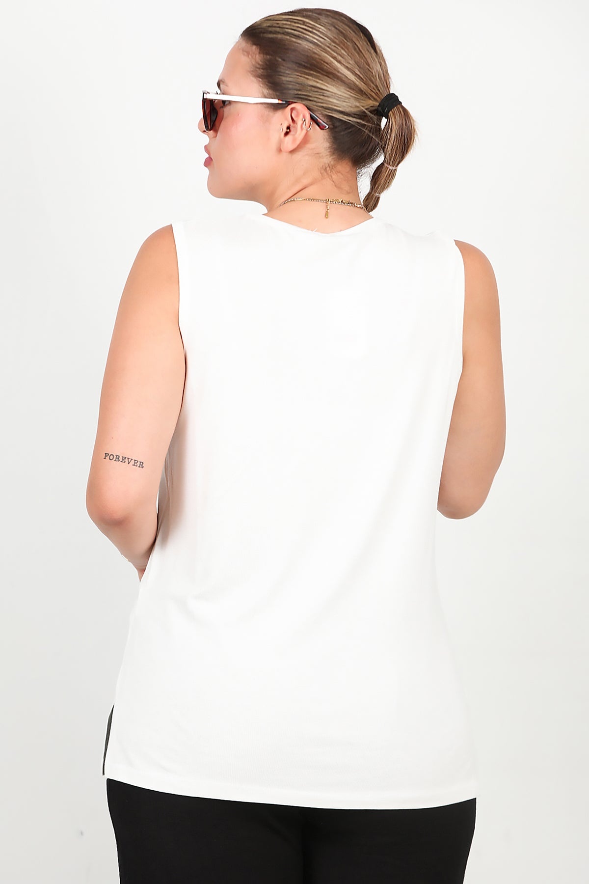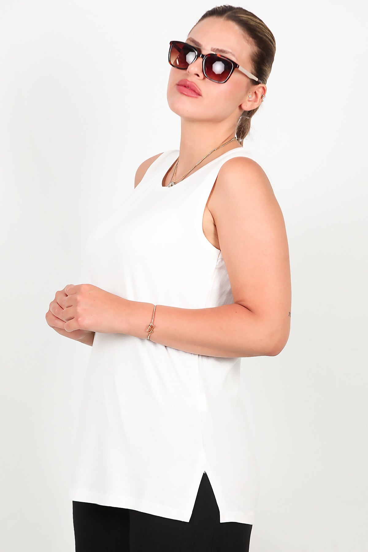 Büyük Beden Kalın Askılı Yırtmaçlı Bluz Ekru