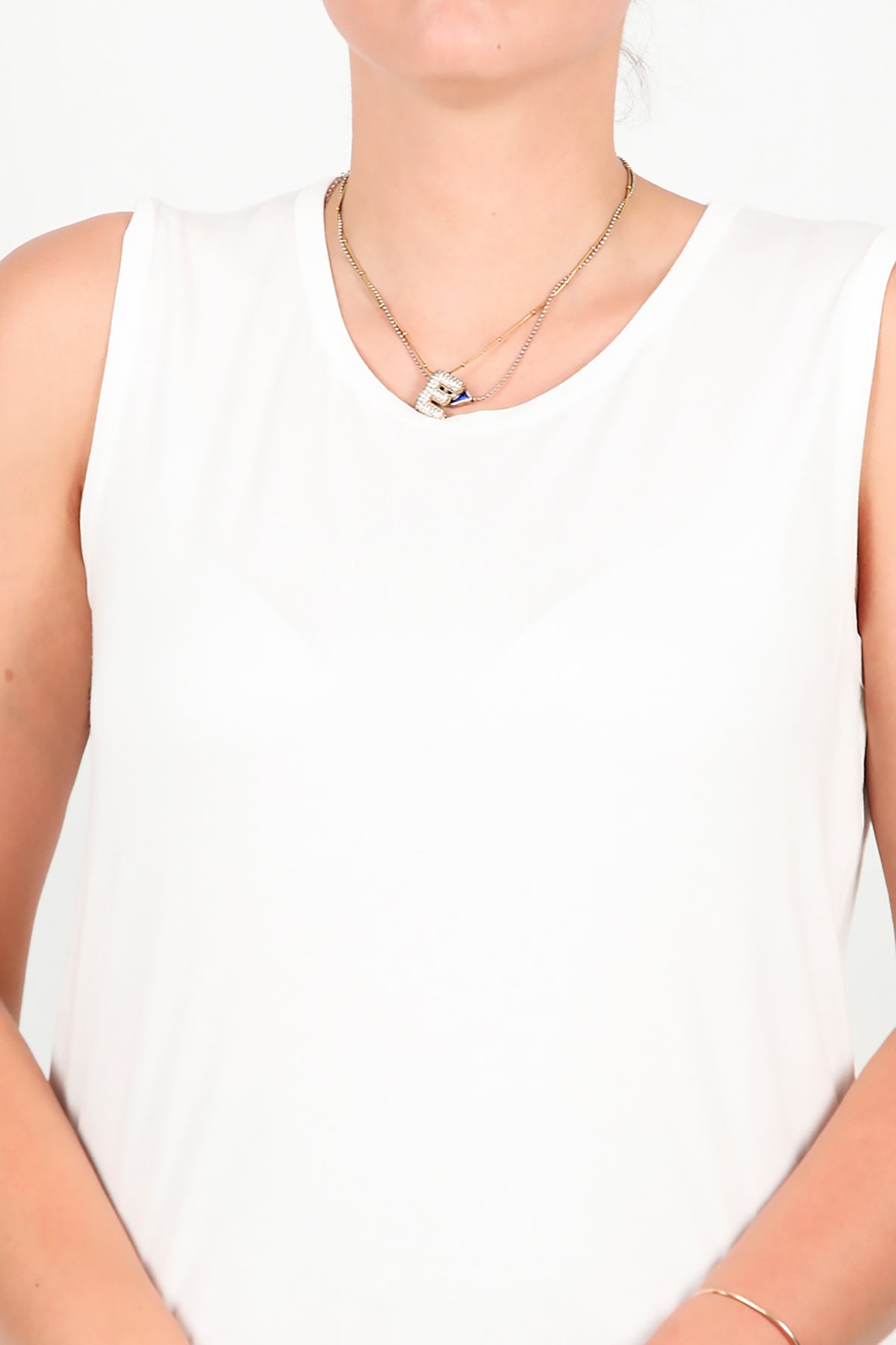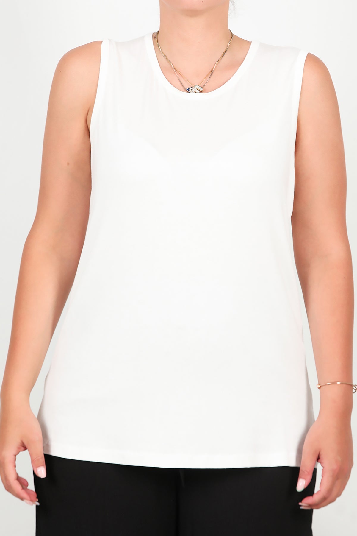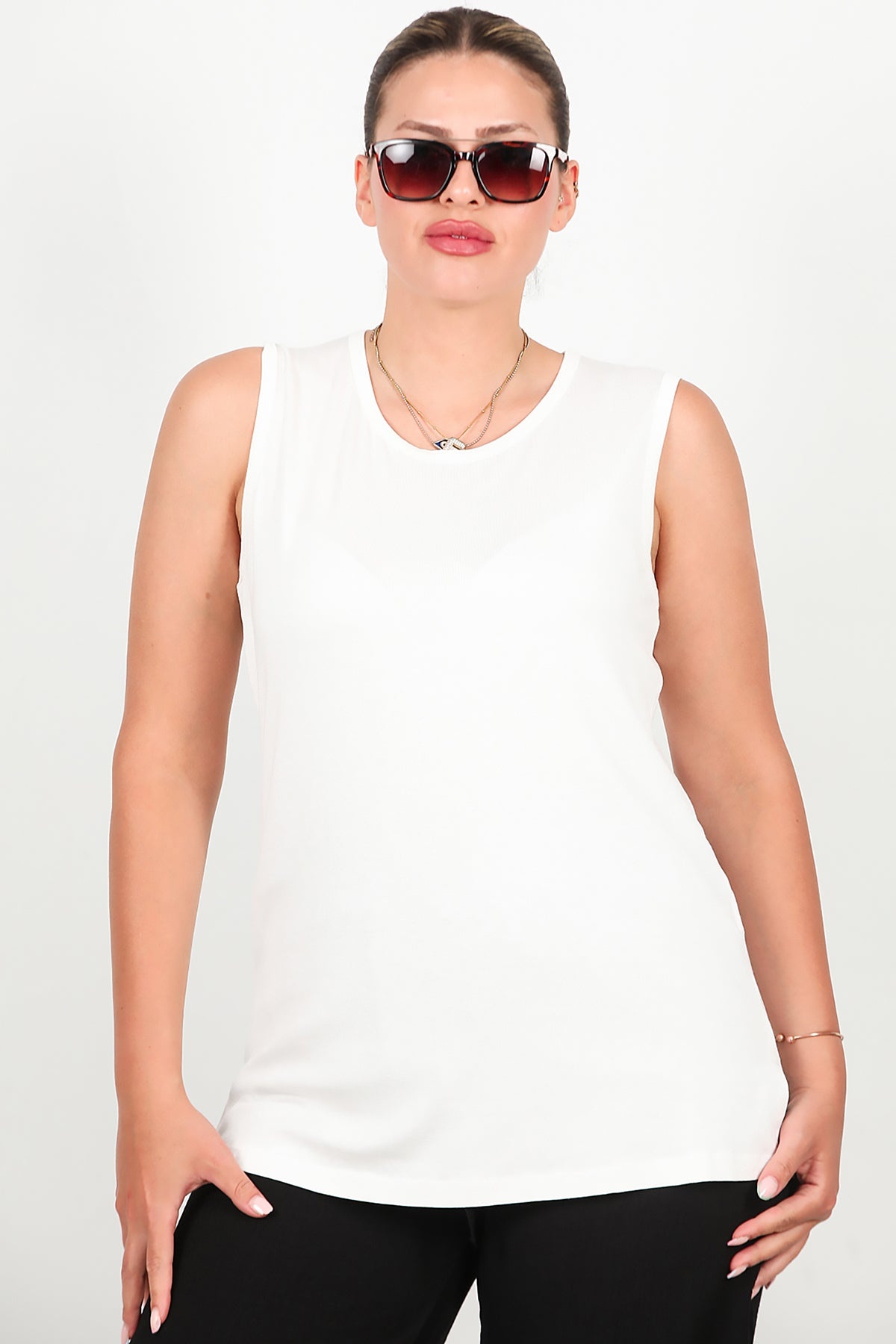 Büyük Beden Kalın Askılı Yırtmaçlı Bluz Ekru