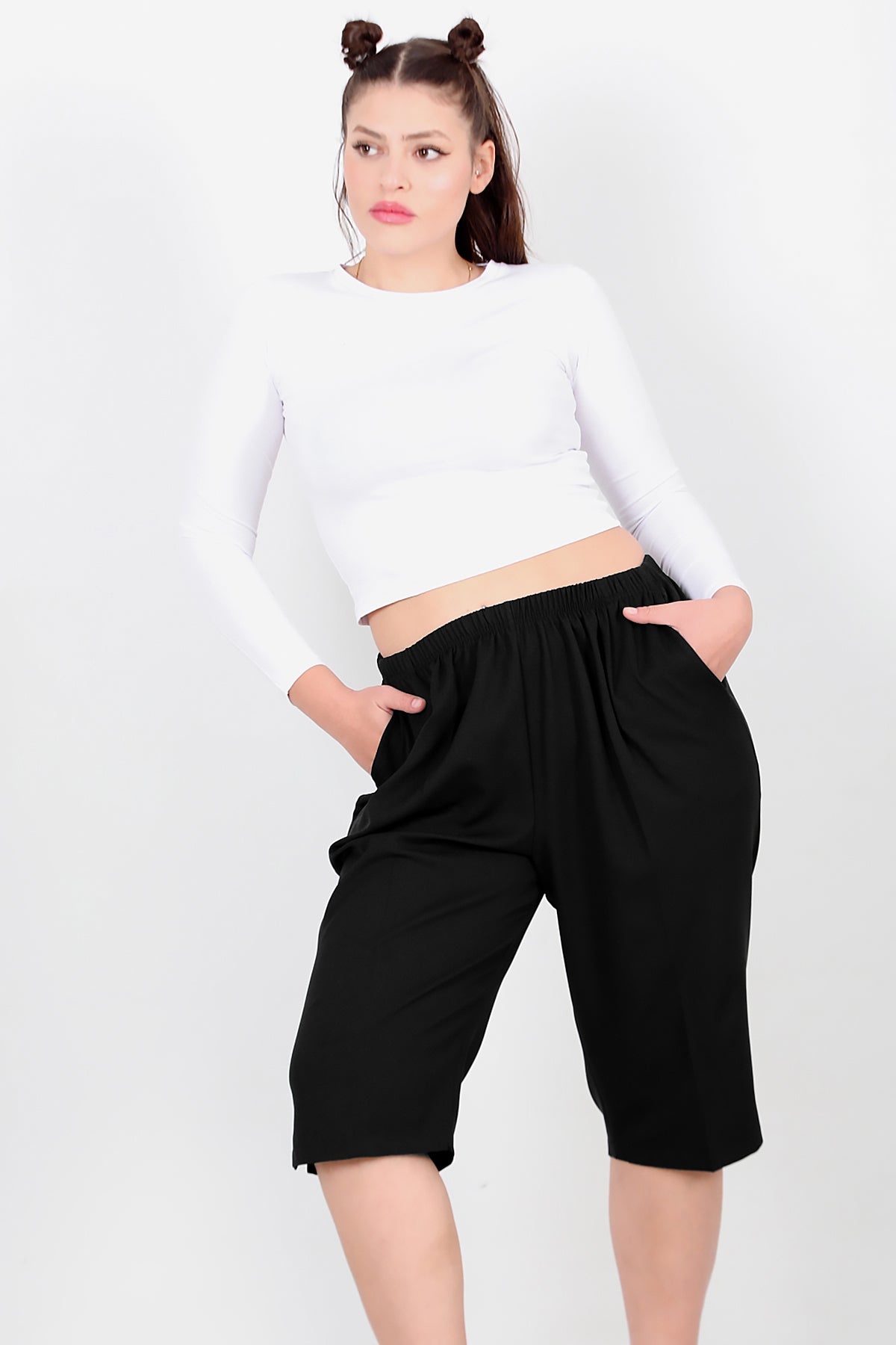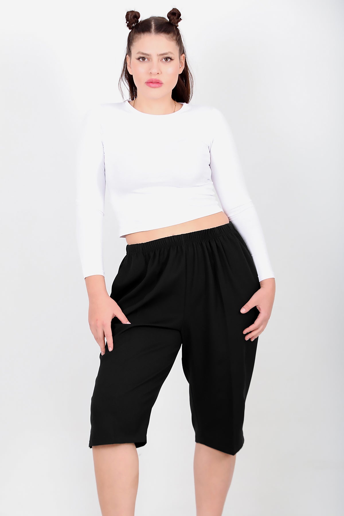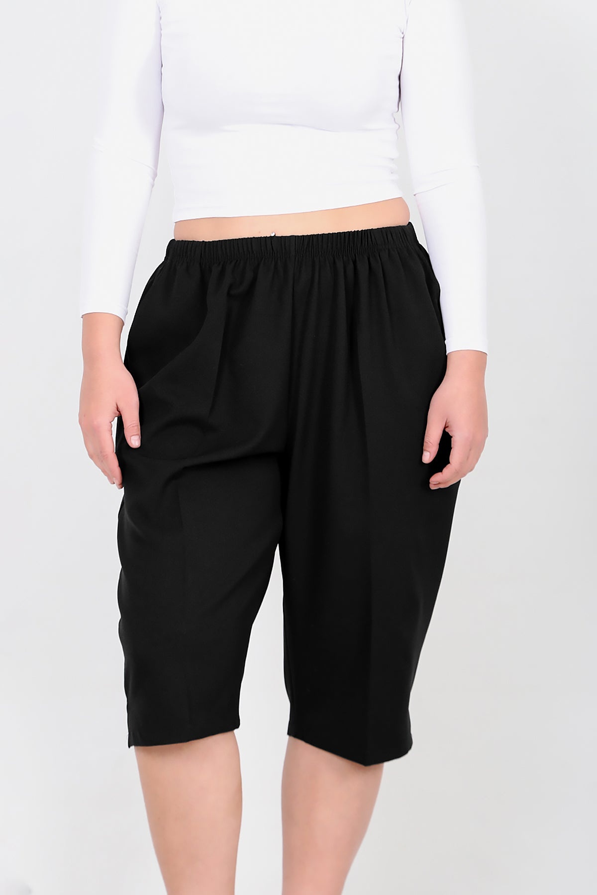 Büyük Beden Kapri Siyah Siyah