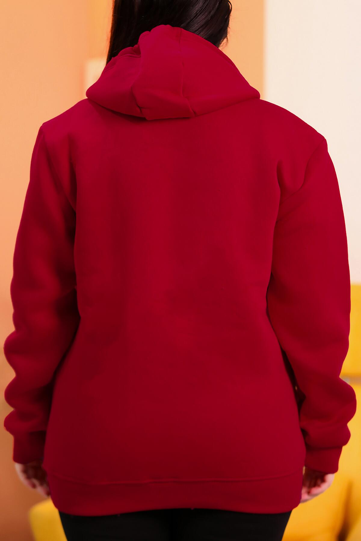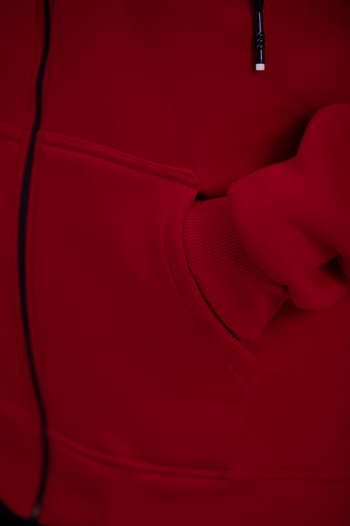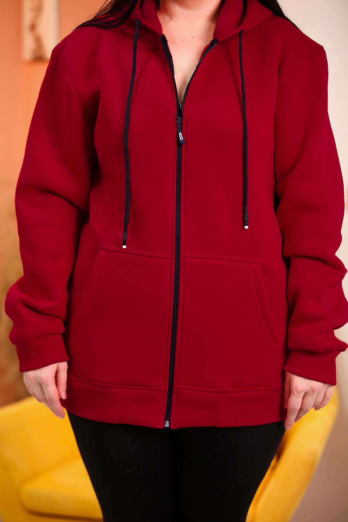Büyük Beden Kapşonlu Fermuarlı Sweat Kırmızı