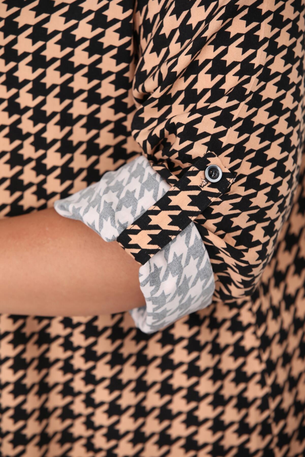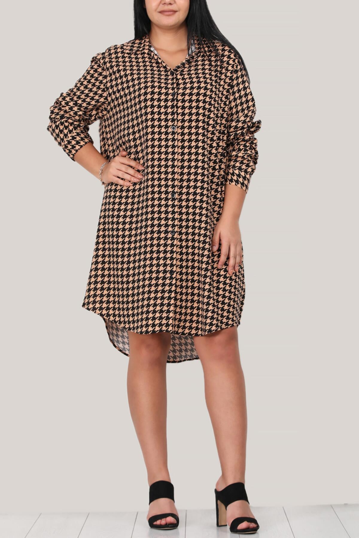 Büyük Beden Kısa Gömlek Elbise Bej Bej
