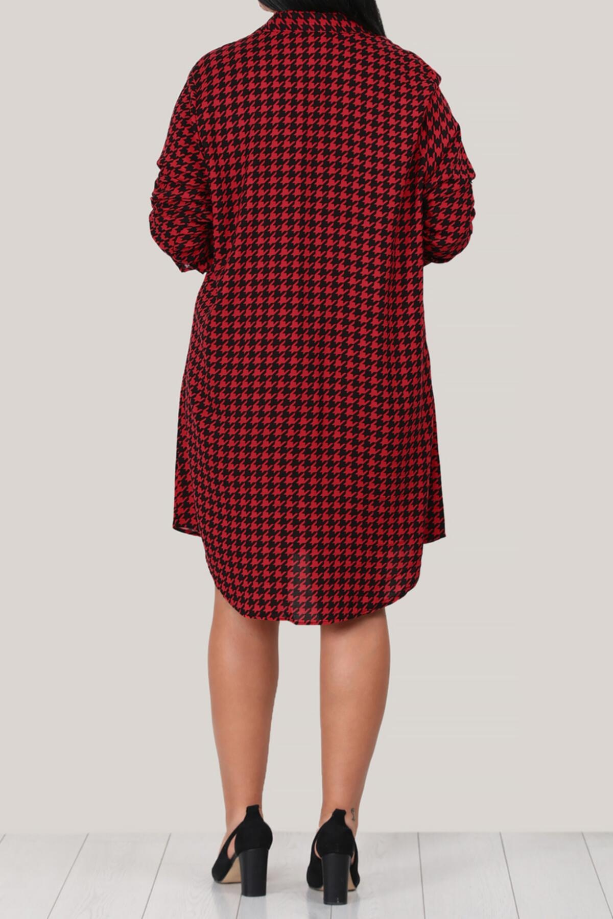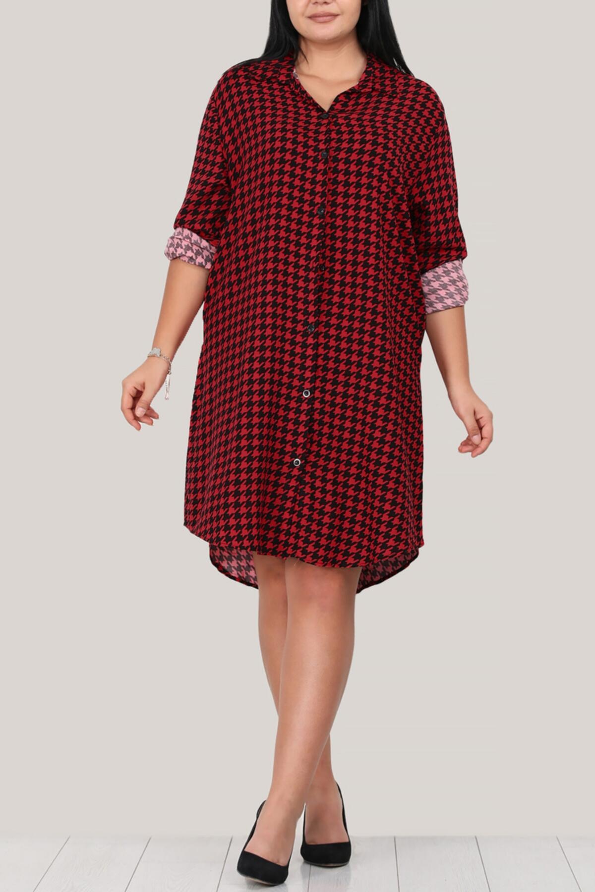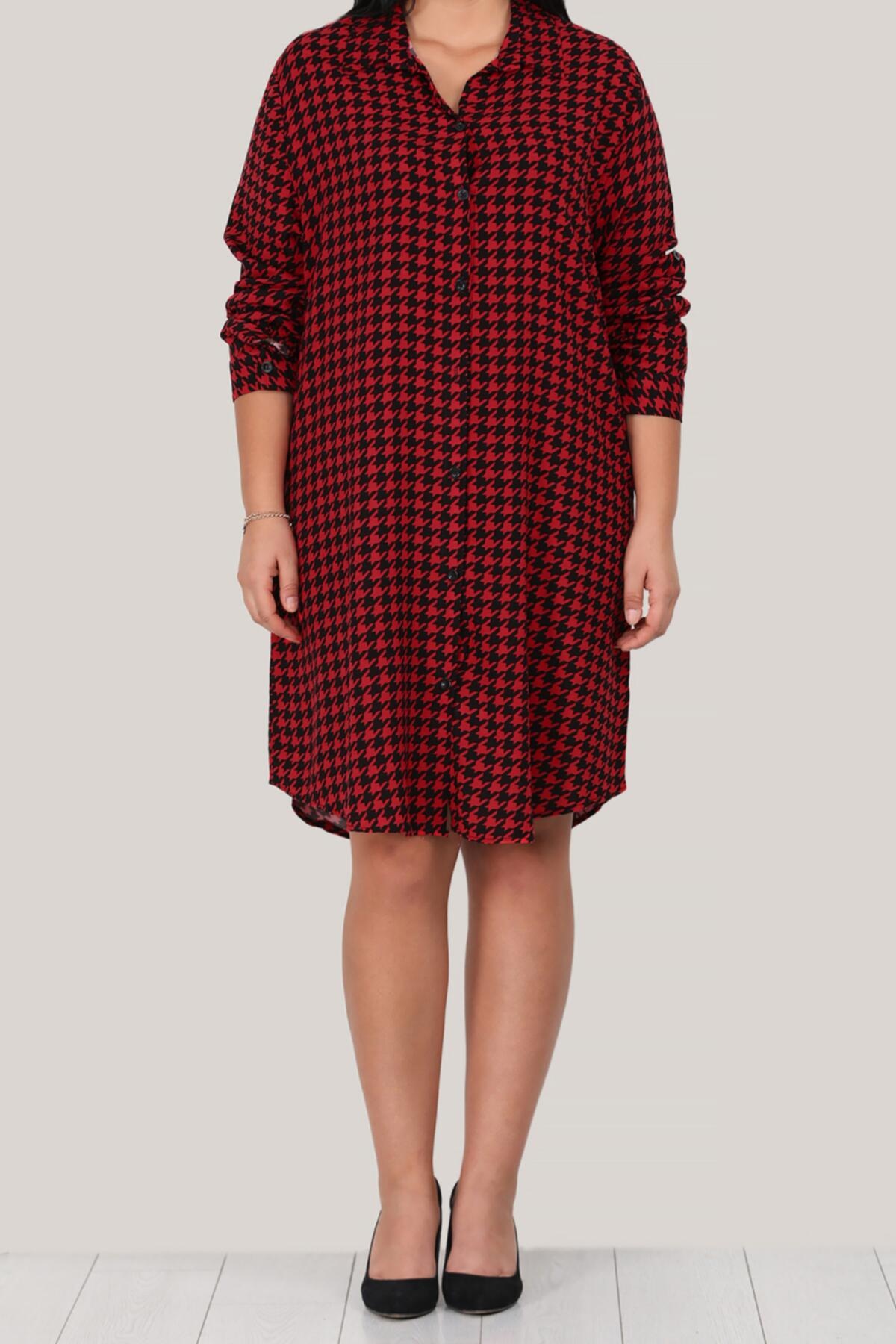 Büyük Beden Kısa Gömlek Elbise Kırmızı