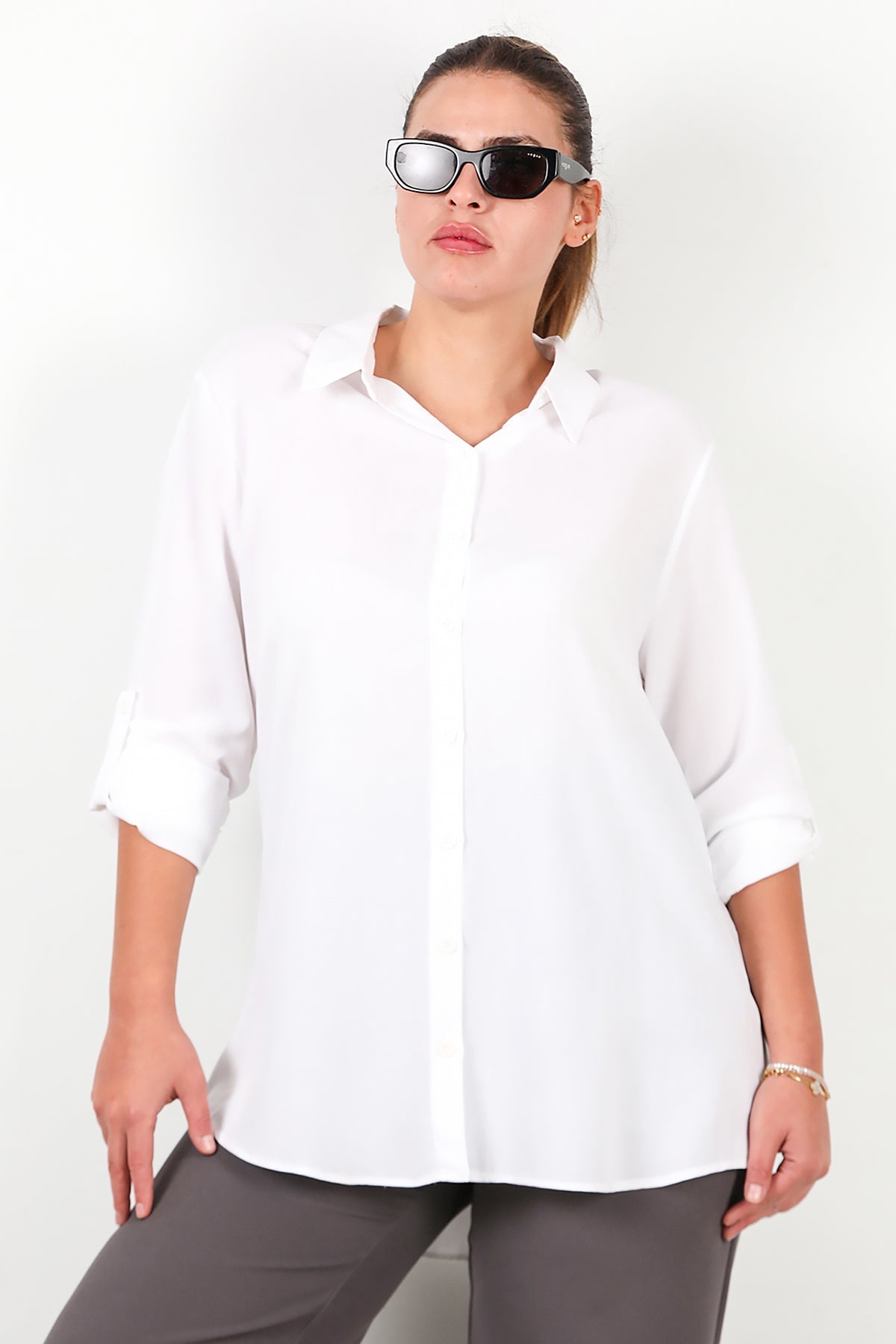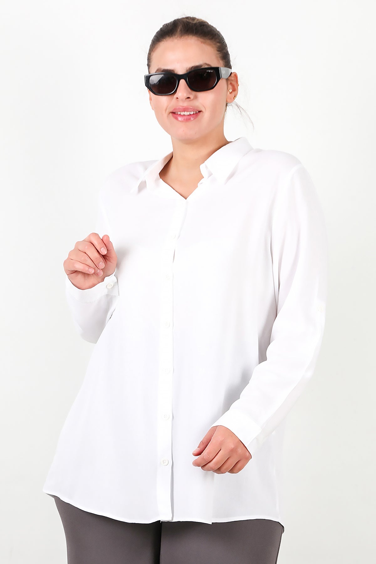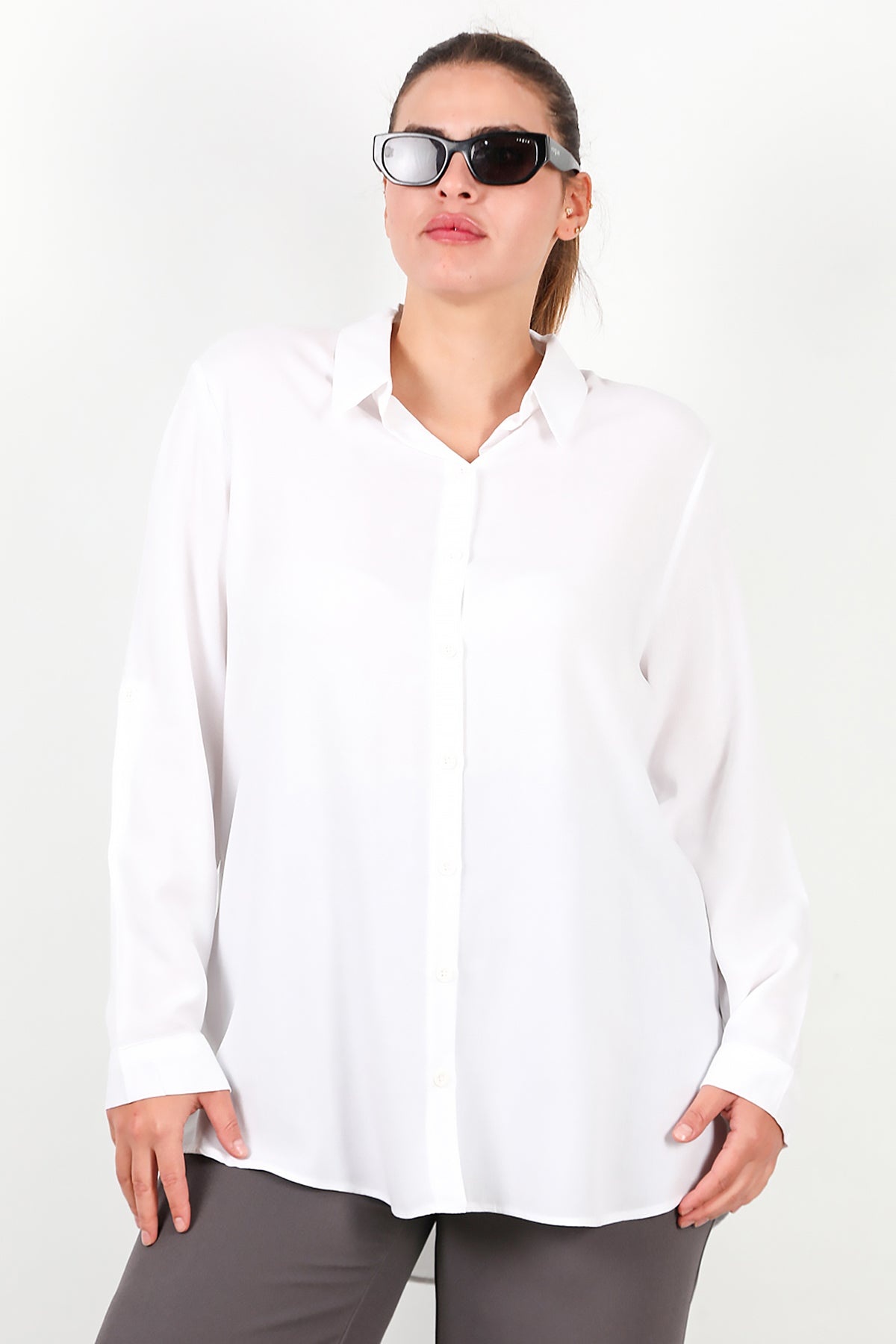 MODEL BİLGİLERİ Boy: 175 cm Göğüs:94 cm Bel: 75 cm Kalça: 112 cm