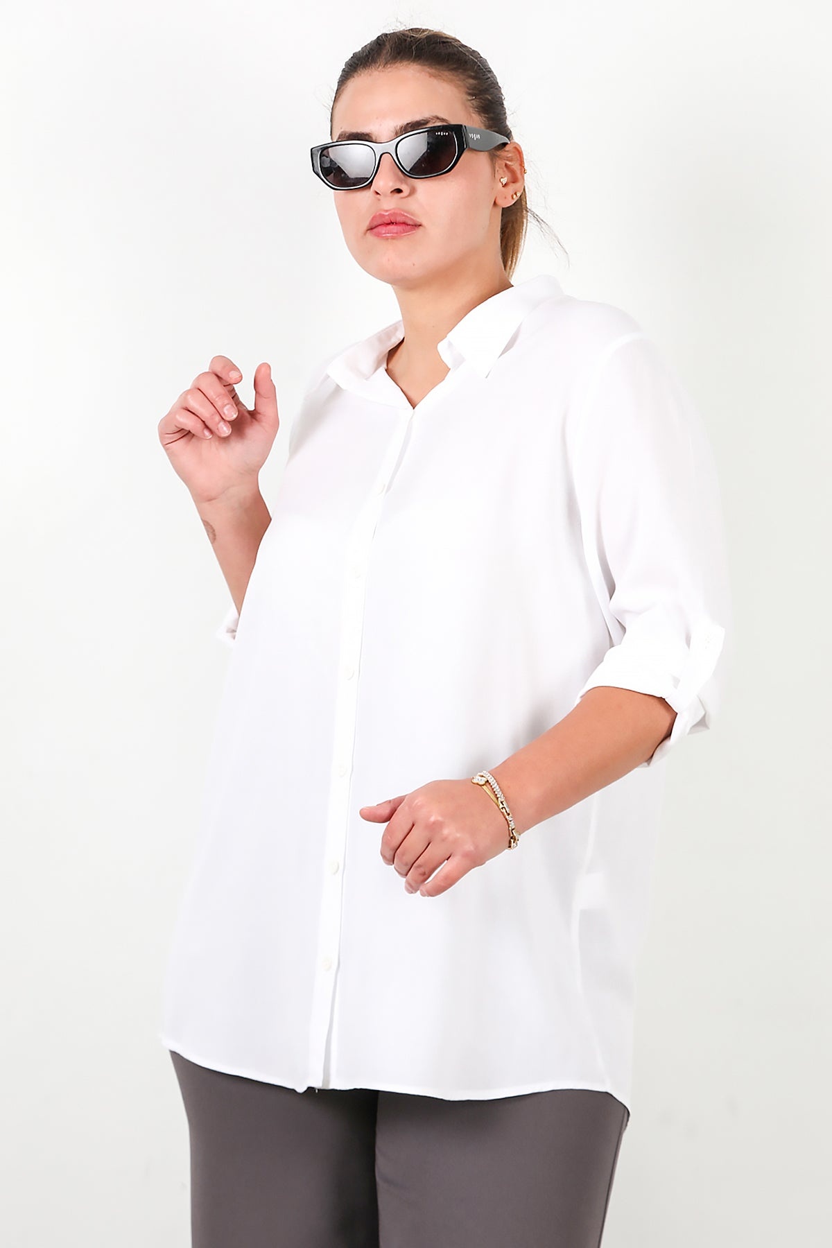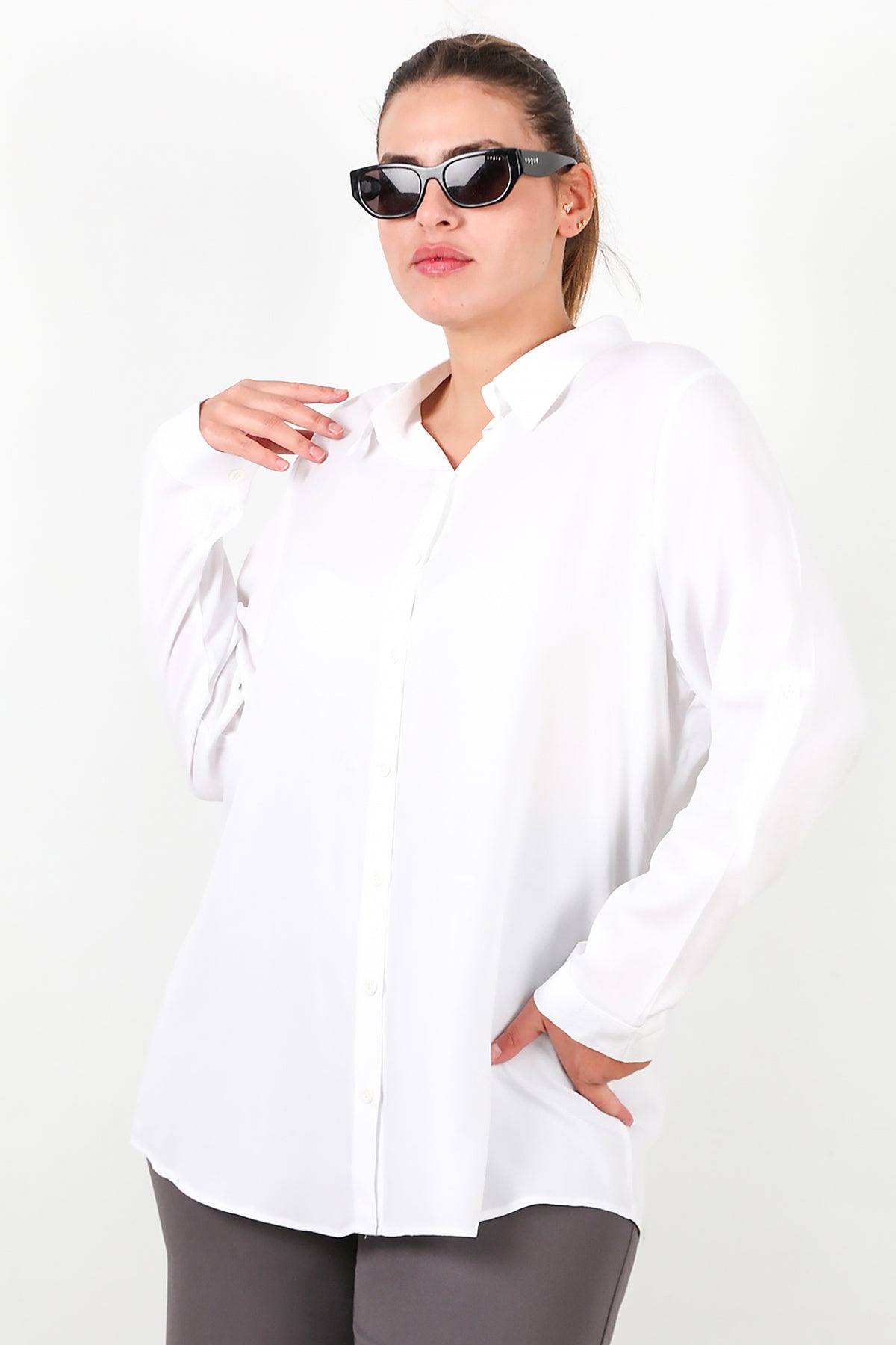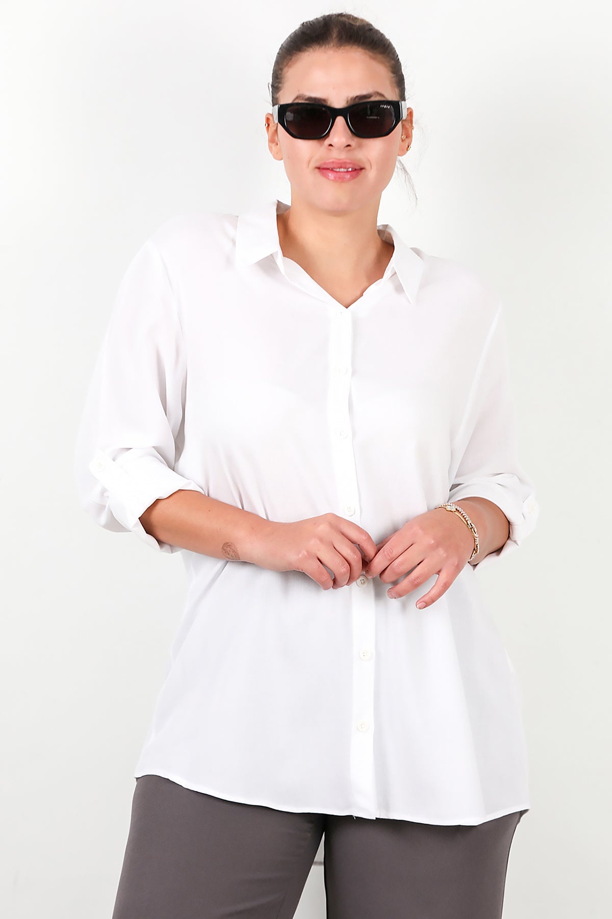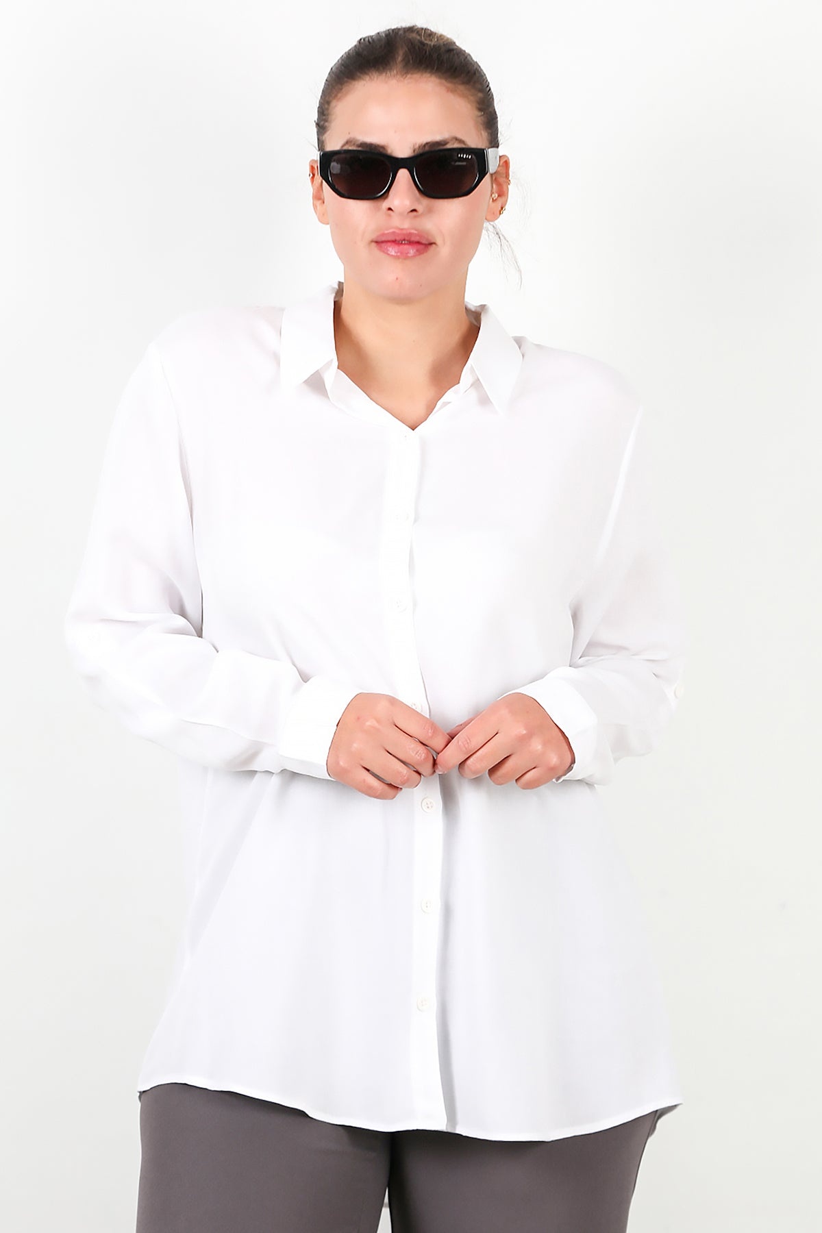 MODEL BİLGİLERİ Boy: 175 cm Göğüs:94 cm Bel: 75 cm Kalça: 112 cm