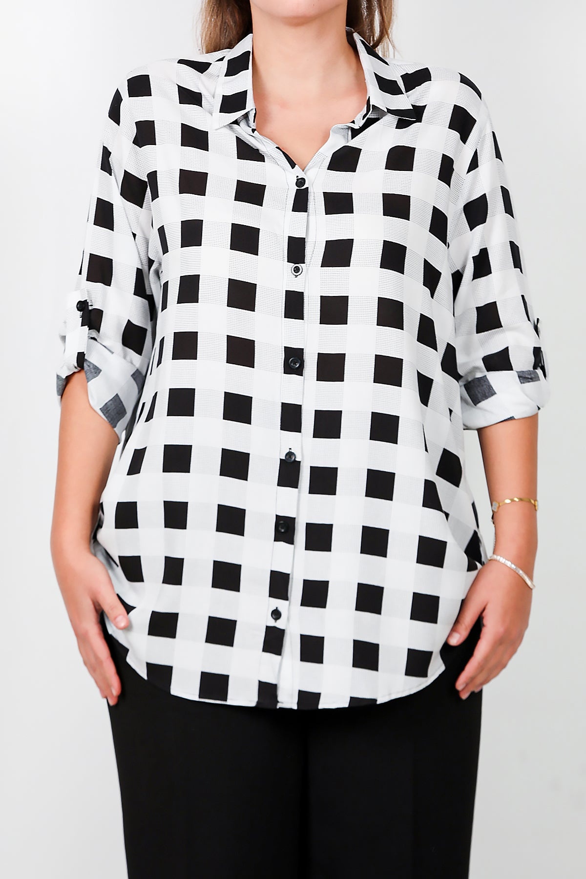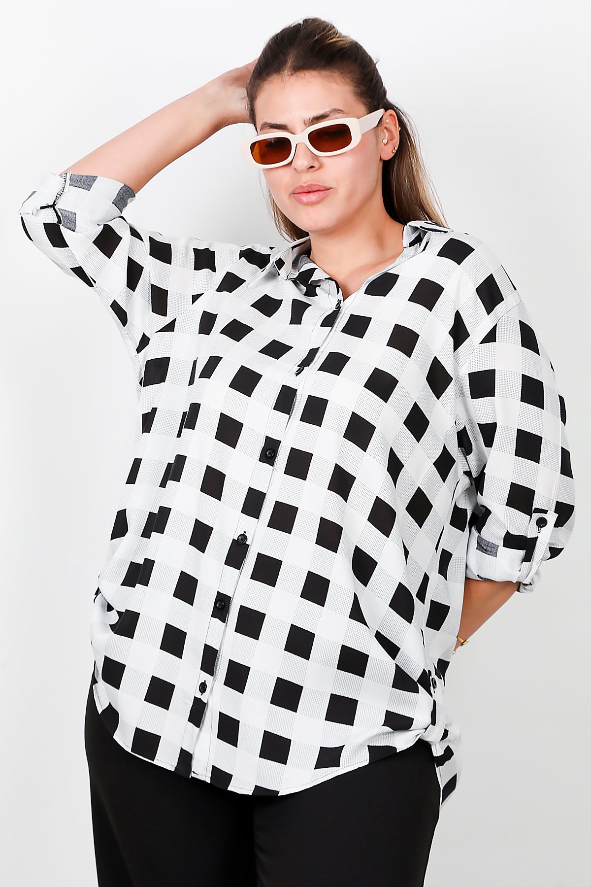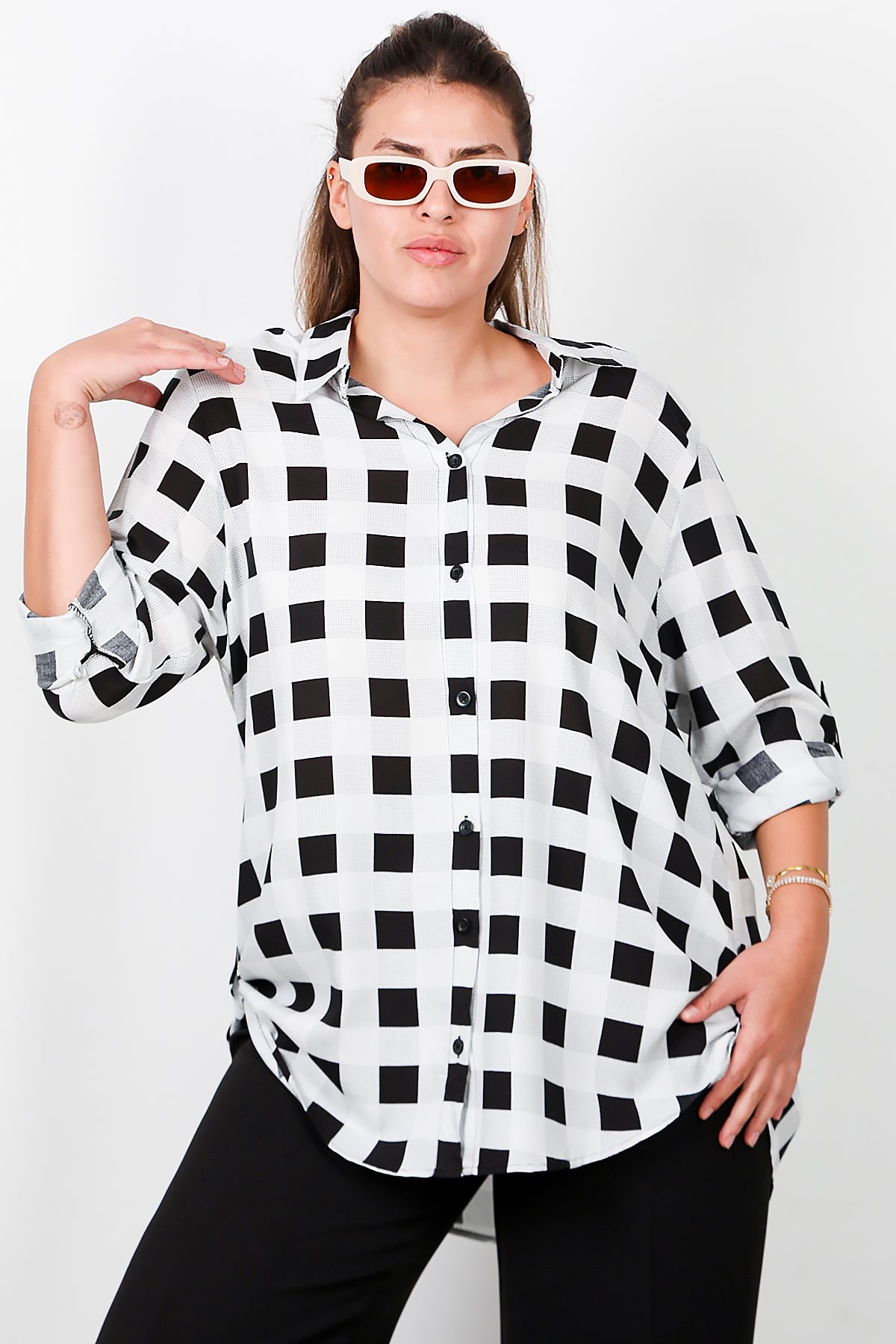 Büyük Beden Kol Katlamalı Gömlek Çok Renkli