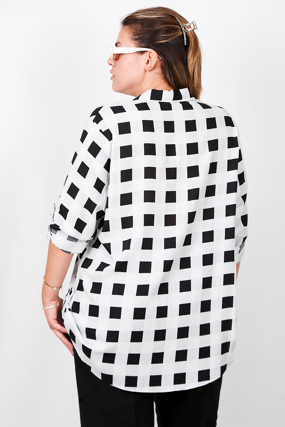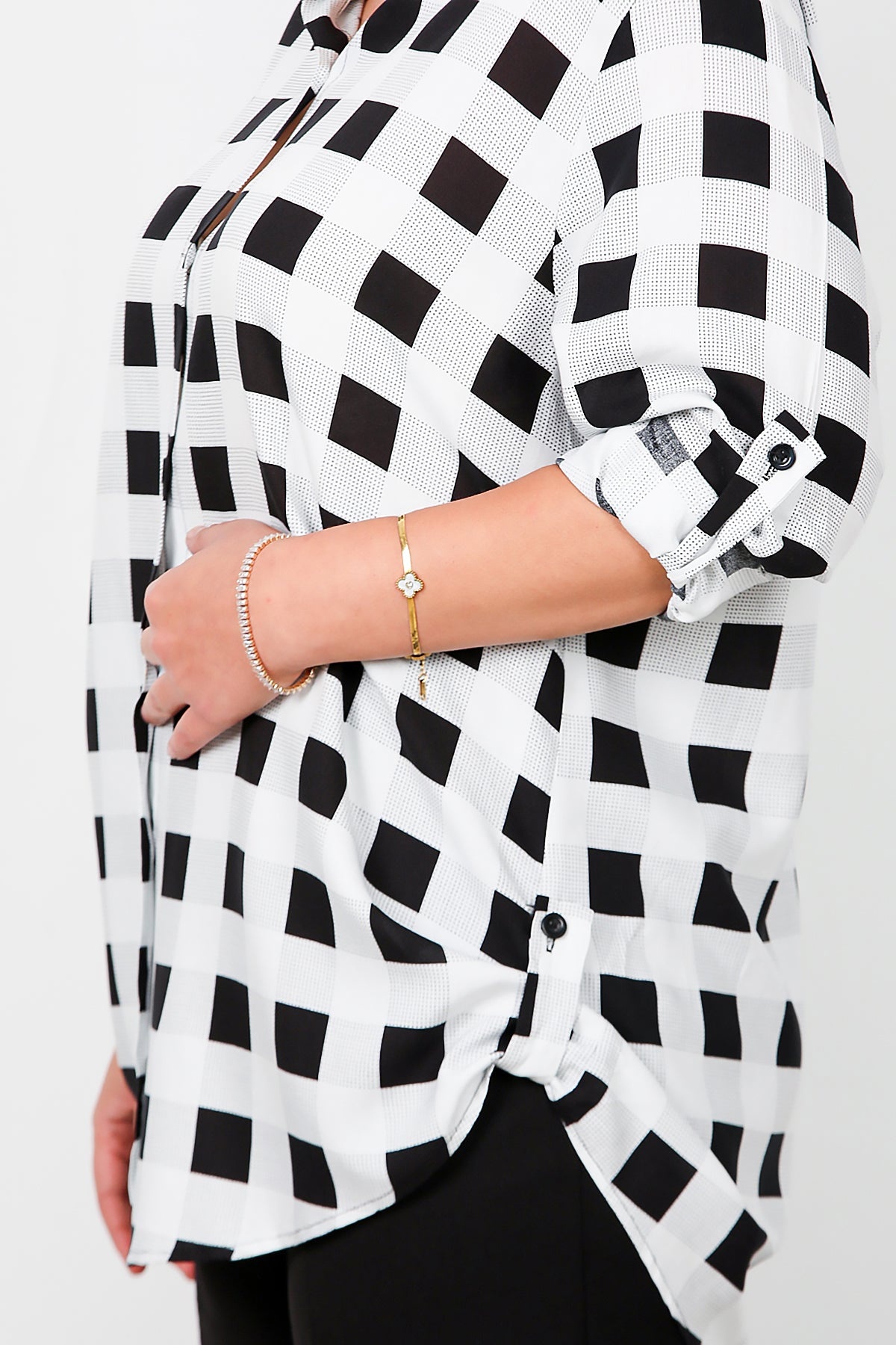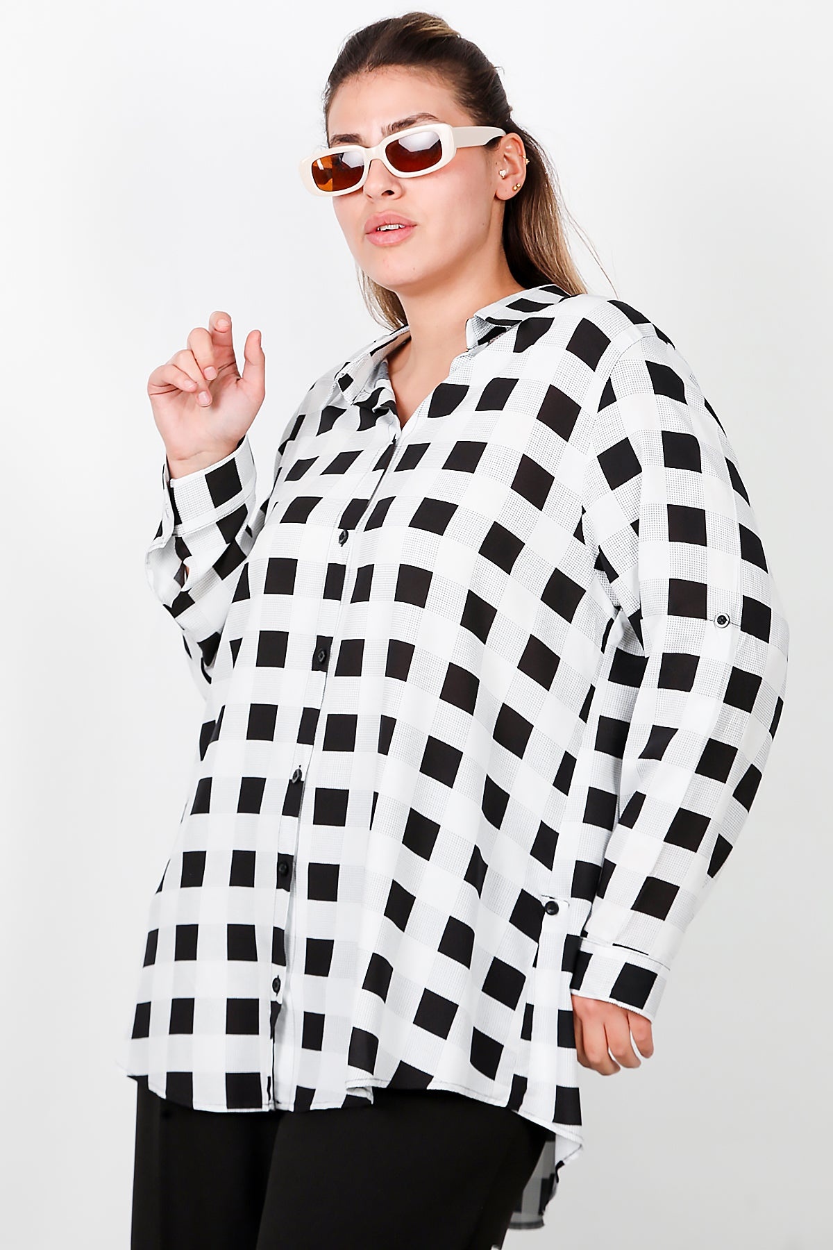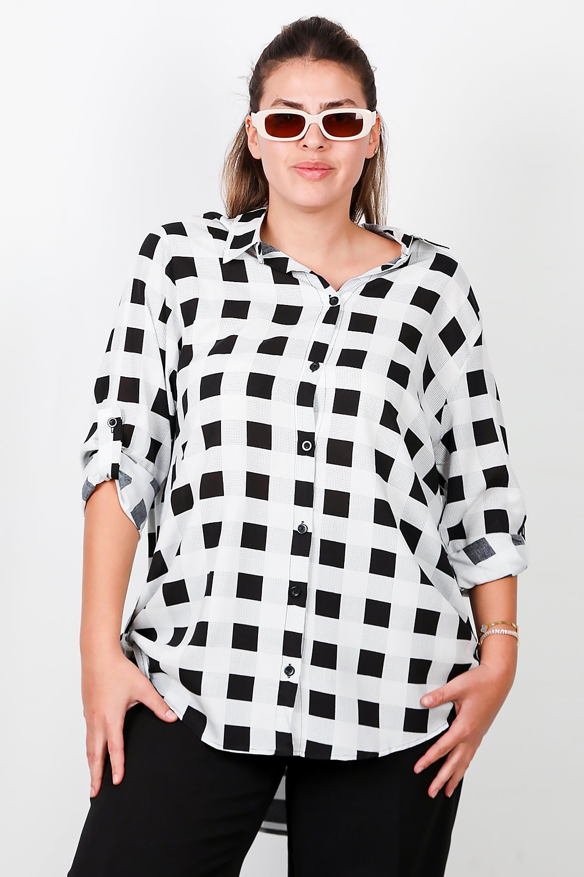 Büyük Beden Kol Katlamalı Gömlek Çok Renkli