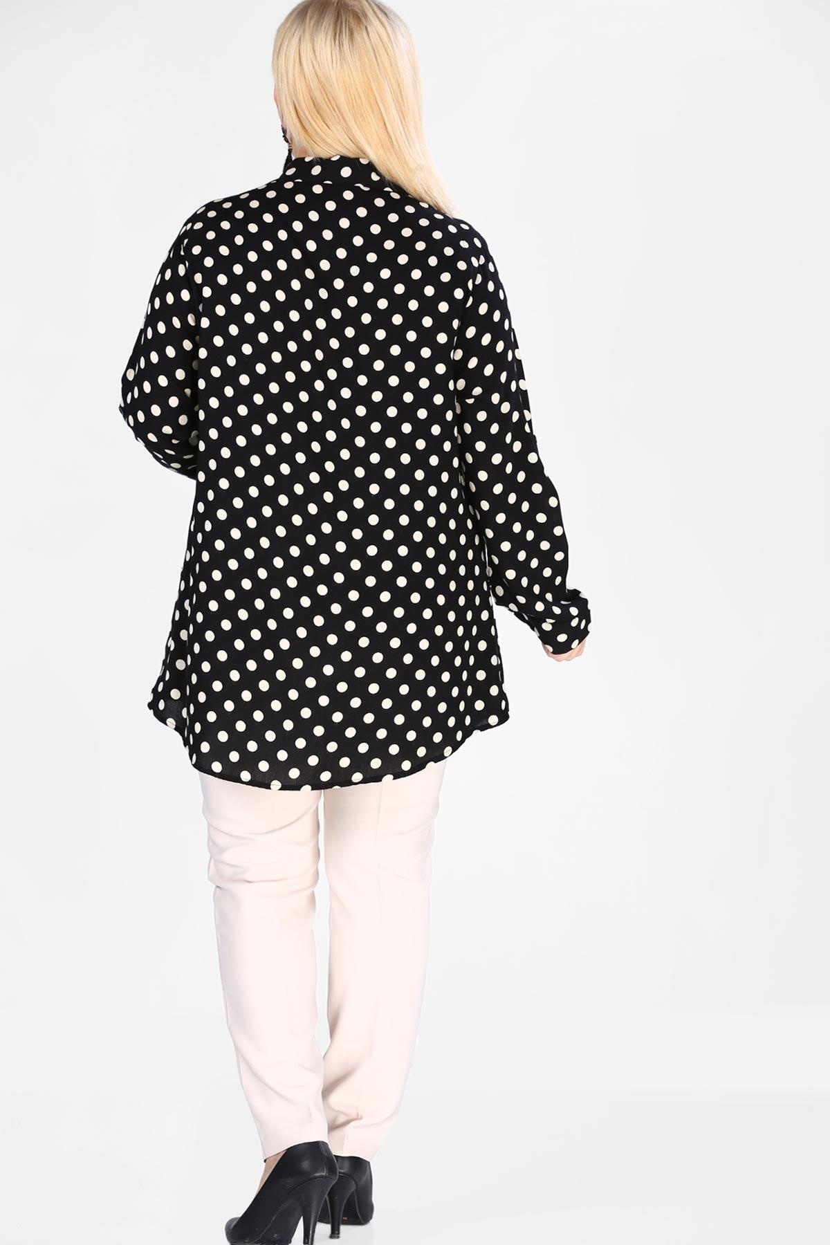 Büyük Beden Kol Katlamalı Gömlek Siyah Siyah