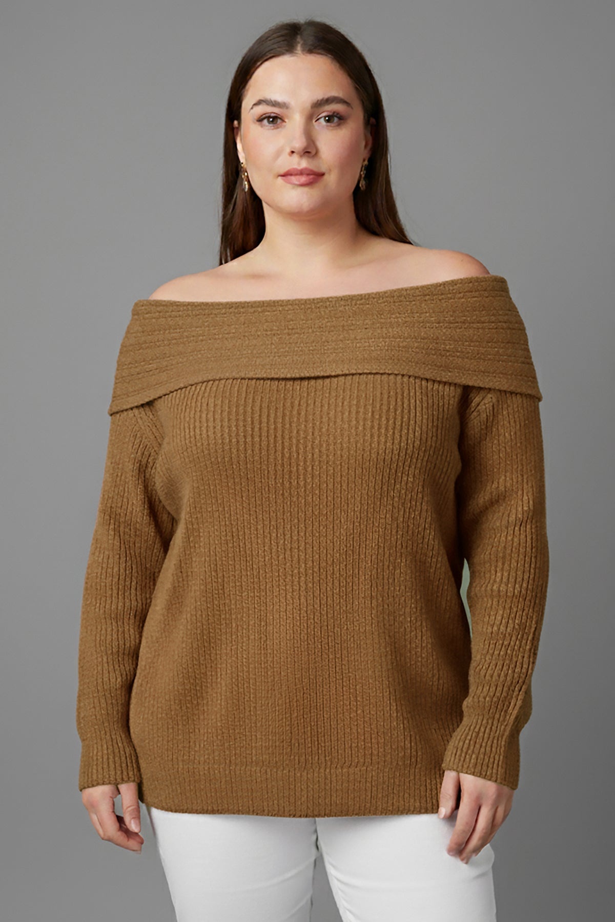 Büyük Beden Madonna Yaka Triko Bluz Bej
