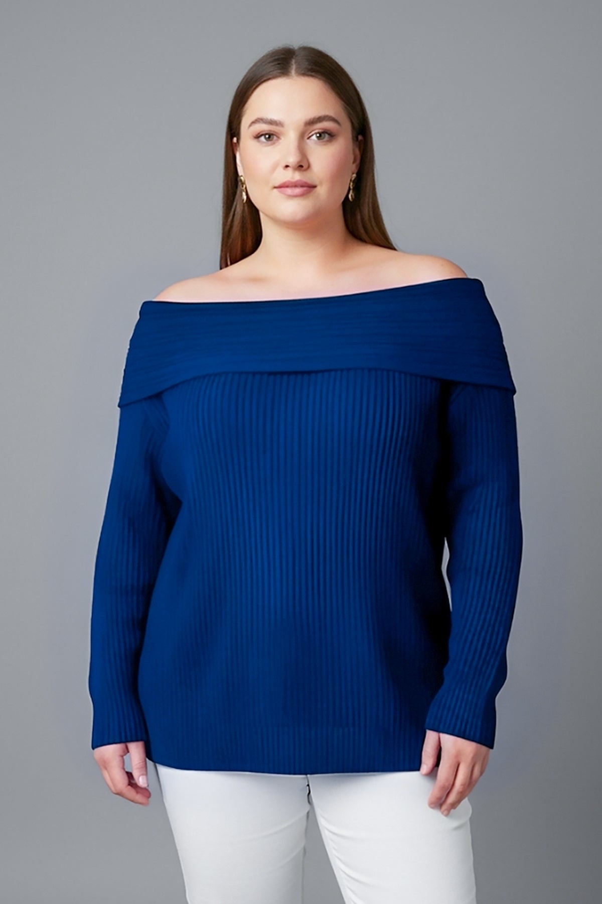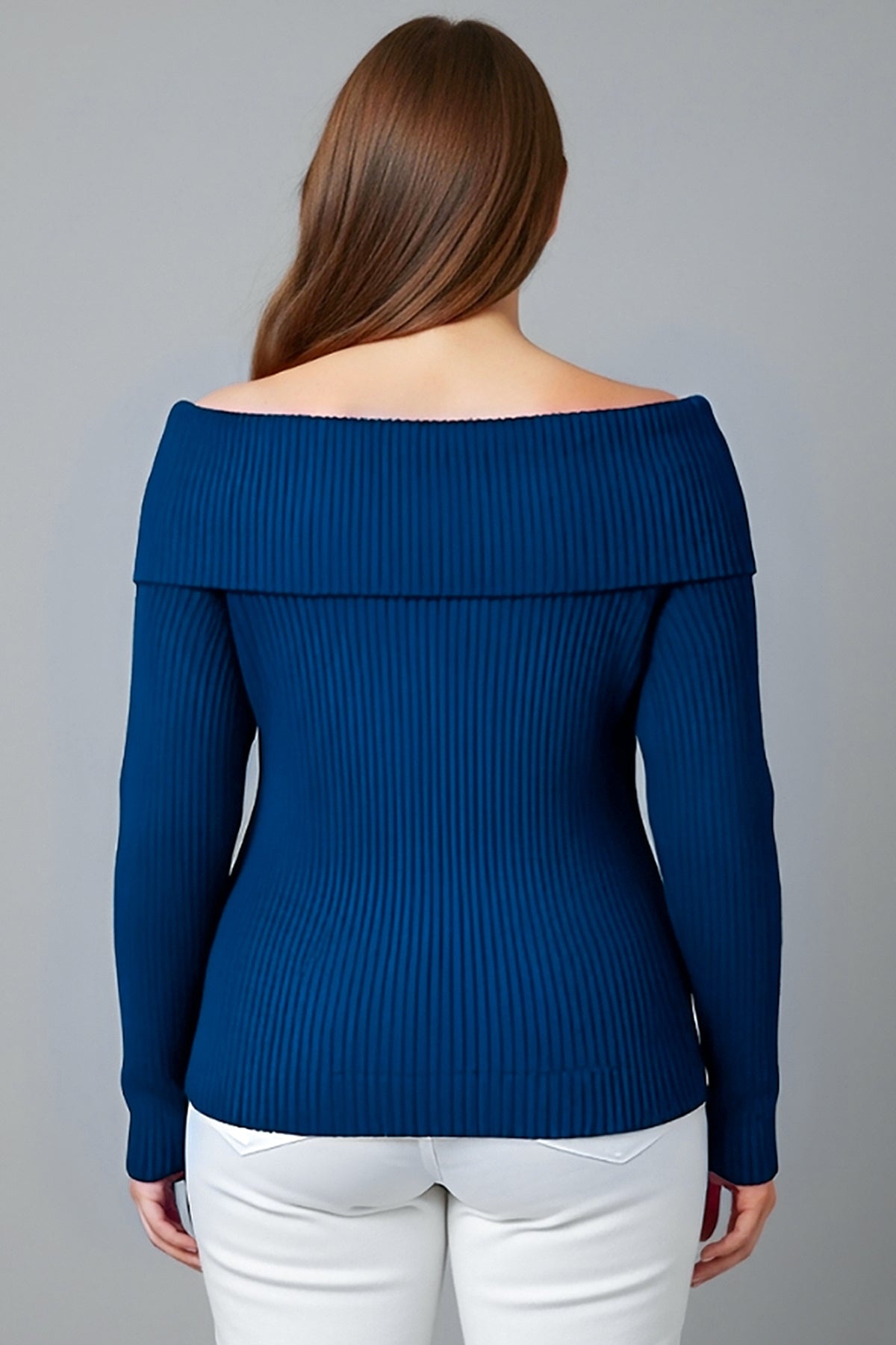 Büyük Beden Madonna Yaka Triko Bluz Saks