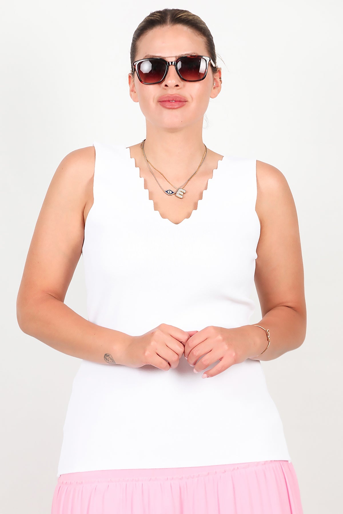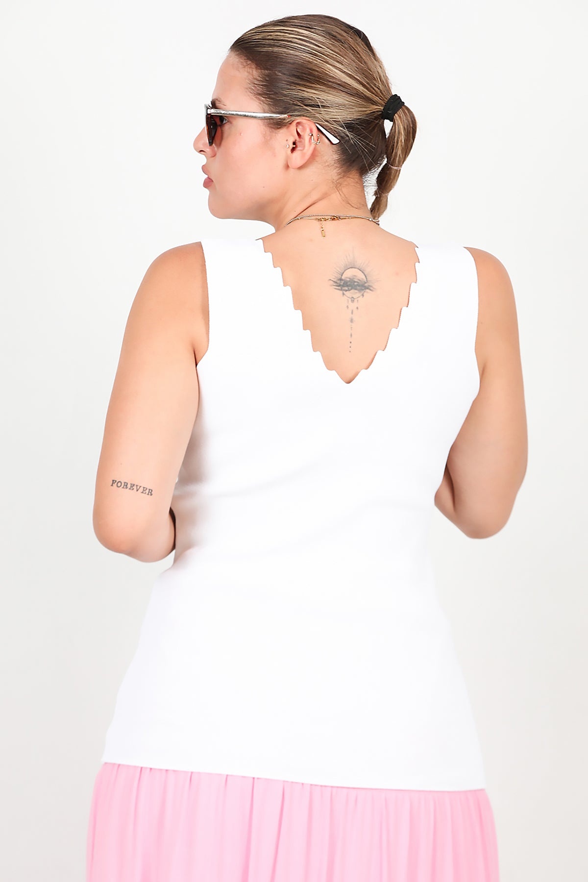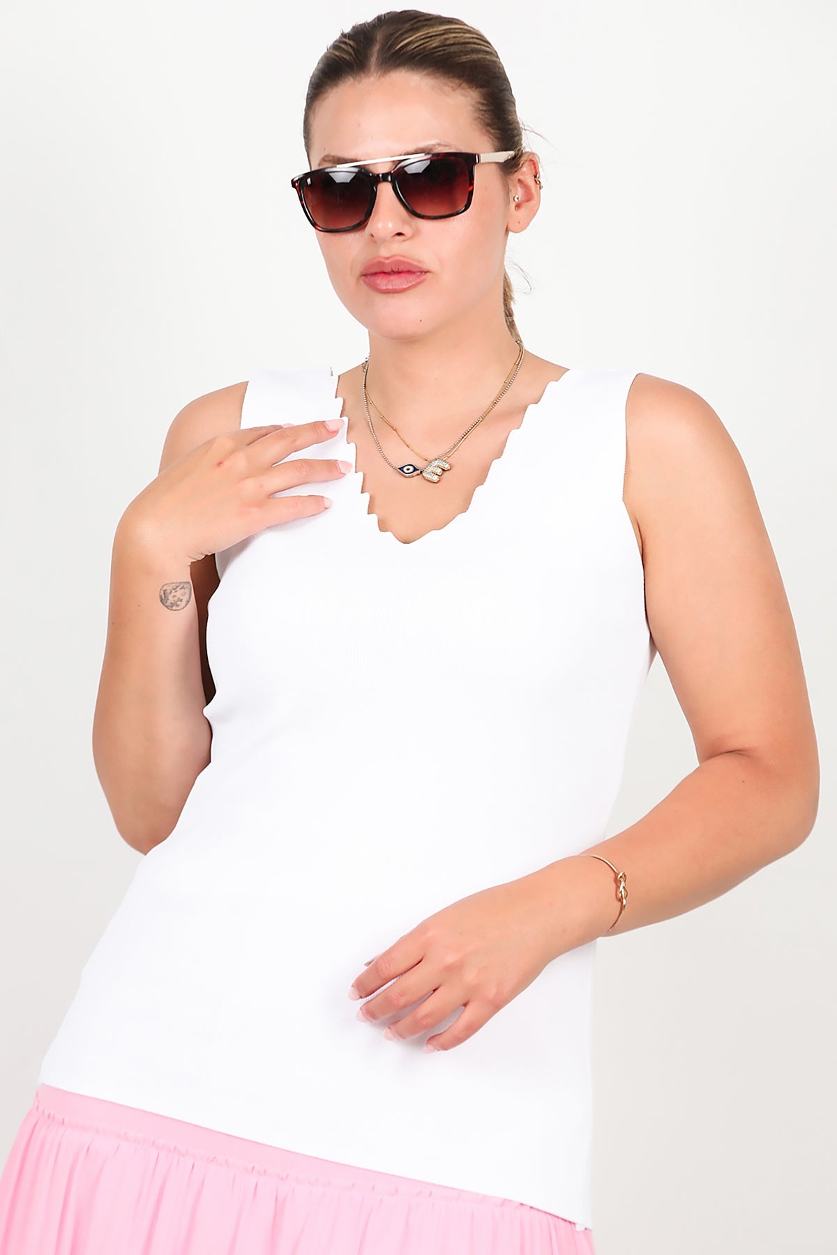 Büyük Beden Merdiven Yaka Bluz Ekru