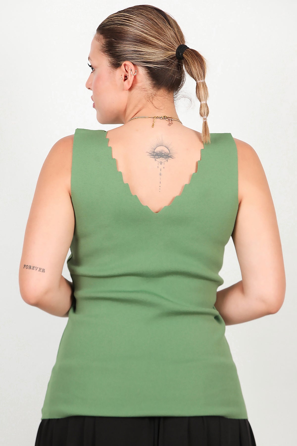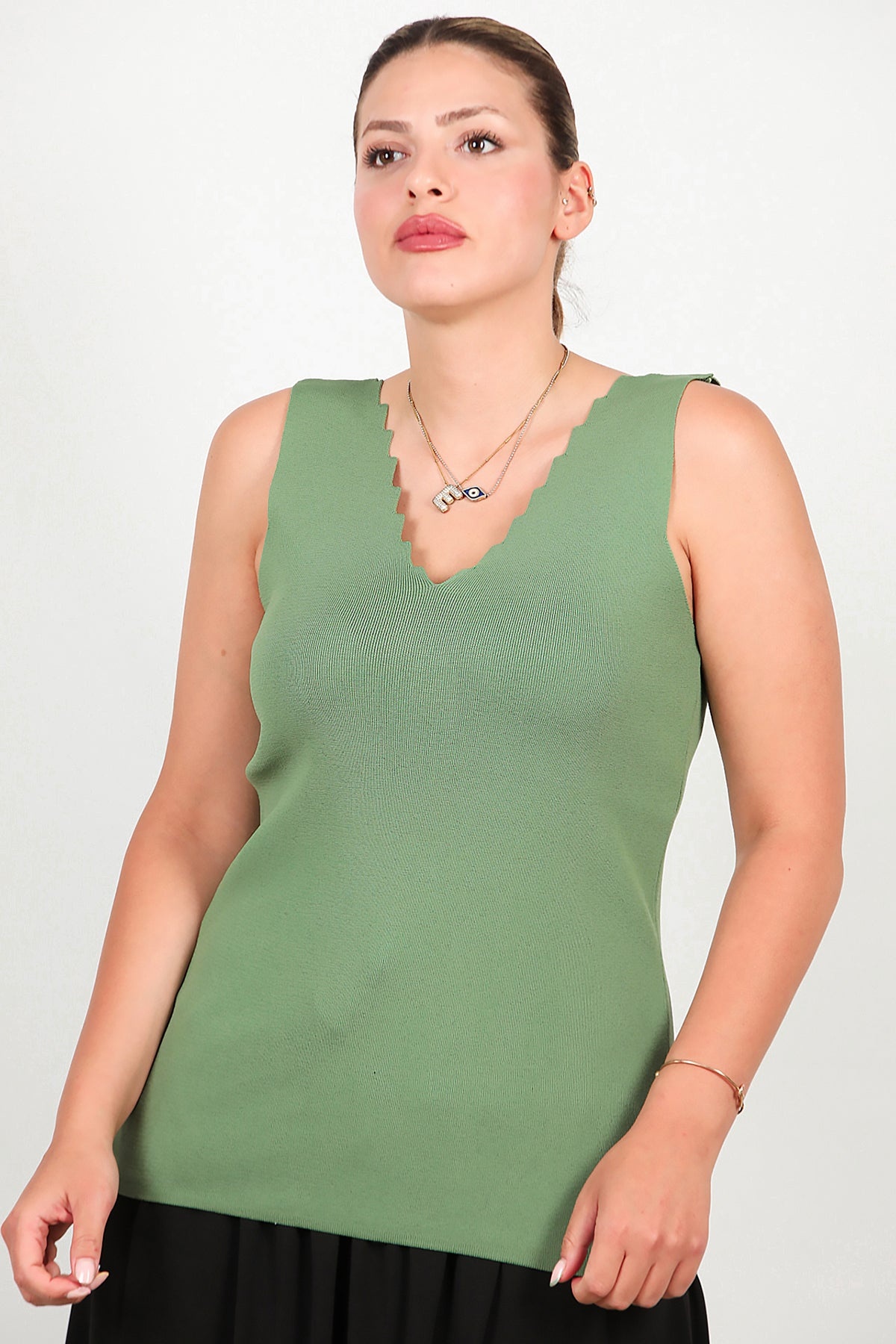 Büyük Beden Merdiven Yaka Bluz Yeşil