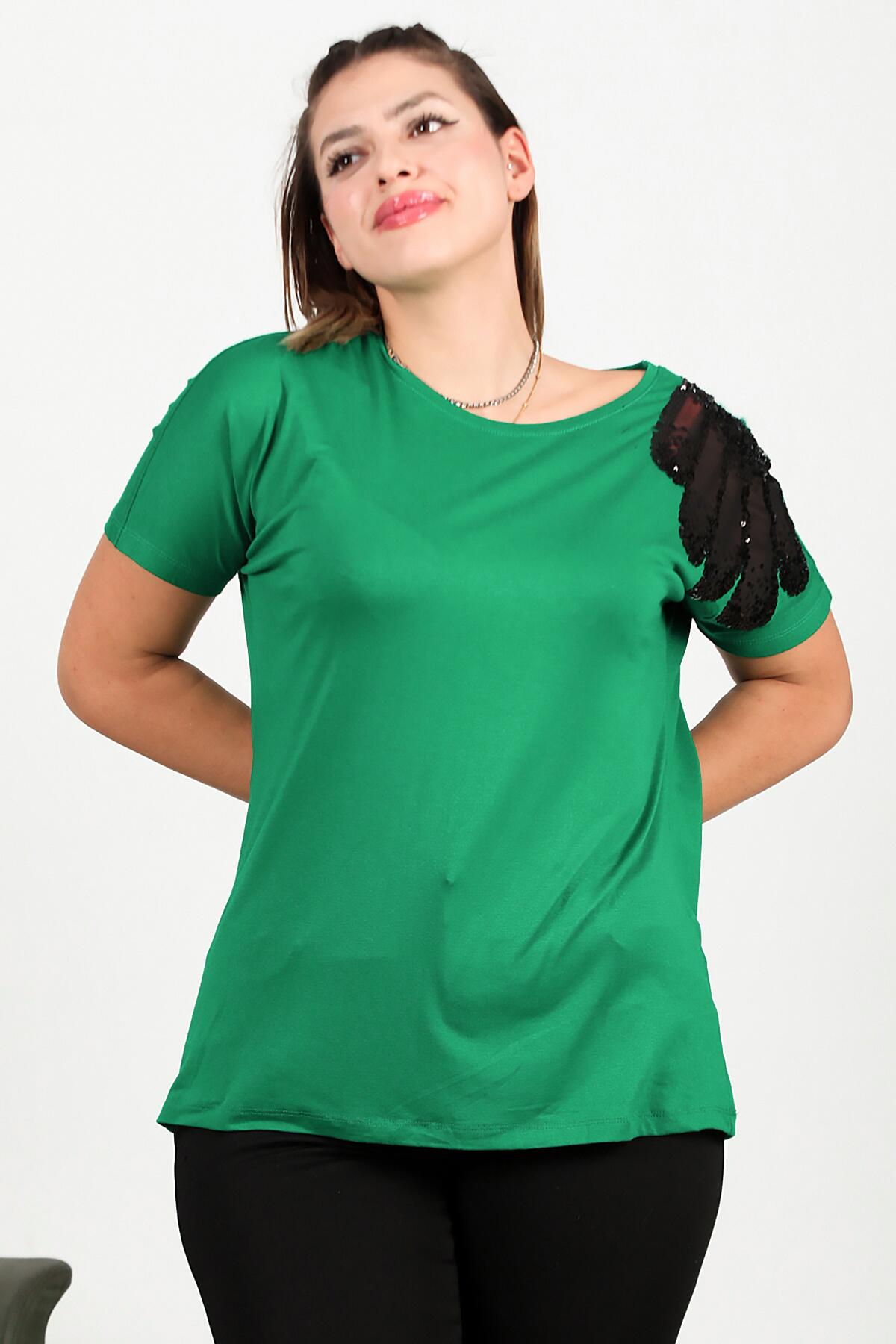 Büyük Beden Omuz Nakışlı Bluz Yeşil