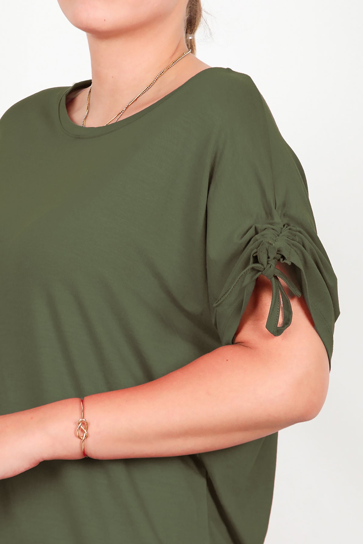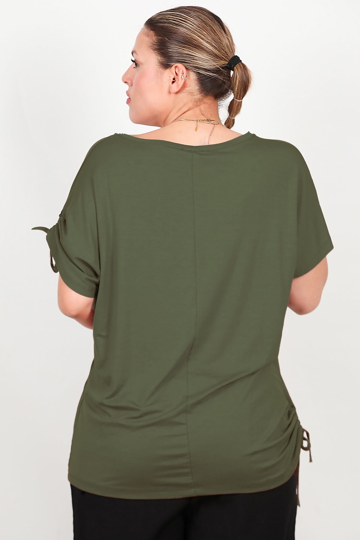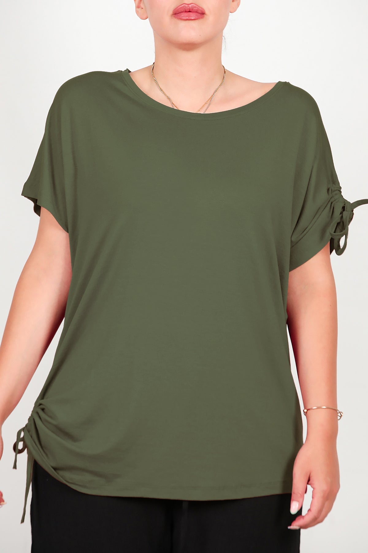 Büyük Beden Omuz Ve Yanı Büzgülü Bluz Haki