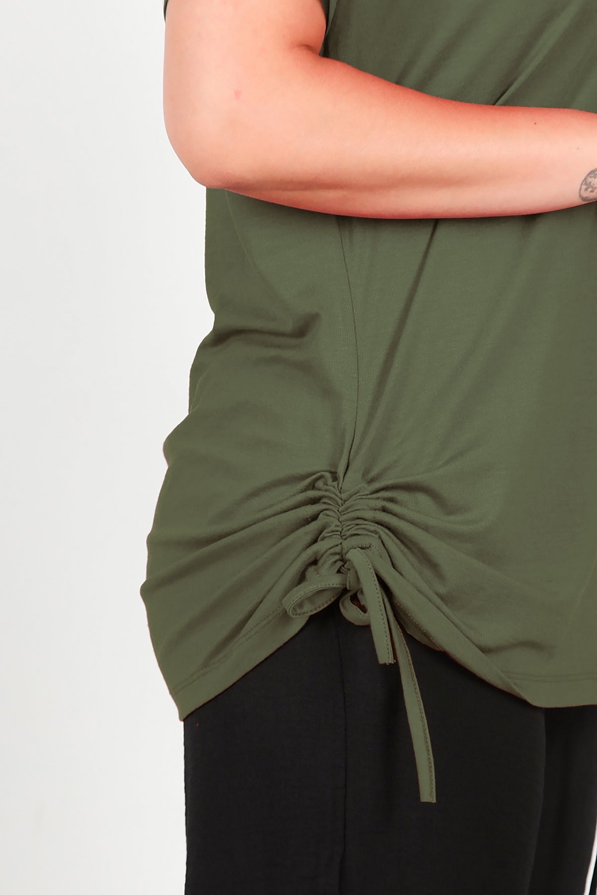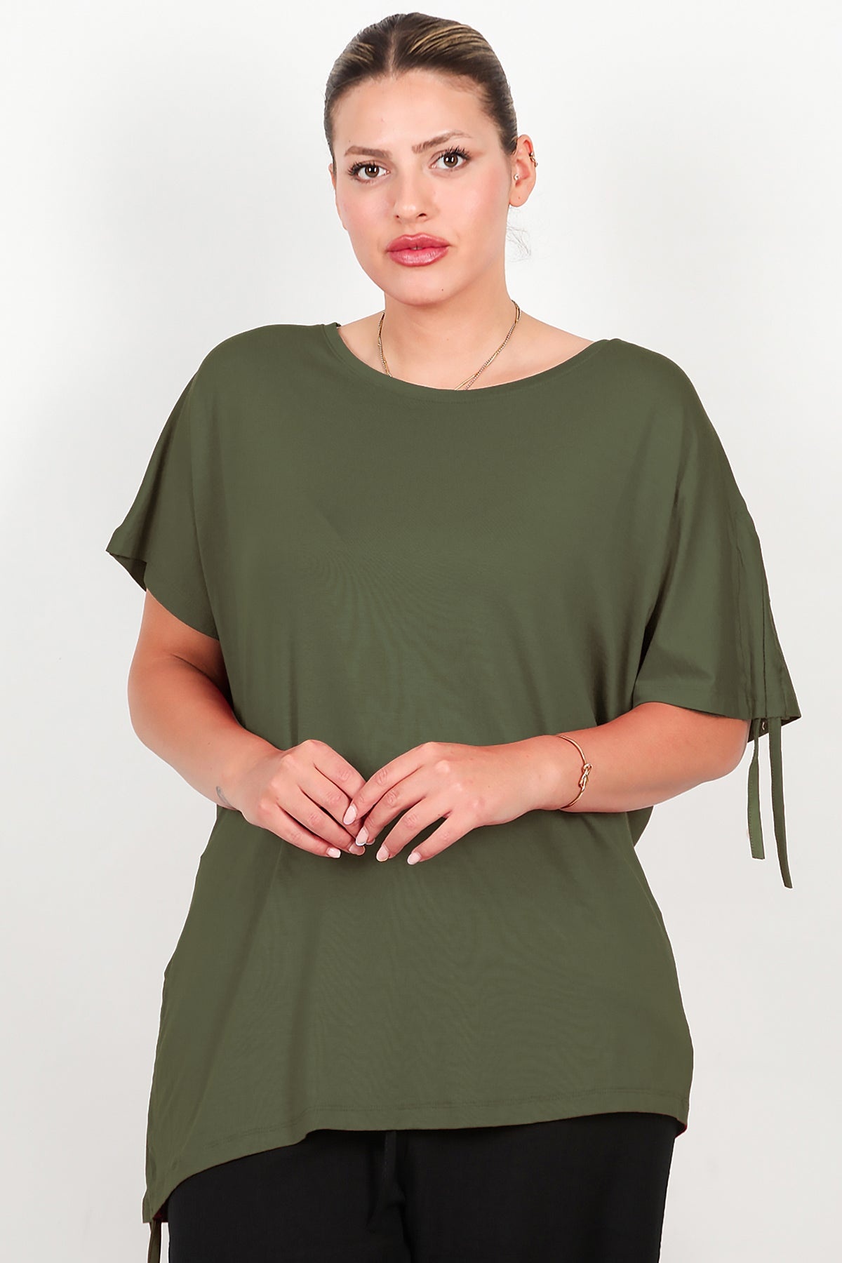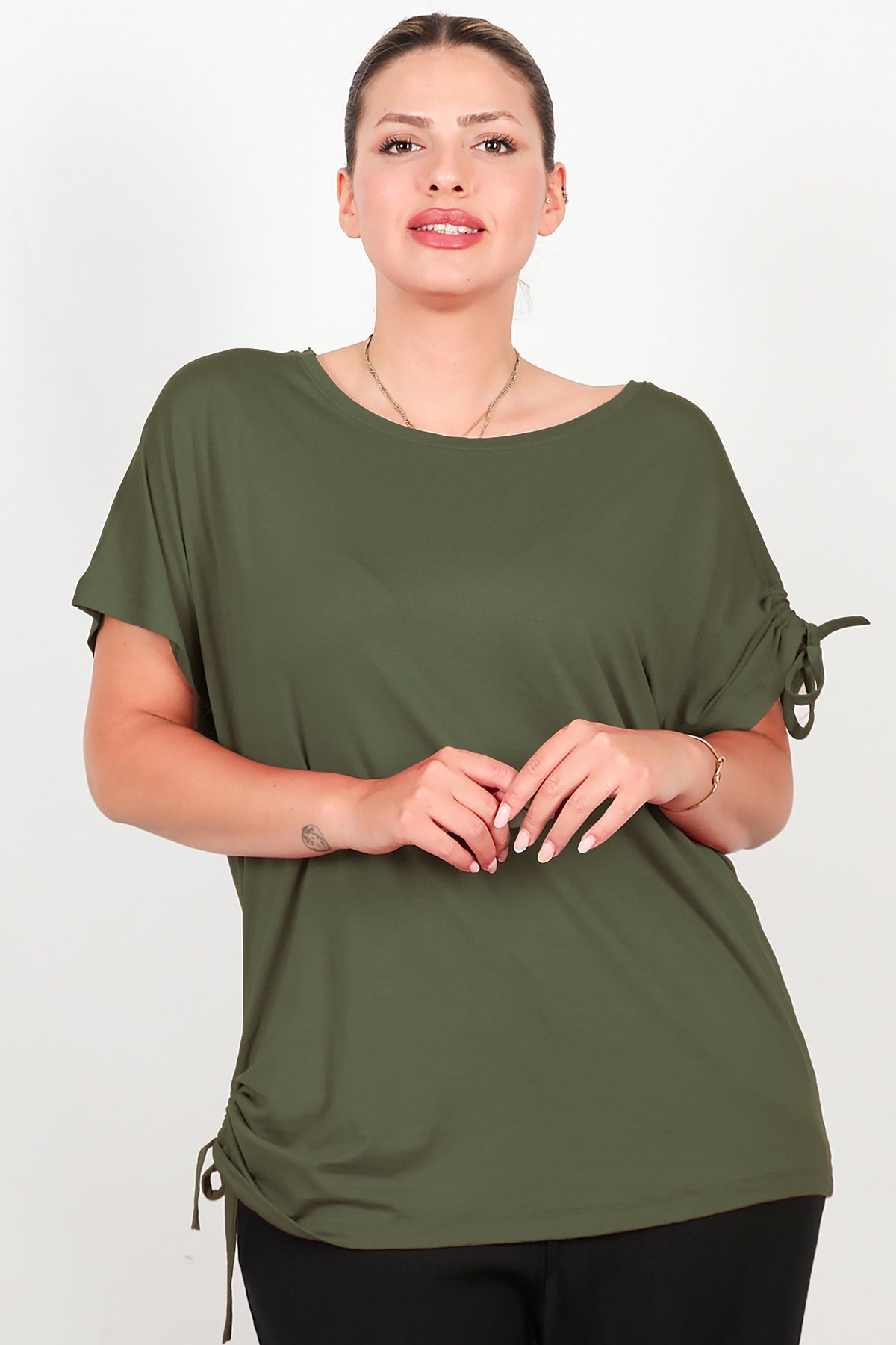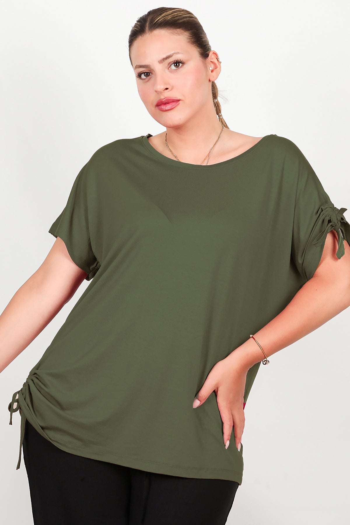 Büyük Beden Omuz Ve Yanı Büzgülü Bluz Haki